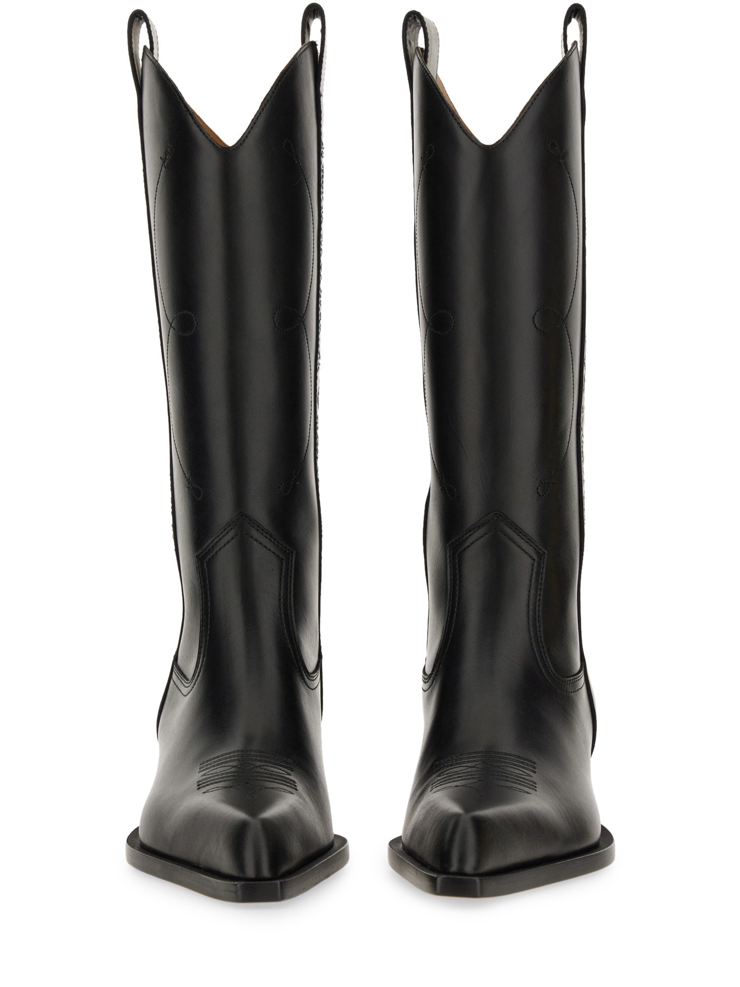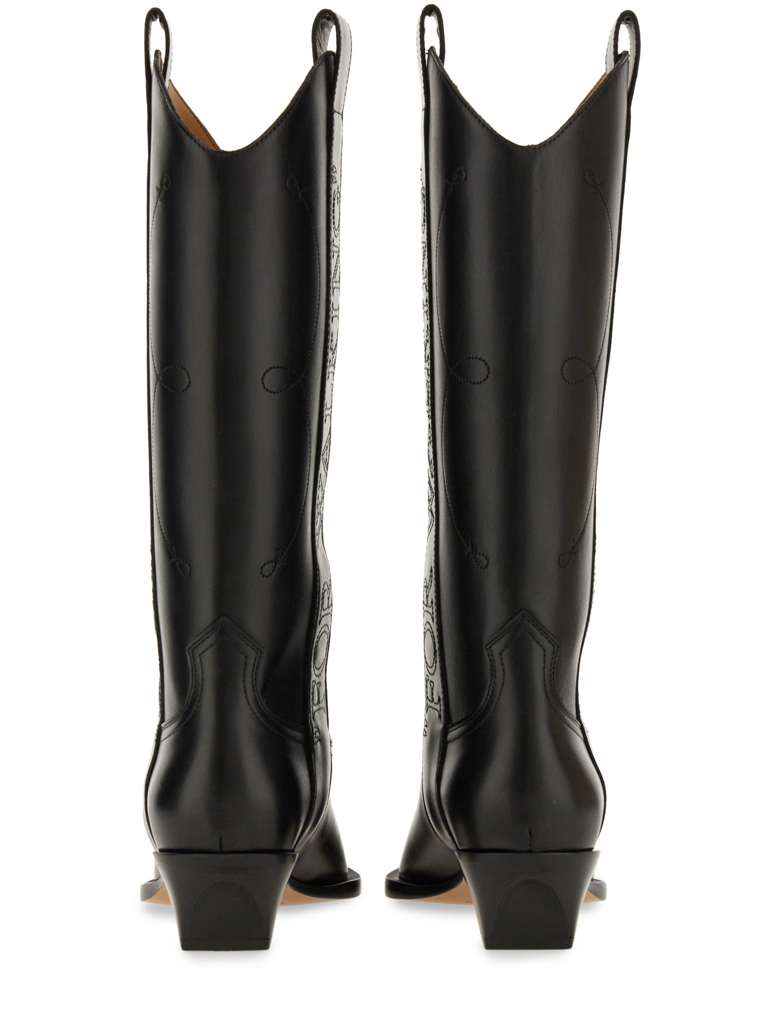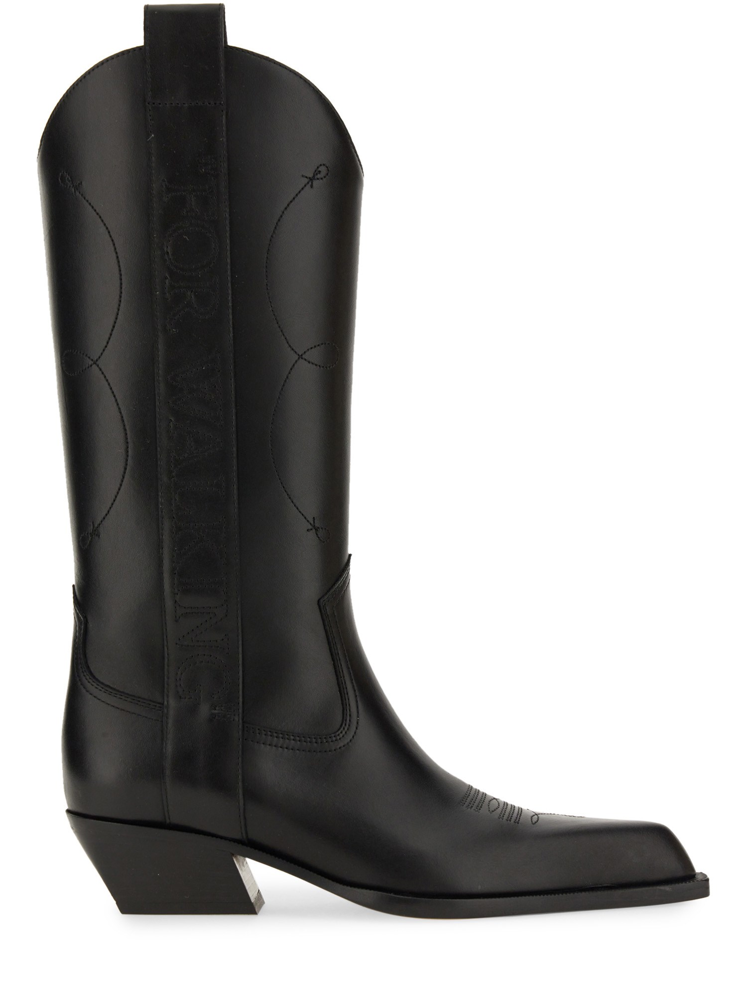 These boots from Off-White are perfect for the fashion-forward individual seeking a combination of elegance and ruggedness. These boots are made from high-quality black leather, ensuring durability and long-lasting comfort. The sleek knee-high design adds a touch of sophistication to any outfit, while the Texan-inspired details give them a Western flair.