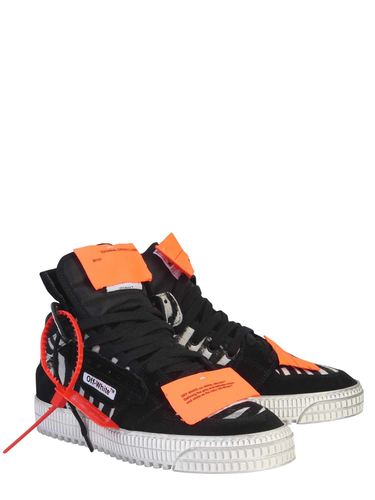 The Off-Court sneakers by Off-White are the choice of every sports lover. These shoes are made of fine-quality leather for a good fit and comfort. The canvas footbed is designed for support when you are brisk walking or working out. The shoes have a suede upper with zebra pony design for durability and style.