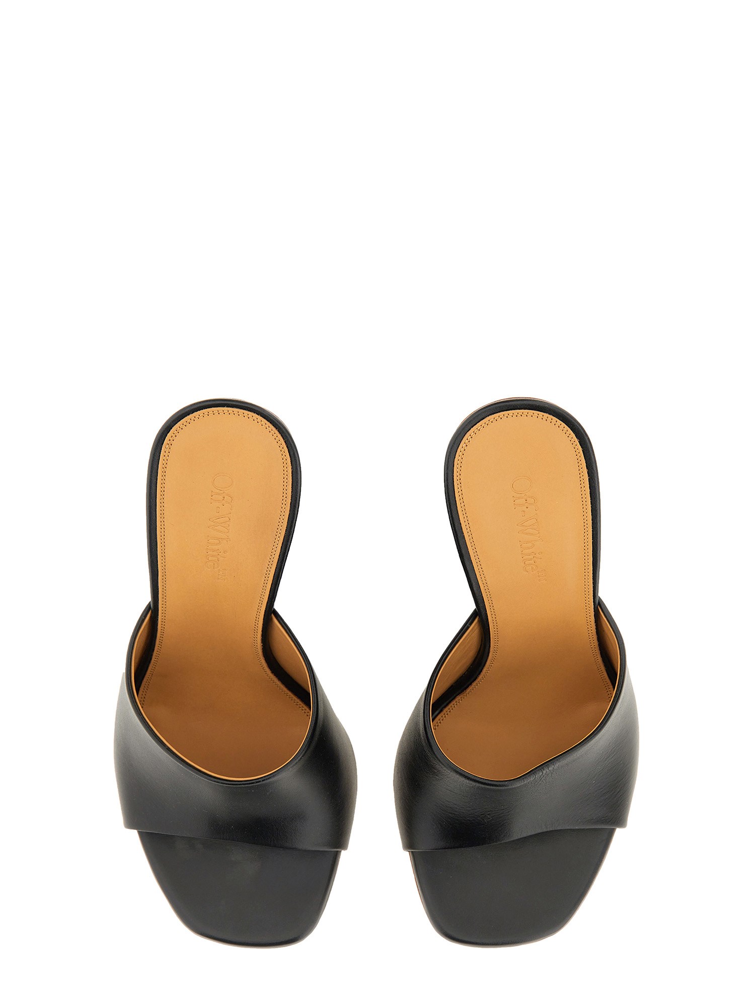 Elevate your style with Off-White luxurious leather mule heels, crafted with the finest materials to ensure both comfort and sophistication. These versatile heels are perfect for any occasion, whether you're dressing up for a night out or adding a touch of elegance to your everyday look. The sleek design and sturdy heel make these mules a must-have addition to your shoe collection, providing a timeless and chic aesthetic that will never go out of style.