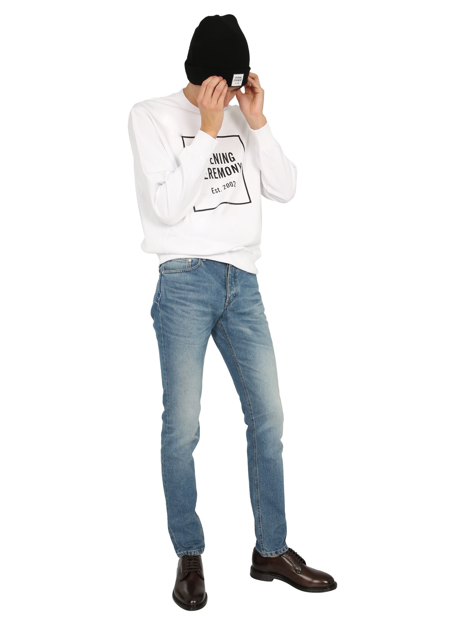 Opening Ceremony's Crew Neck Sweatshirt has a modern look that makes it a great choice for any occasion. It's made of a cotton & elastane blend that's 95% cotton and 5% elastane for added durability and comfort. The crew neck, brushed inner, and logo box print on this sweatshirt adds to its appeal. Pair this regular fit sweatshirt with trousers, jeans, pants, or other bottoms to keep your casual look on point.