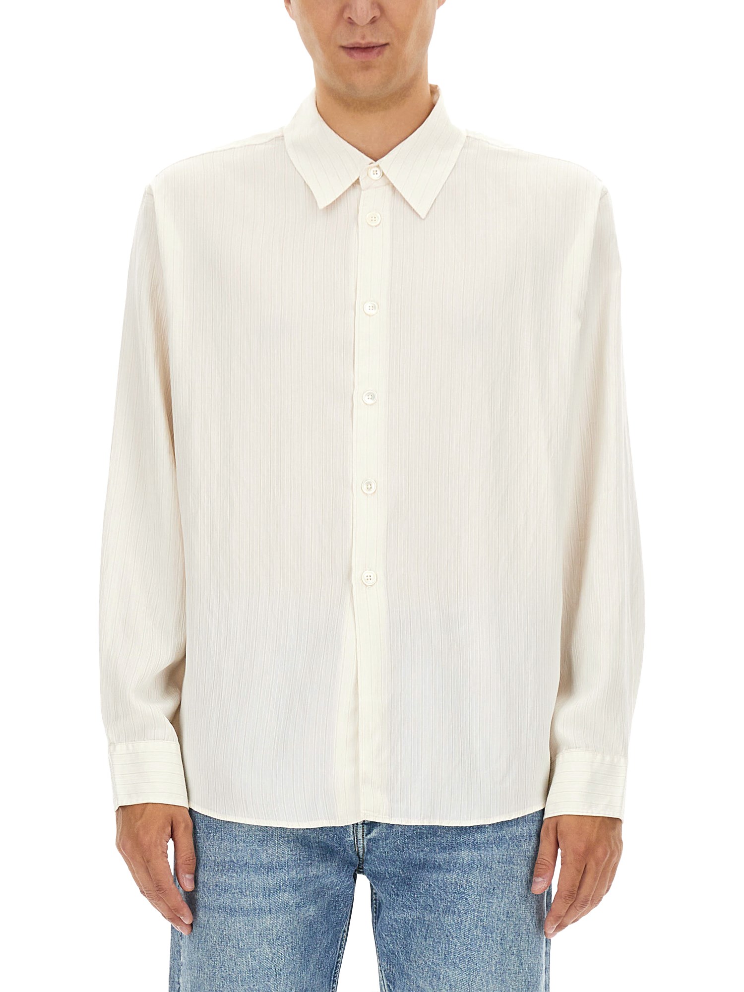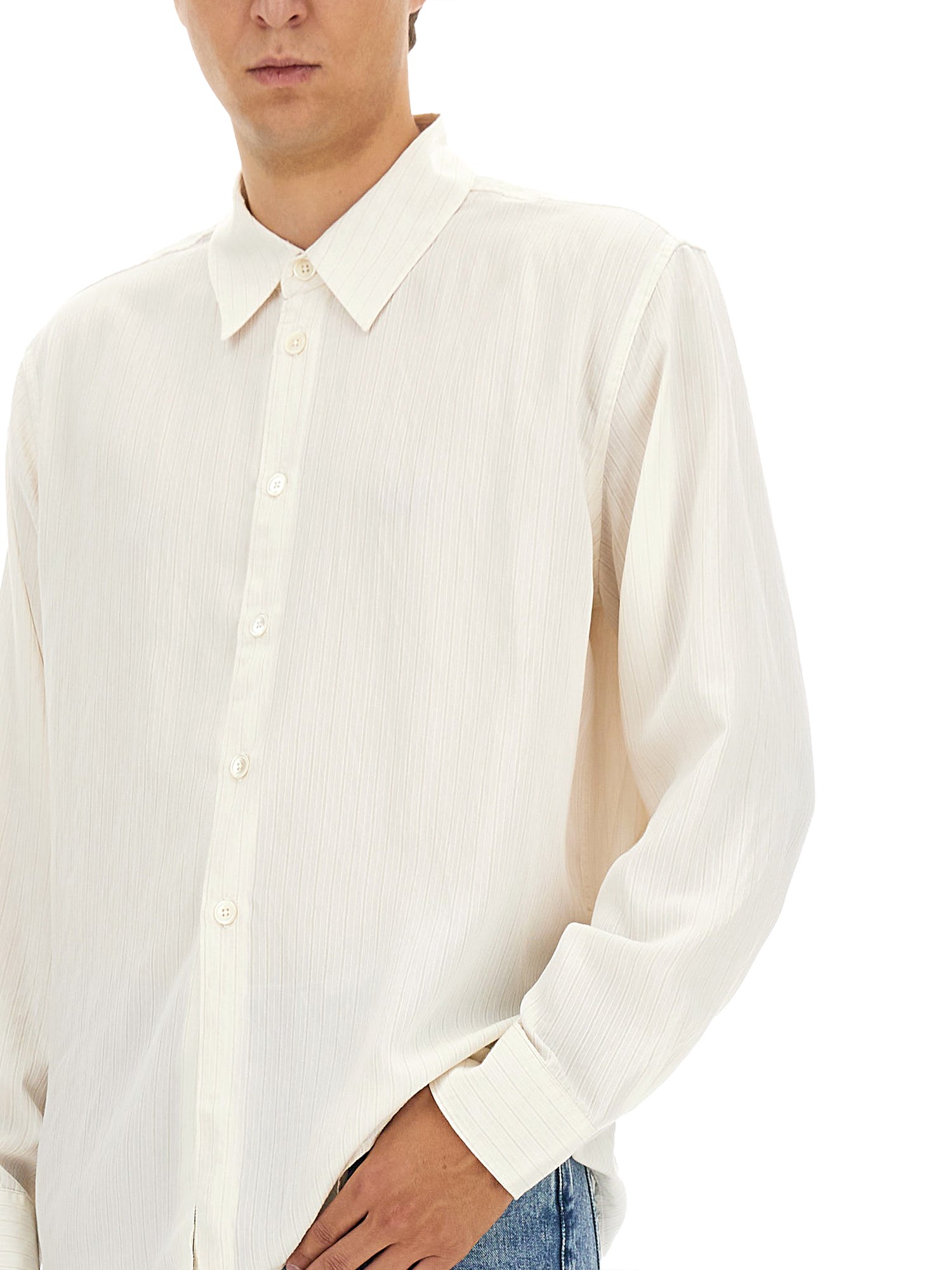 Embrace timeless sophistication with the "Beyond" Shirt from Our Legacy. Crafted with a collared neckline, long sleeves with buttoned cuffs, and a sleek buttoned front closure, this shirt is a versatile piece that can easily transition from day to night. Add a touch of refinement to your outfit with this must-have staple.