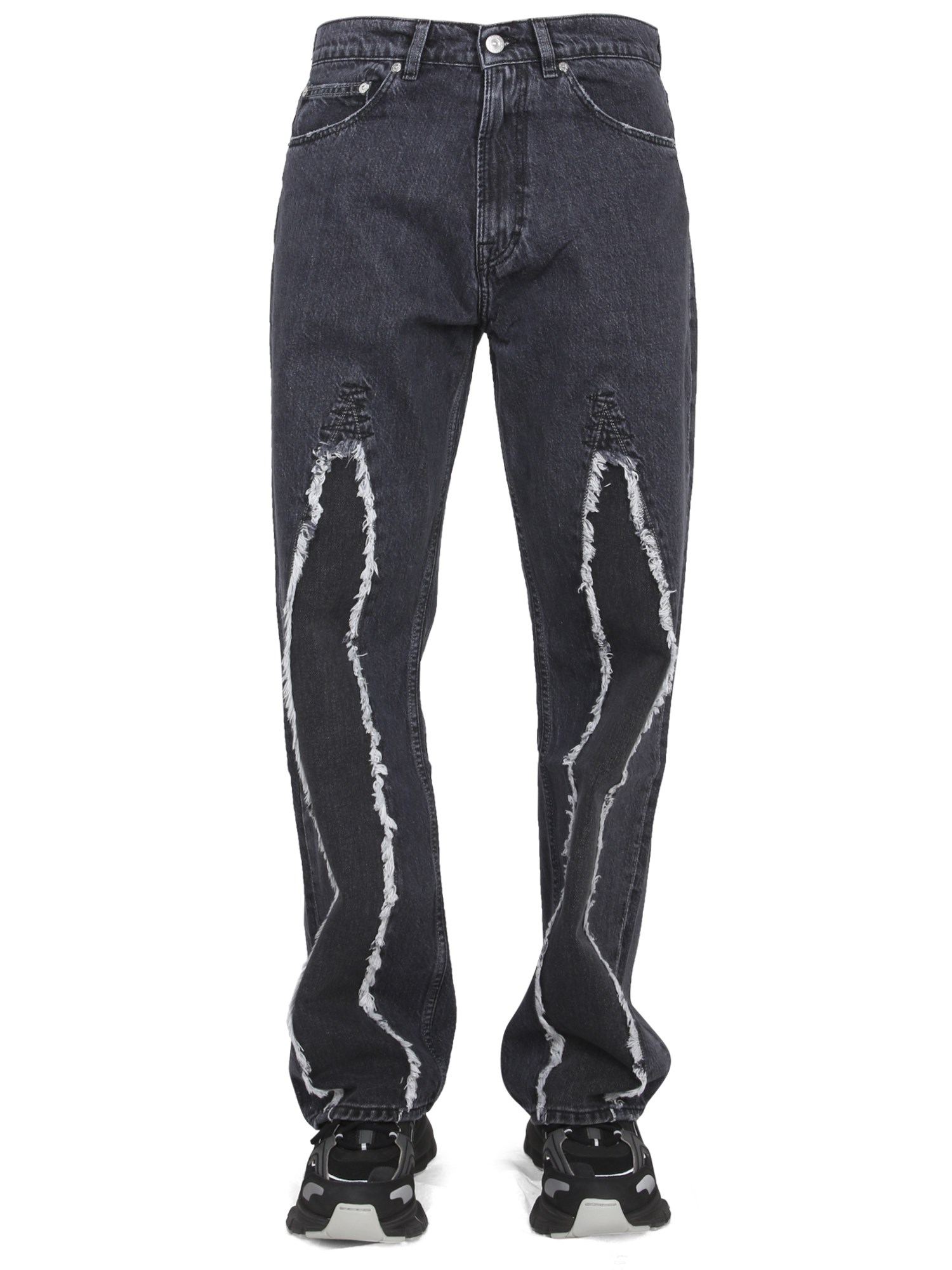 The button closure fringed cut-out detail on these jeans pair from Our Legacy is made from a cotton denim fabric. They are a great piece to add to any wardrobe! These jeans feature a stretch denim fabric that is comfortable and lightweight. The jeans also have a flattering fit and the fringed cut-out detail adds a unique detail.