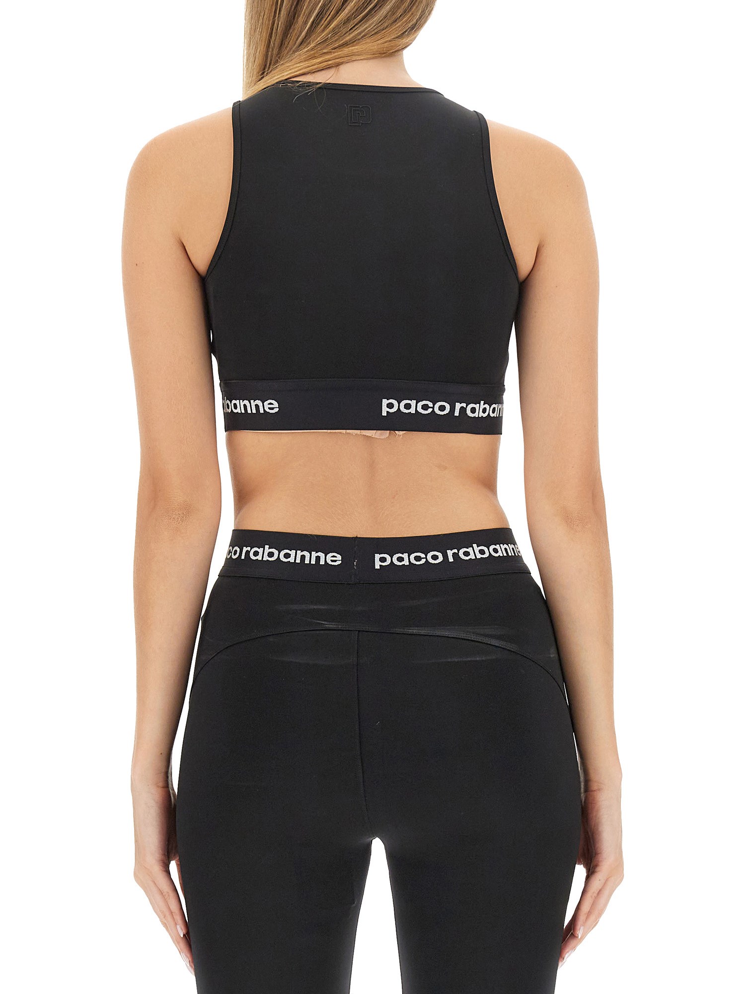Designed with comfort and performance in mind, this sports bra top from Paco Rabanne is made from a high-quality blend of polyamide and elastane, ensuring a soft and stretchy fit that moves with your body. The sleeveless design gives you the freedom to move without any restrictions, allowing you to focus on your fitness goals.