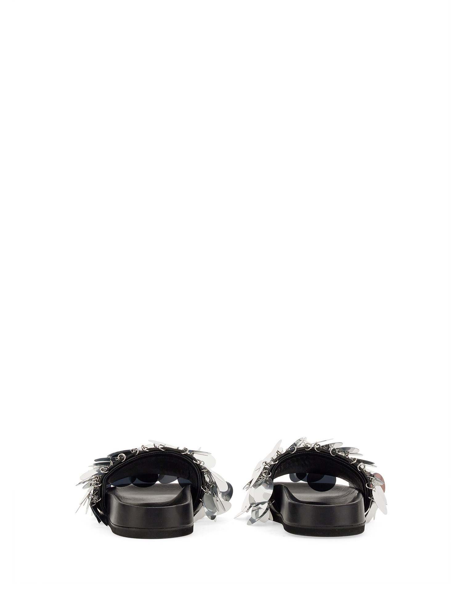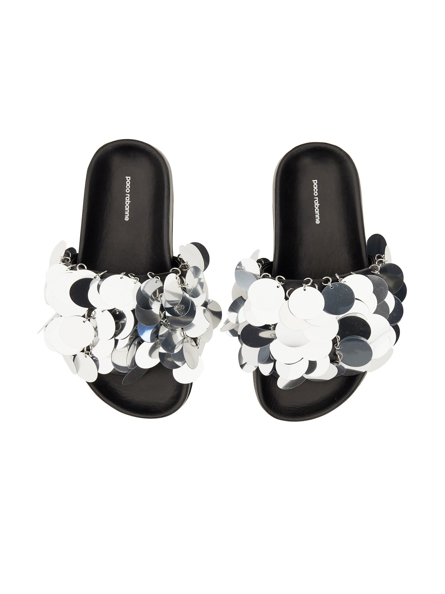Step into summer with these stylish open toe embellished thick strap slip on sandals from Paco Rabanne ! Crafted with comfort and style in mind, these sandals are the perfect addition to your warm-weather wardrobe. The open toe design allows your feet to breathe, keeping you cool and comfortable all day long. The thick straps not only provide support, but also add a trendy twist to these classic slip ons. These sandals are embellished with exquisite detailing, adding a touch of elegance to your outfit.