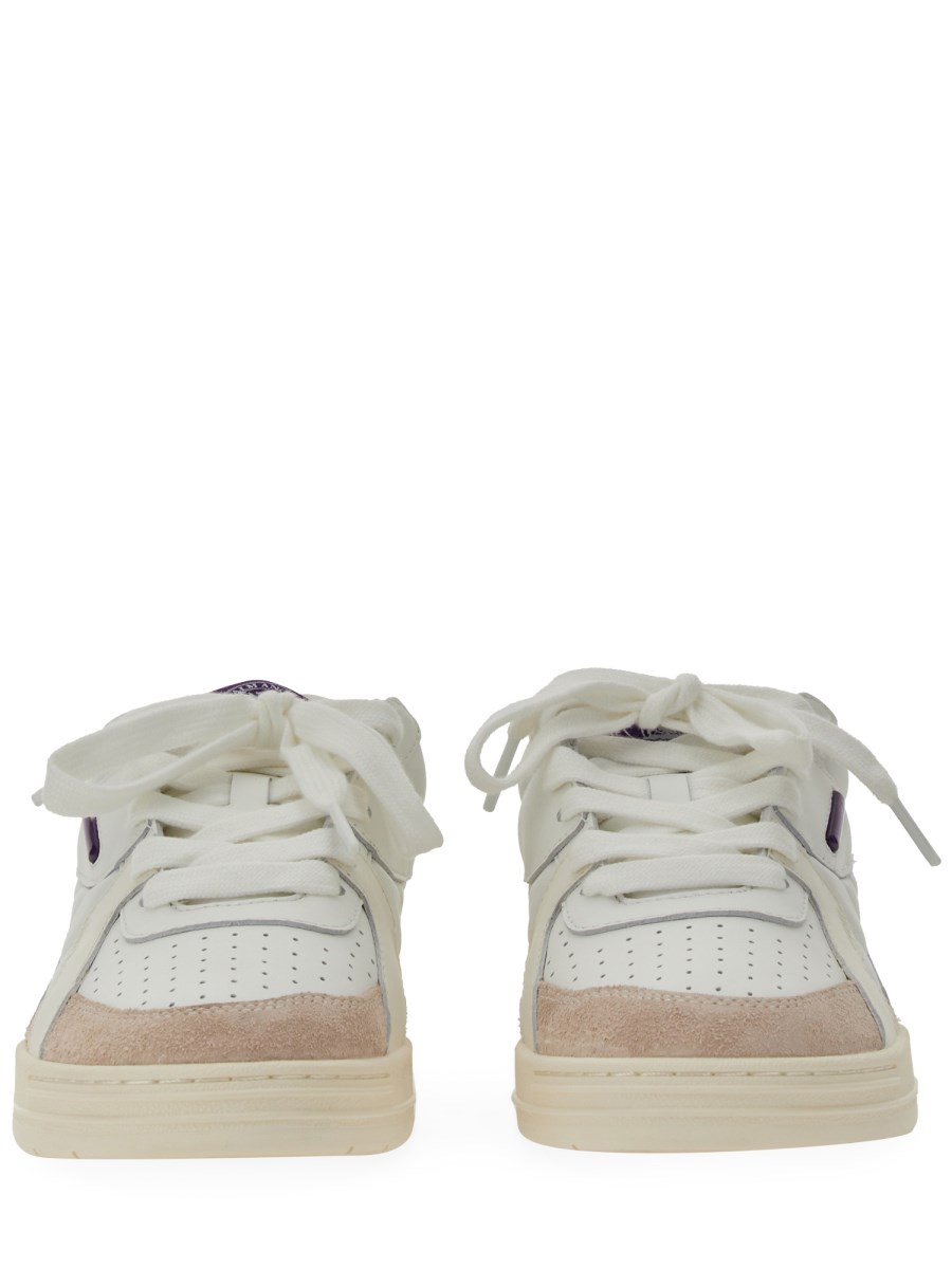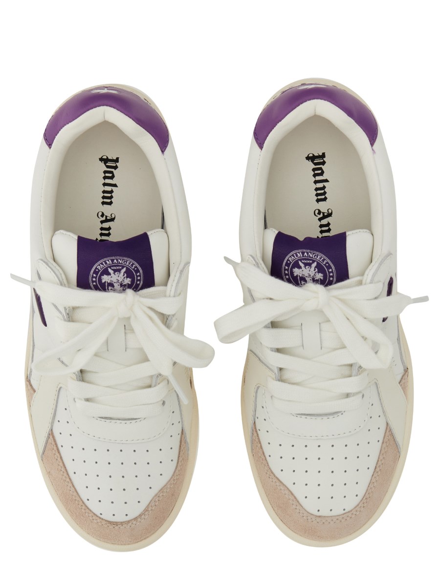 The retro, and almost nostalgic design of the University Sneaker is defined by a timeless silhouette. The soft calf leather and suede combined with a super light rubber sole, presented in different colorways, makes the shoes’ iconicity evident. The quilted padding and the perforated upper, in optical white, contrasts with the bright color of the shoes’ back tab, which depicts a stylized palm and a personalized logo.