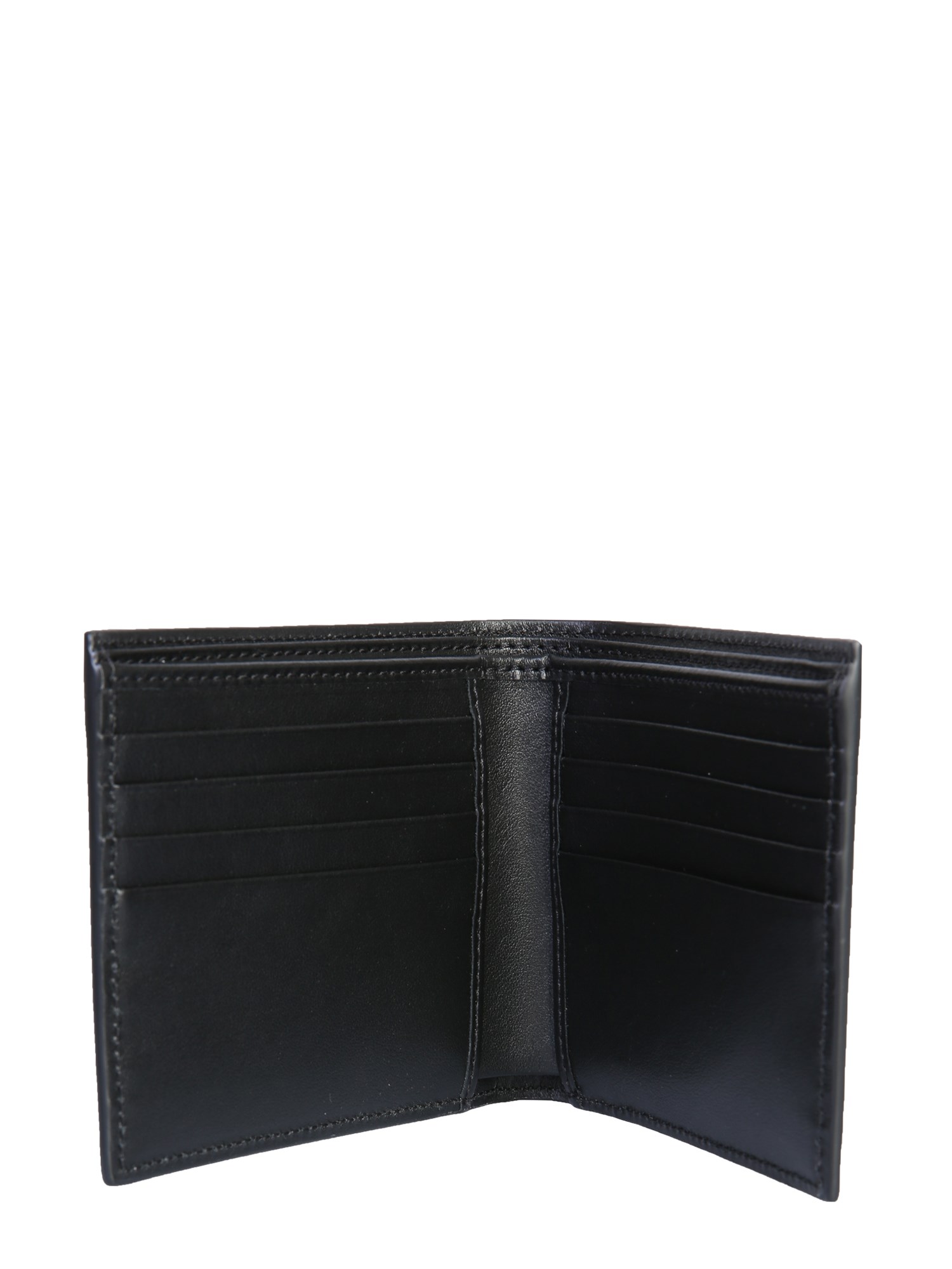 Organize your money in the bi-fold wallet by Palm Angels. This Italian accessory is made with a blend of polyester and cotton. It has a booklet closure that not only keeps your money safe but gives the wallet an edgy look. The wallet has eight card slots, two document slots, and two banknote compartments.