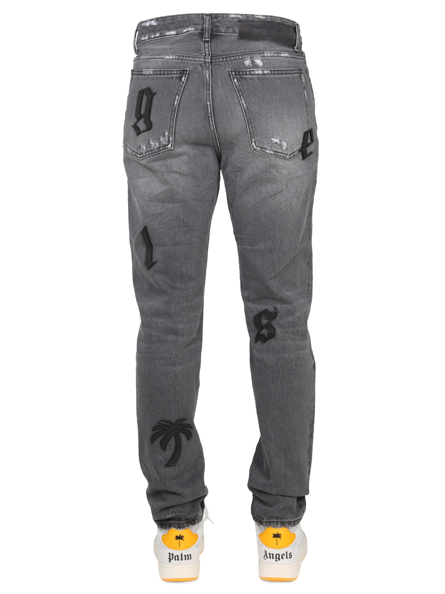 This pair of jeans from Palm Angels are a classic style with a zipper and button closure. They are made of a sturdy cotton denim, and are regular fit. The classic fit of these denim jeans are designed with a button and zipper closure. They are made from a cotton blend and are lightweight.