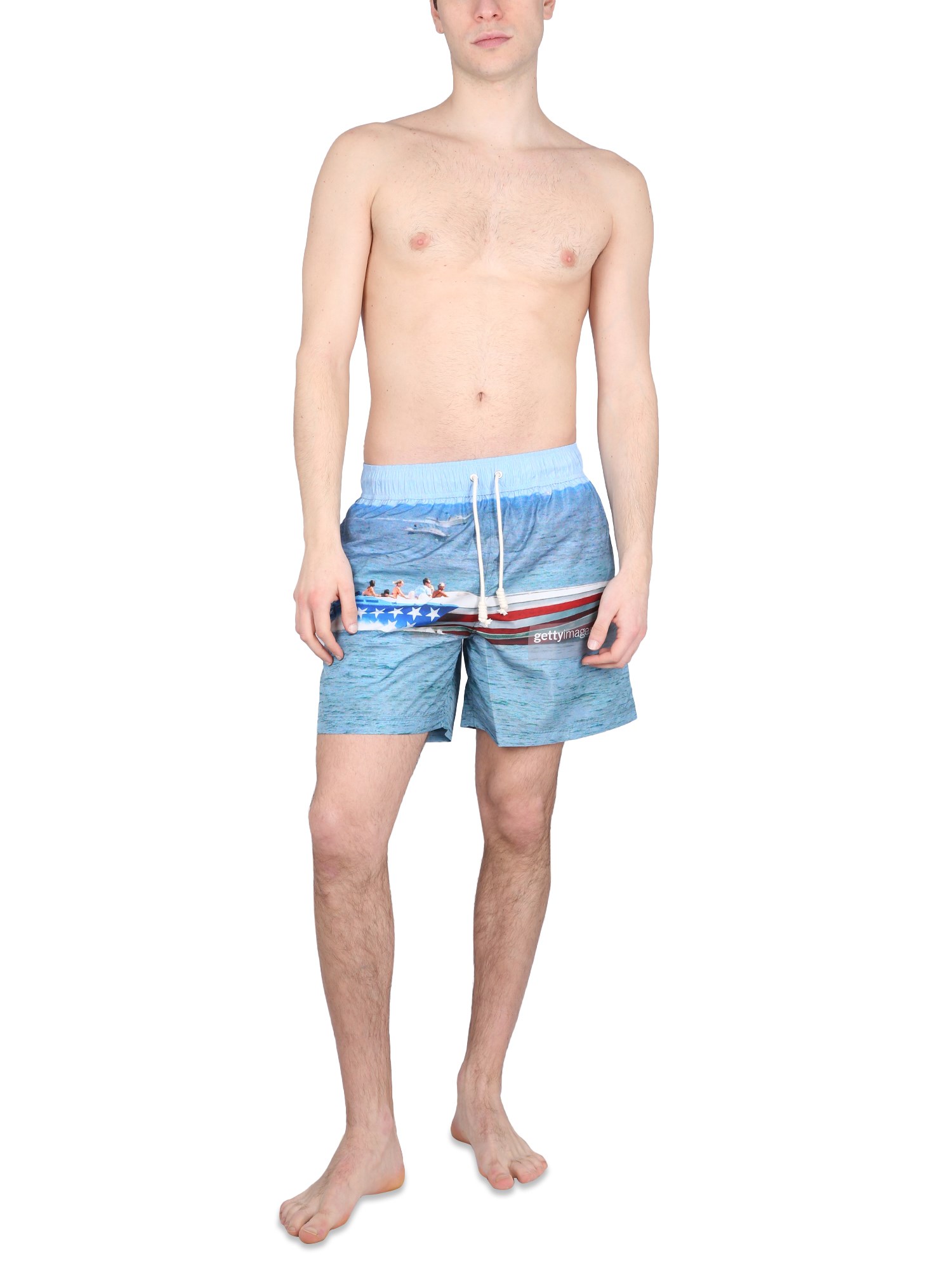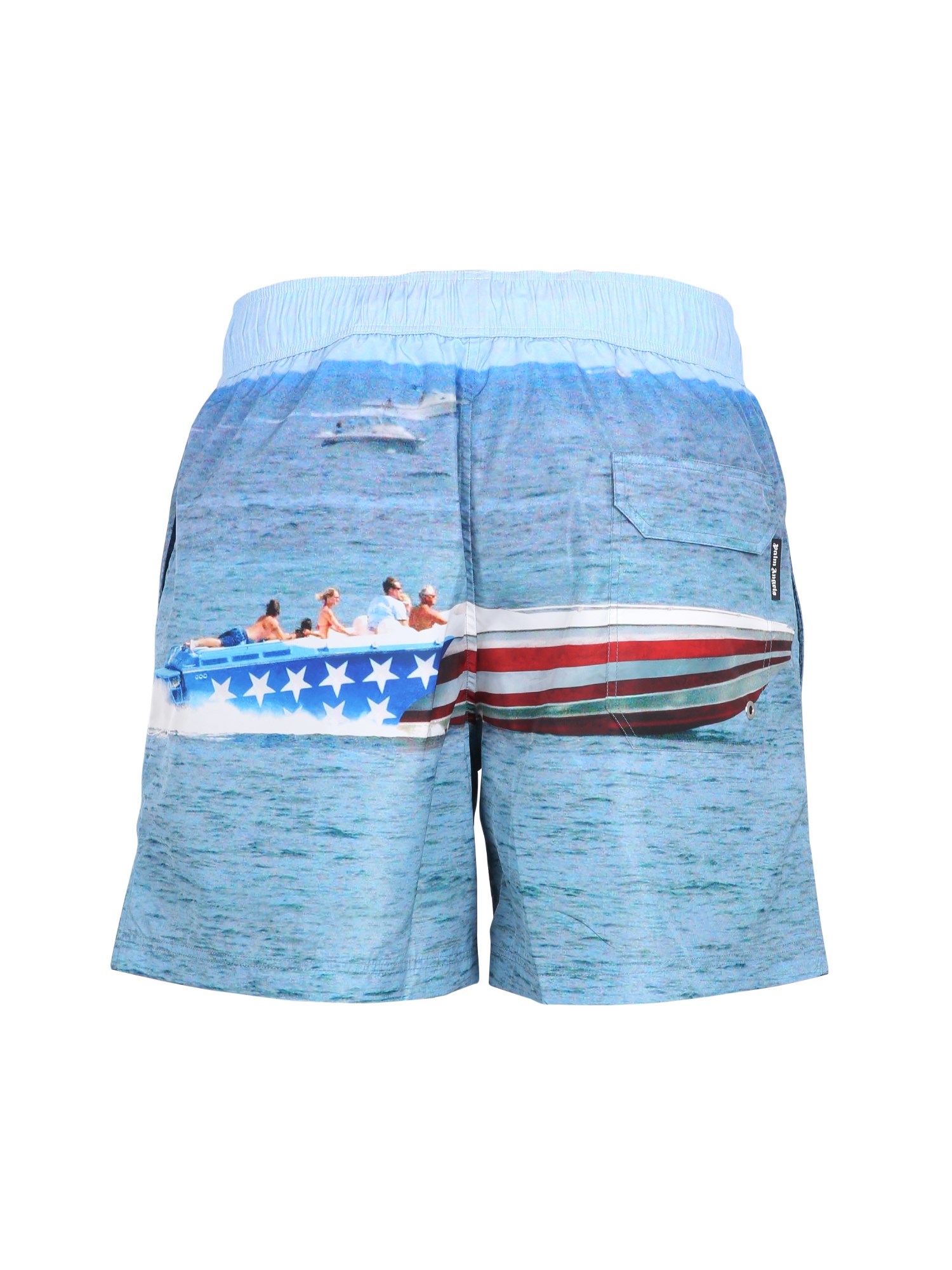 This swimsuit boxer from Palm Angels has an elastic waistband that keeps it from riding up, a two side pockets, and one back pocket. It is made of nylon and is a boxer style. Made from durable nylon and with an elastic waistband, this swimsuit is a must-have for the beach.
