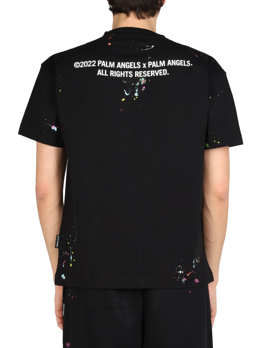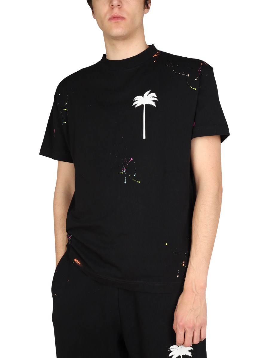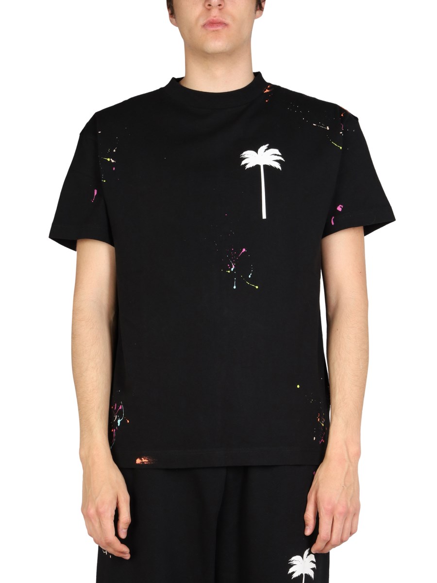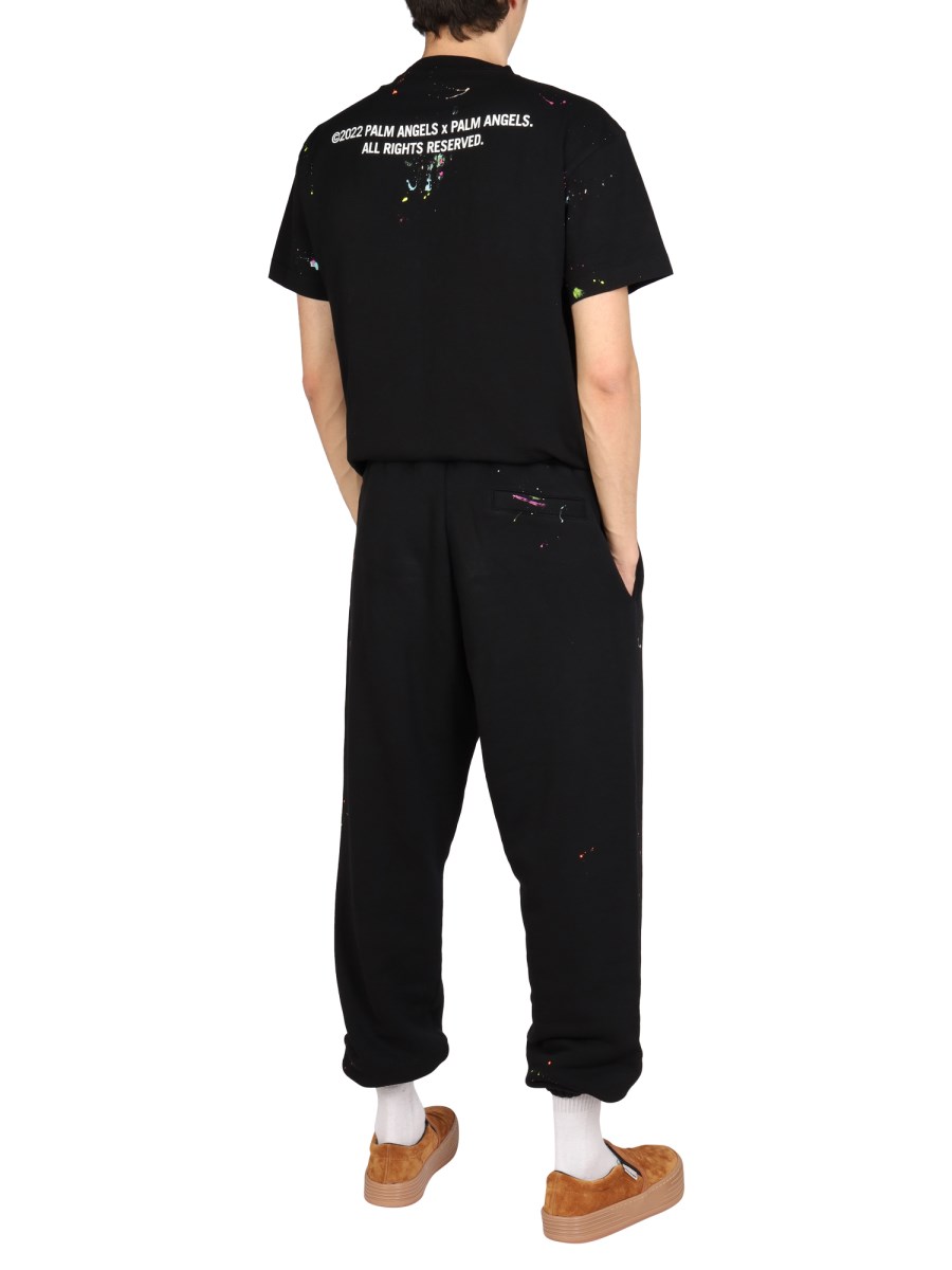 - CREW NECK- FRONT LOGO PRINT- PAINT EFFECT- 100% COTTON- MODEL IS 190 CM TALL AND WEARS SIZE L
