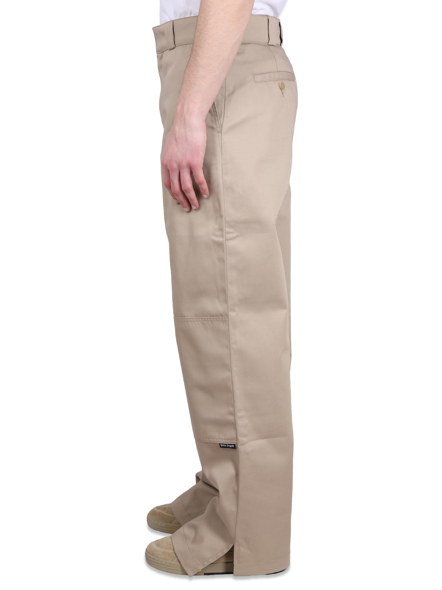 These pants from Palm Angels have two side pockets and a zipper closure. They are made of cotton and polyester and are a classic chino style. These pants are a comfortable, casual, and classic choice. These pants can be styled in multiple different ways to according to the occasion.
