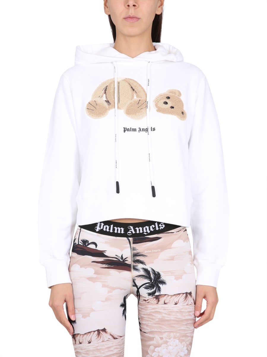 This hoodie from Palm Angels is super soft and warm, the perfect accessory for a chilly day. The pullover features a drawstring hood, long sleeves, and a straight hem. It has a regular fit that allows you to move around freely and a "Bear" embroidery on the front.