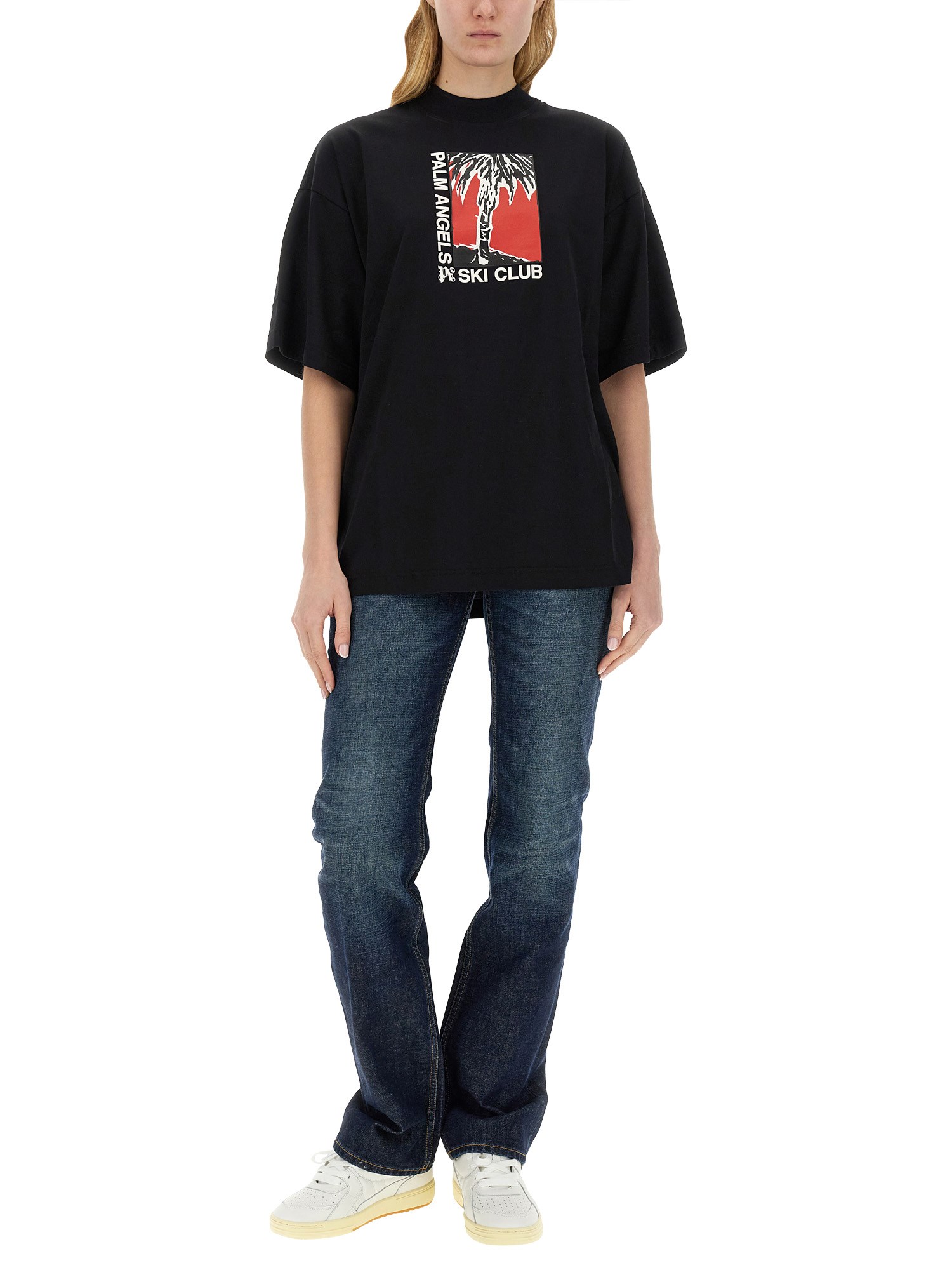 Introducing Palm Angels Front Logo Cotton Black Oversized T-shirt, the perfect addition to your casual wardrobe. Crafted with comfort in mind, this T-shirt is made from soft and breathable cotton fabric. It can be dressed up or down depending on the occasion, making it a great choice for both casual outings and social events.