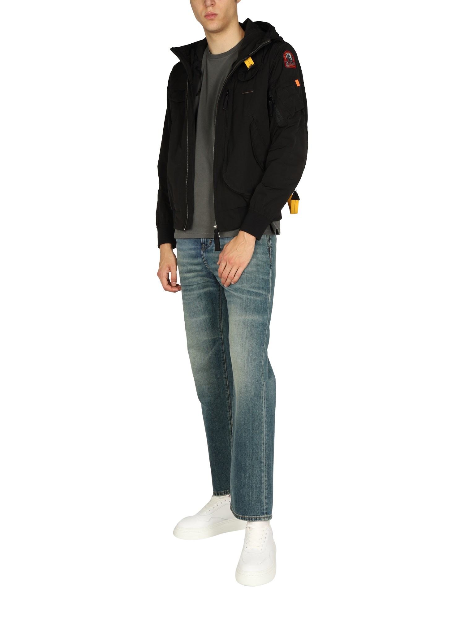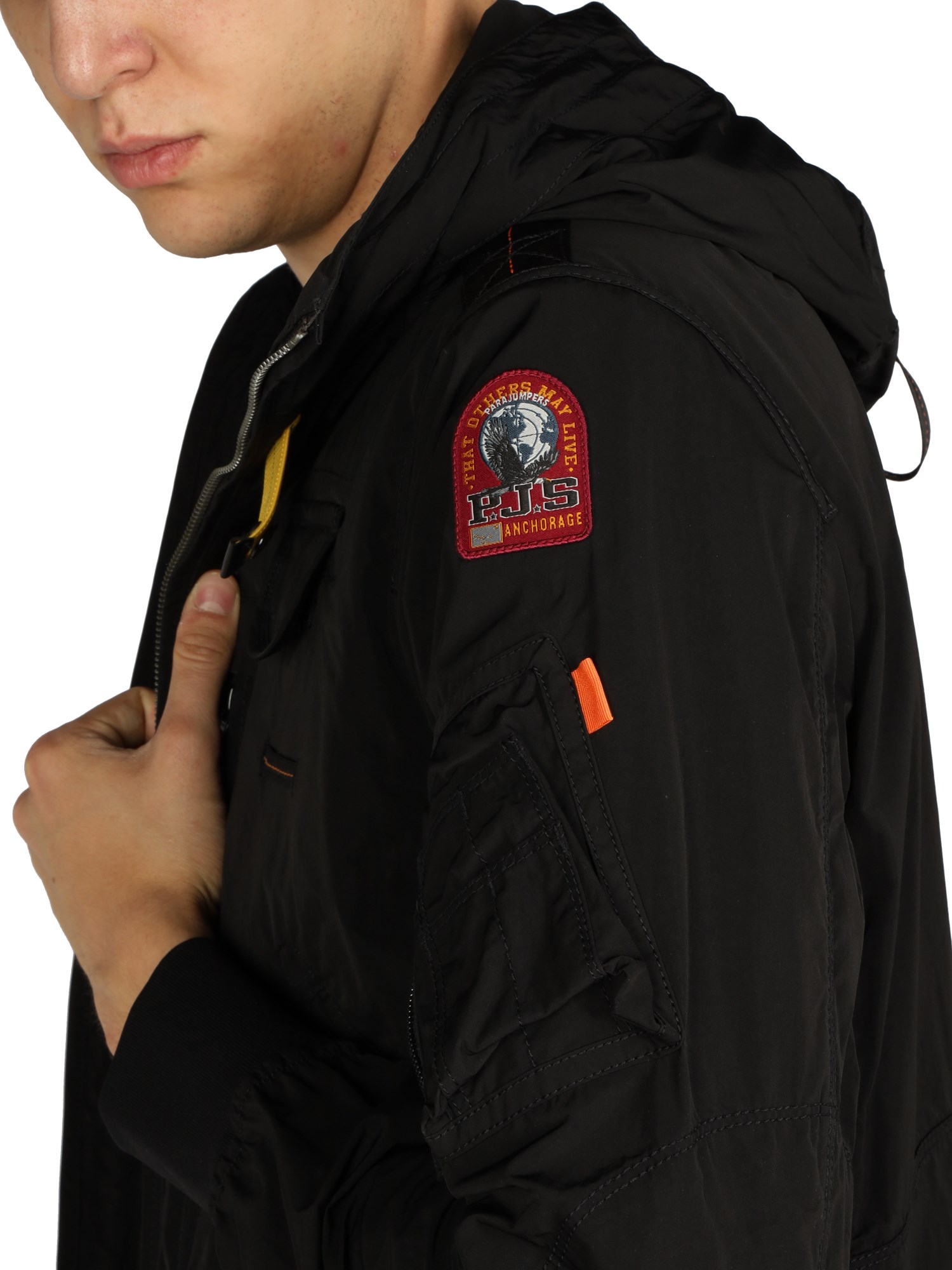 The "Gobi Spring" Bomber Jacket from the house of Parajumpers has an insulated body for cold weather and is designed to have a low profile so you can stay hidden from the wind. The jacket features a high neck with a hood, long sleeves, ribbed cuffs and hem, multi-pockets and a logo patch on the left sleeve, and a zipper closure.