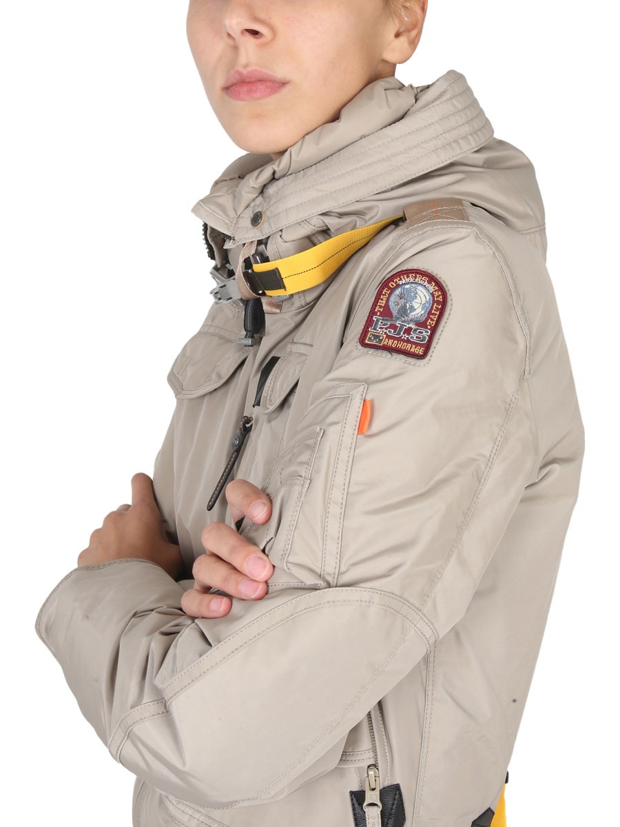 The "Gobi" Jacket from the house of Parajumpers is a classic and timeless style that is perfect for all seasons. It features a high neck with a hood, long sleeves, front zipper closure, and an unlined inner. It has two patch pockets on the chest, two side pockets, and a maxi front zipper pocket.