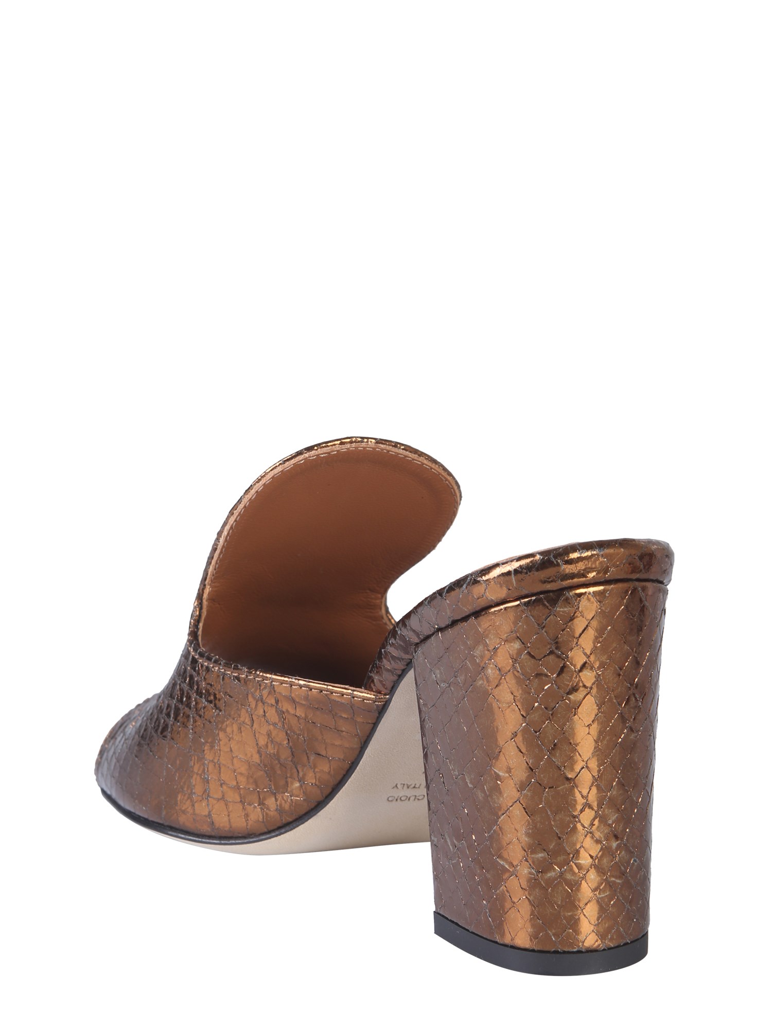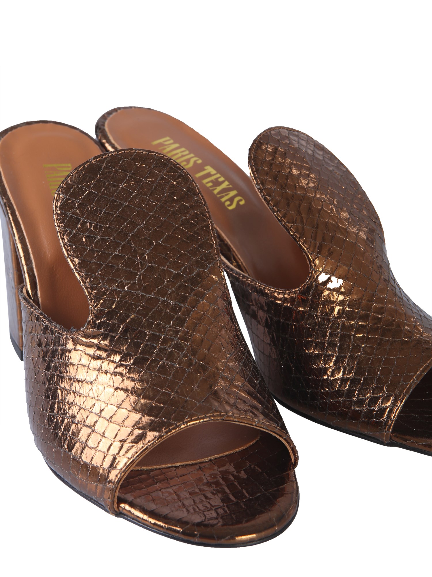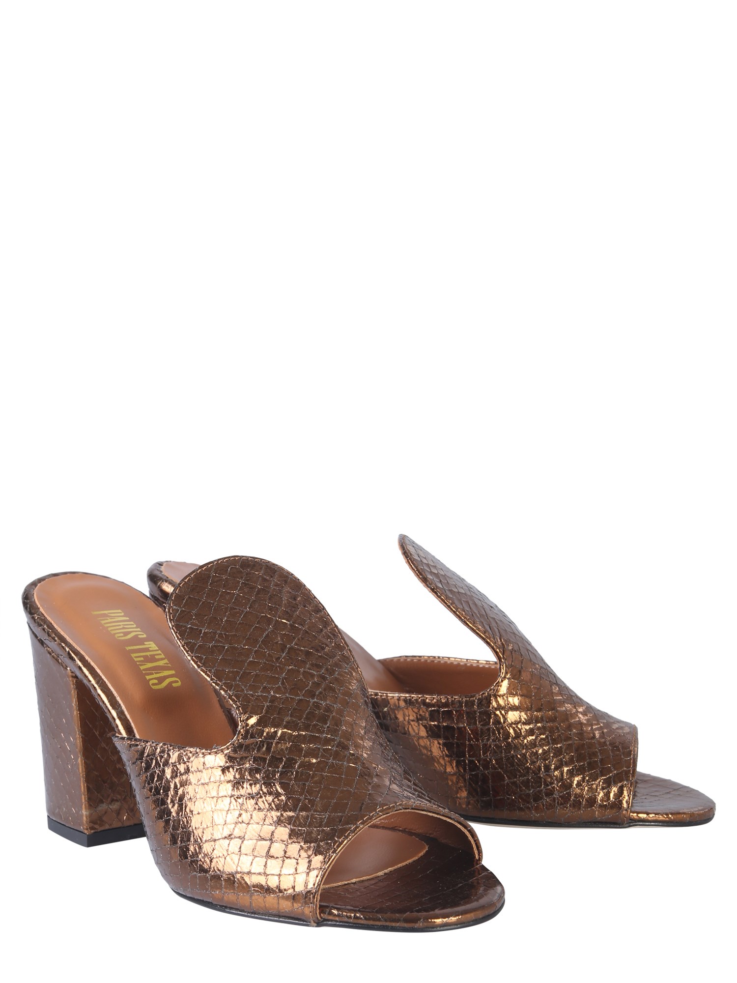 These metallic leather mules from Paris Texas are your pick if you’re looking for comfort and style at the same time. The sandals are made of fine quality leather that ensures durability. They have an 8cm block-shaped heel for walking smoothly on any surface. Team them with denim skirt and crop top for a complete look.