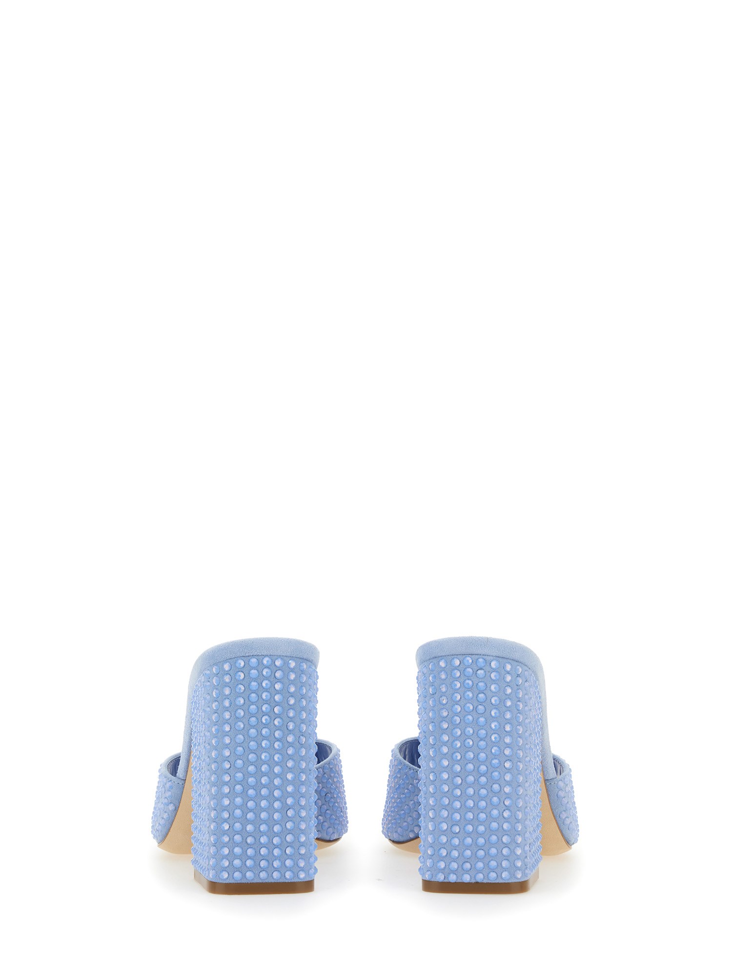 The mules from Paris Texas gives a sexy and trendy look that is perfect for any occasion. If you're looking for a trendy new pair of shoes to add to your collection, these leather mules are perfect for you. The leather upper features a peep toe and leather lining for comfort. The rhinestones are applied for a stylish look, and the rubber sole is sure to keep your feet happy.