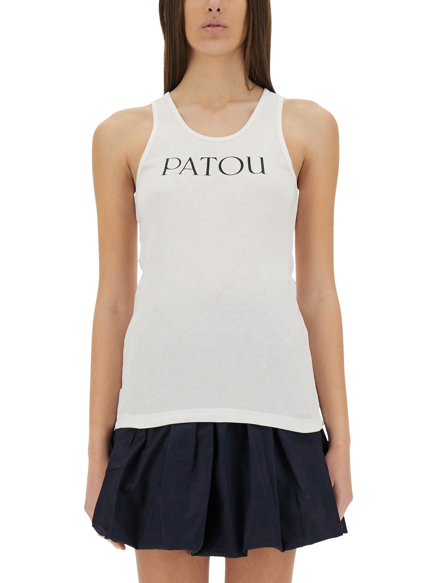 Preparatevi a sfoggiare un look rilassato ed elegante con la nostra T-shirt con stampa logo di Patou! Caratterizzata da scollatura a girocollo, stile senza maniche e orlo dritto, questa T-shirt è all'insegna del comfort e della moda. Il suo tessuto leggero permette di muoversi facilmente, rendendola ideale sia per le uscite casual che per le giornate attive. L'accattivante stampa del logo sul petto aggiunge un tocco di personalità e mostra il vostro amore per Patou.