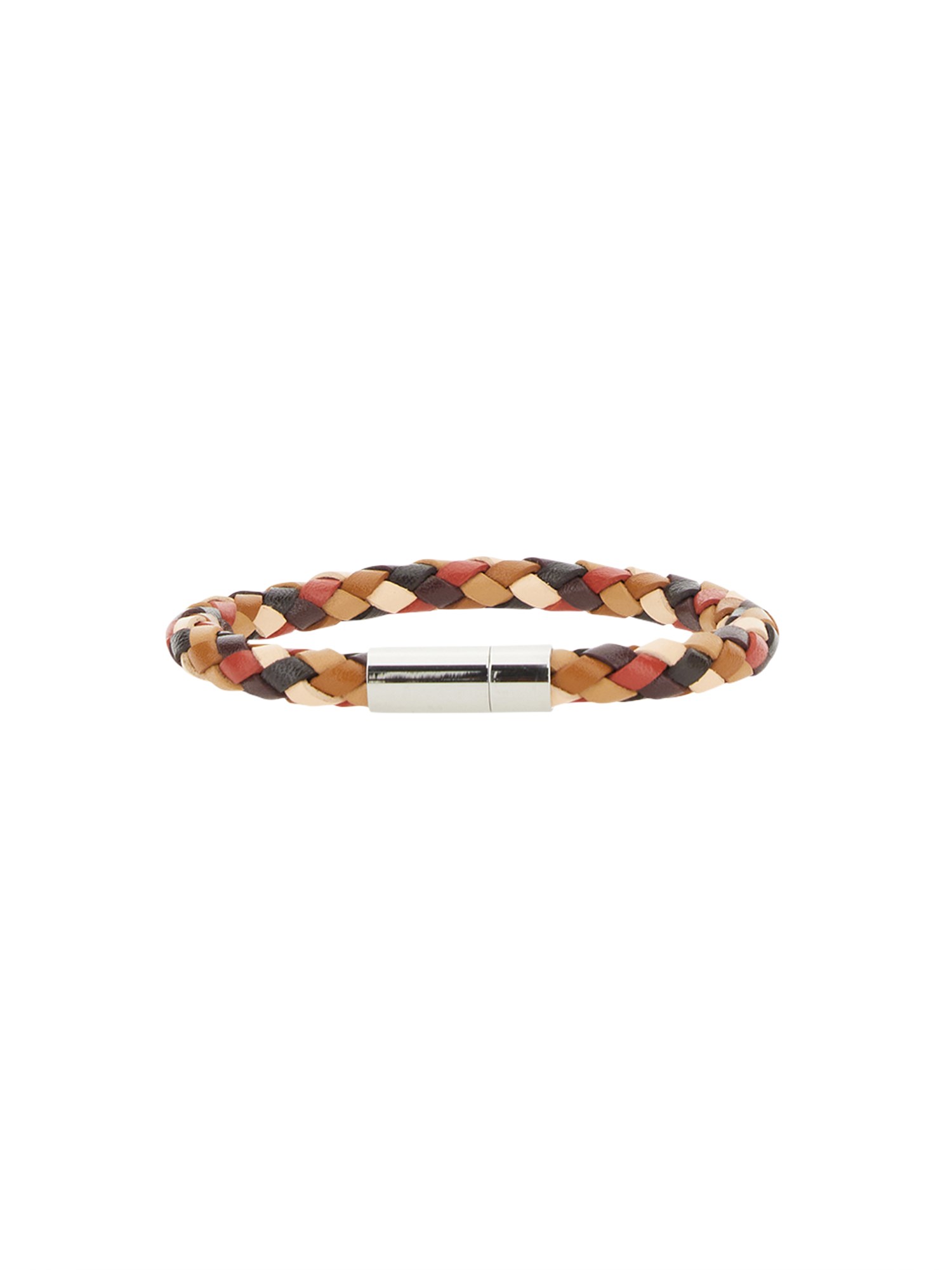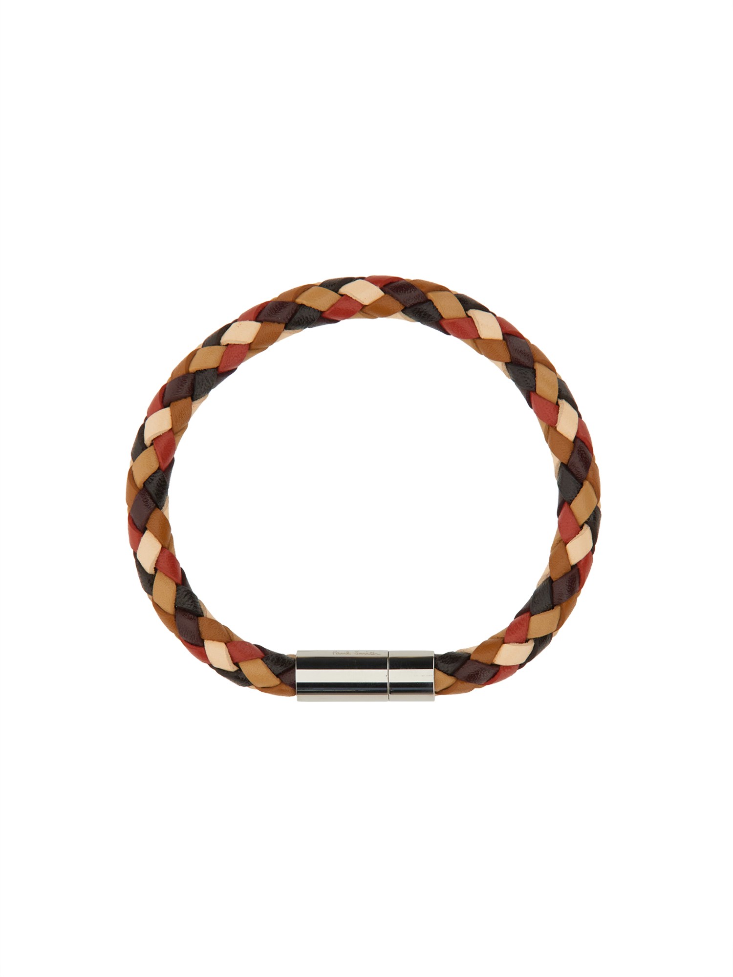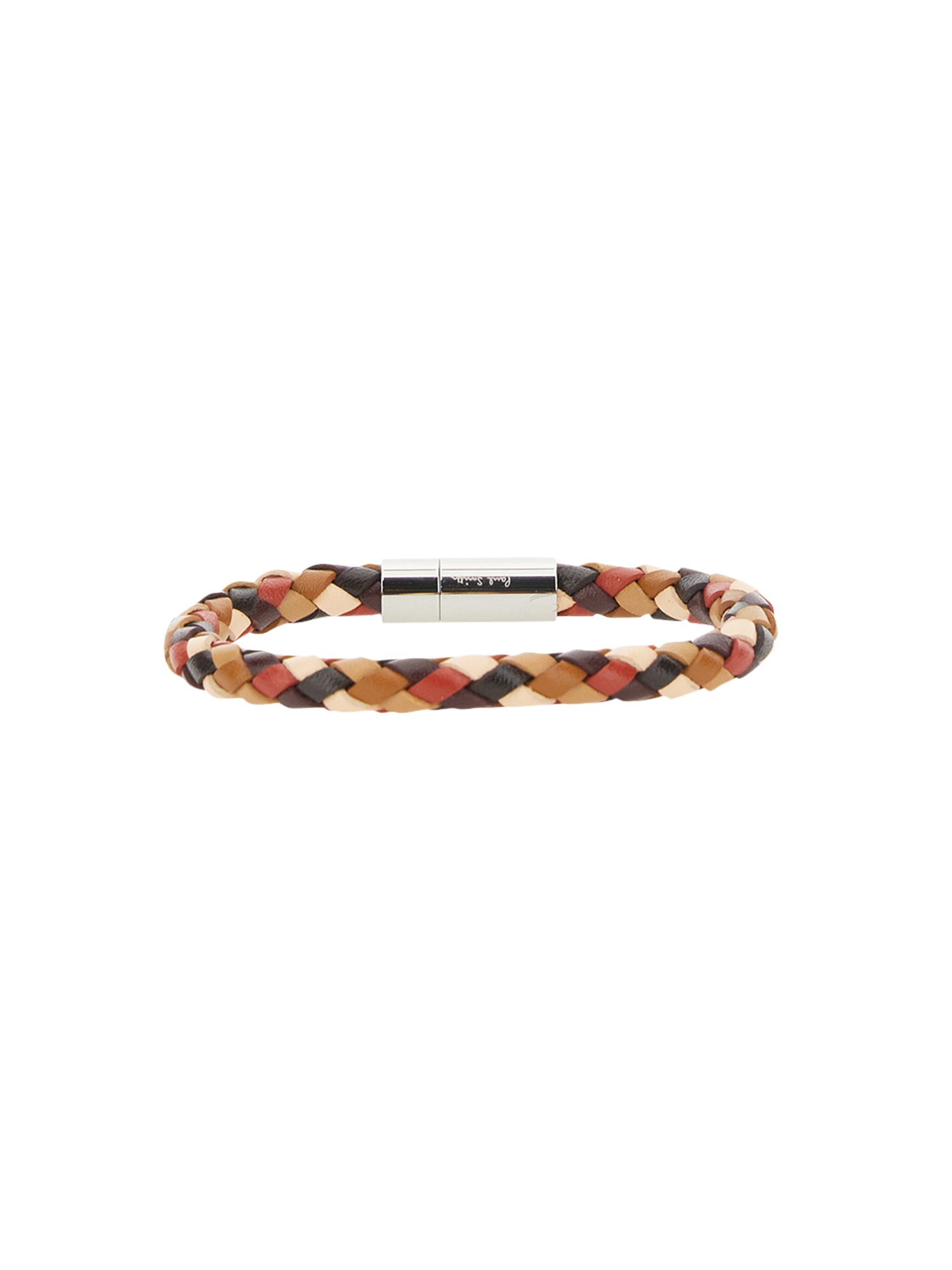 This is a luxurious braided bracelet from Paul Smith made from thick, luxurious leather. It has a magnetic clasp that makes it easy to put on and take off. It's the perfect gift for someone who is always losing their things, or just loves a little bit of luxury in their life. The braided design offers a textured touch and a chic, eye-catching style.