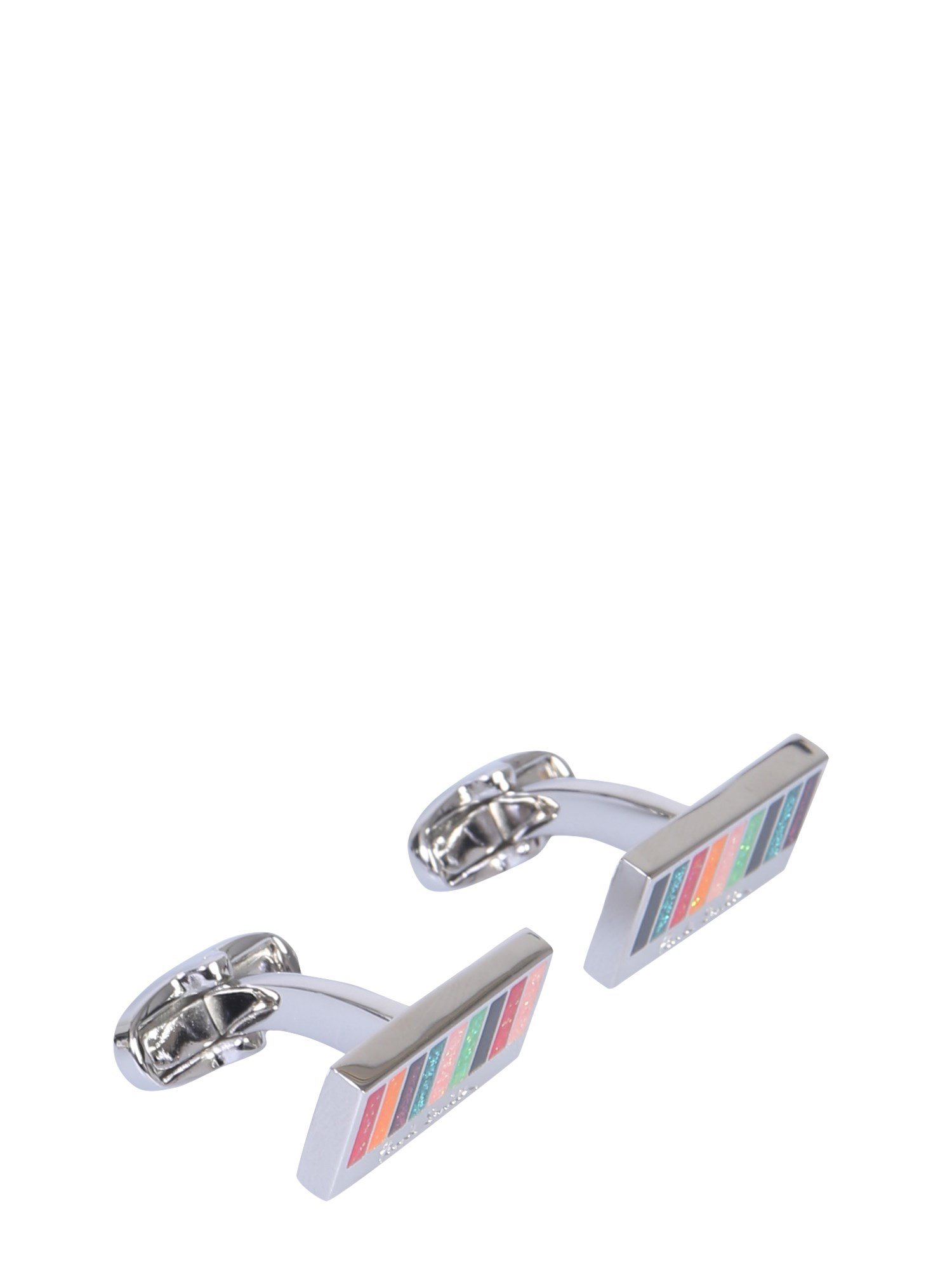 All accessories offered by Paul Smith are engraved with the branding in a cute font and these cufflinks do the same. With their shiny structure adorned with multicolour stripes, they make a style statement with all your formal outfits. Also, the materials used to make these cufflinks give them toughness and long life.
