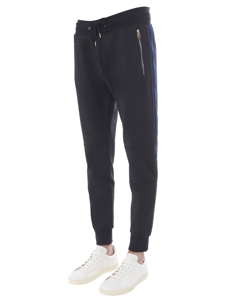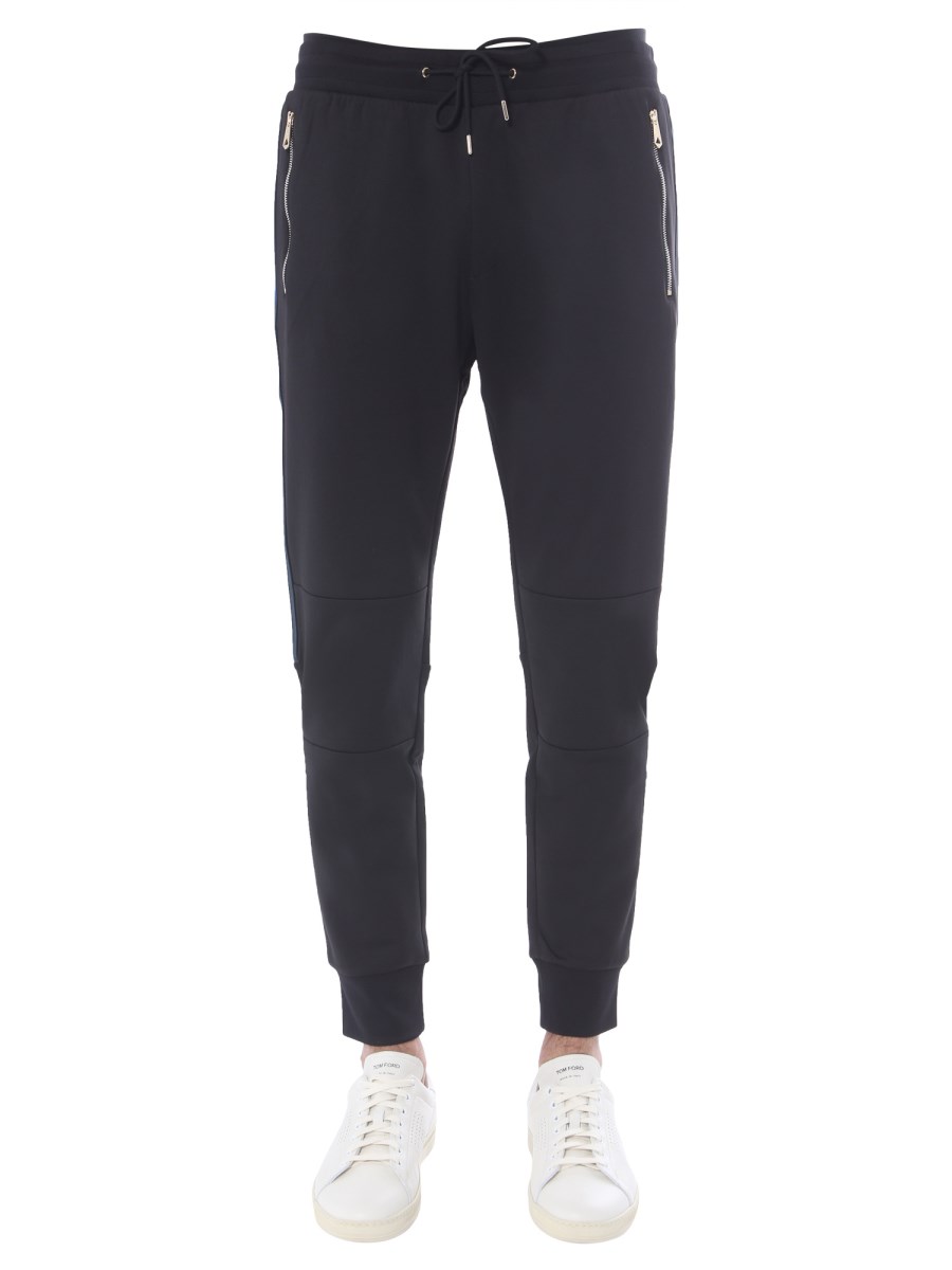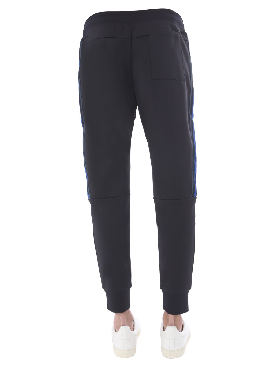 Stand out in these jogging pants from Paul Smith that are designed to make an impact. These cotton blend pants have elastic waistband and bottom. The contrast side bands make them look stylish. The two side and one back pocket keeps the small essentials close. The drawstring waist lets you personalise the fit.