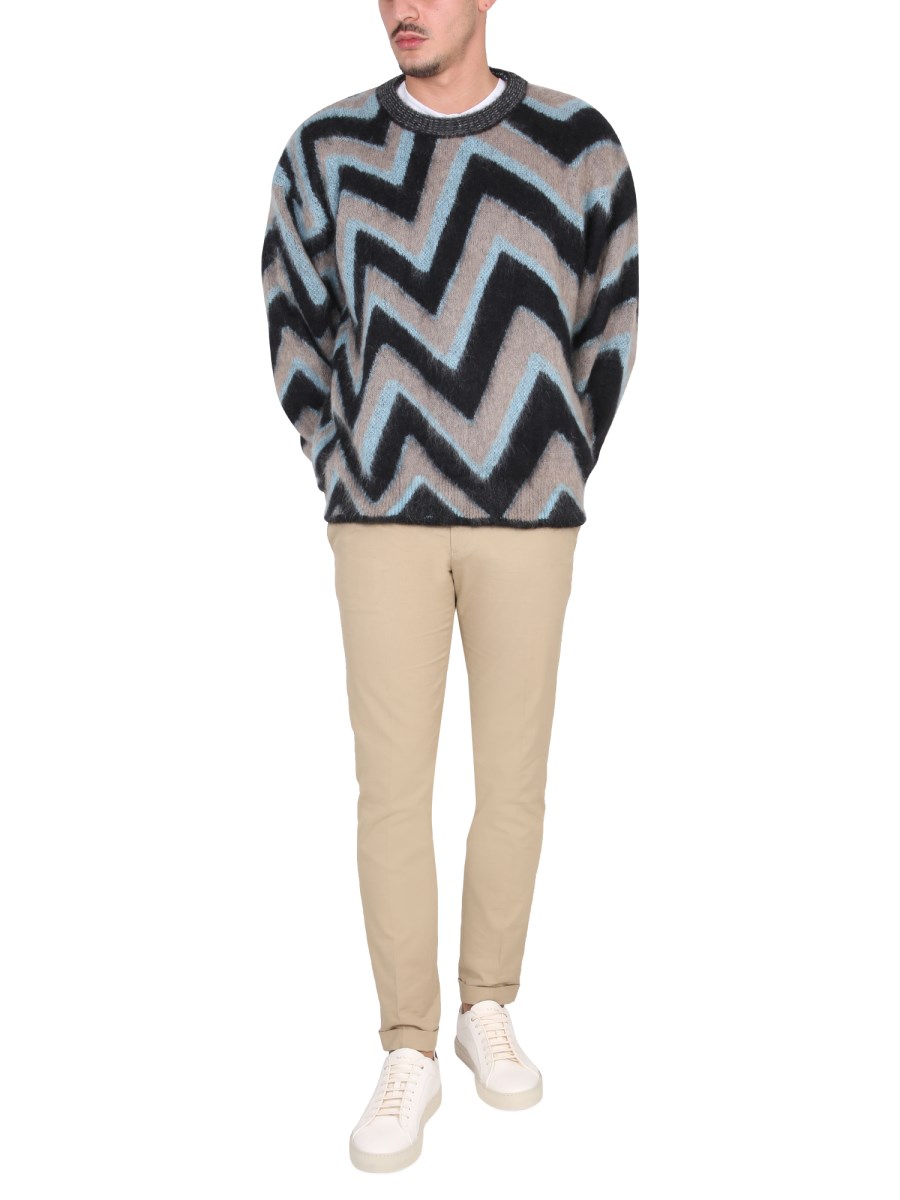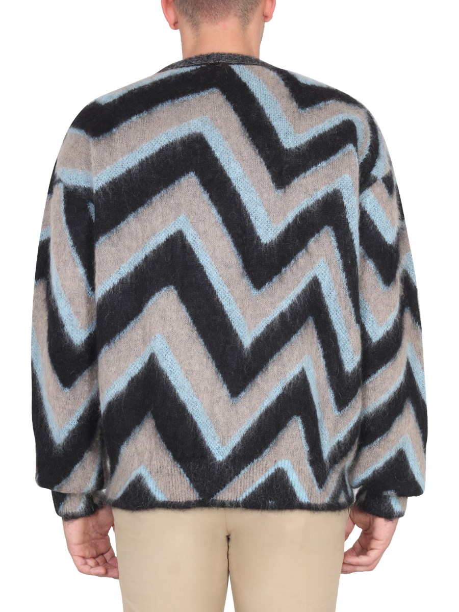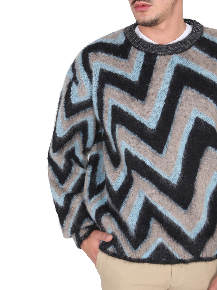 - CROWLING- ZIG ZAG PATTERN- 61% MOHAIR, 16% NYLON, 13% POLYAMIDE, 10% WOOL- MADE IN ITALY- THE MODEL IS 190 CM TALL AND WEARS SIZE M