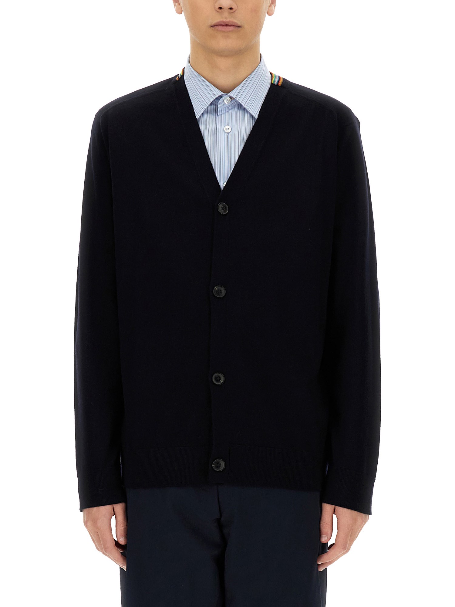 Experience the perfect blend of style and comfort with the Paul Smith Merino Wool Cardigan. Crafted from luxurious merino wool, this cardigan offers exceptional warmth and breathability, making it an ideal layering piece for any season. Its tailored fit and classic design ensure versatility, whether you're dressing up for a formal occasion or keeping it casual. Elevate your wardrobe with this timeless staple that combines quality craftsmanship with the signature Paul Smith flair.