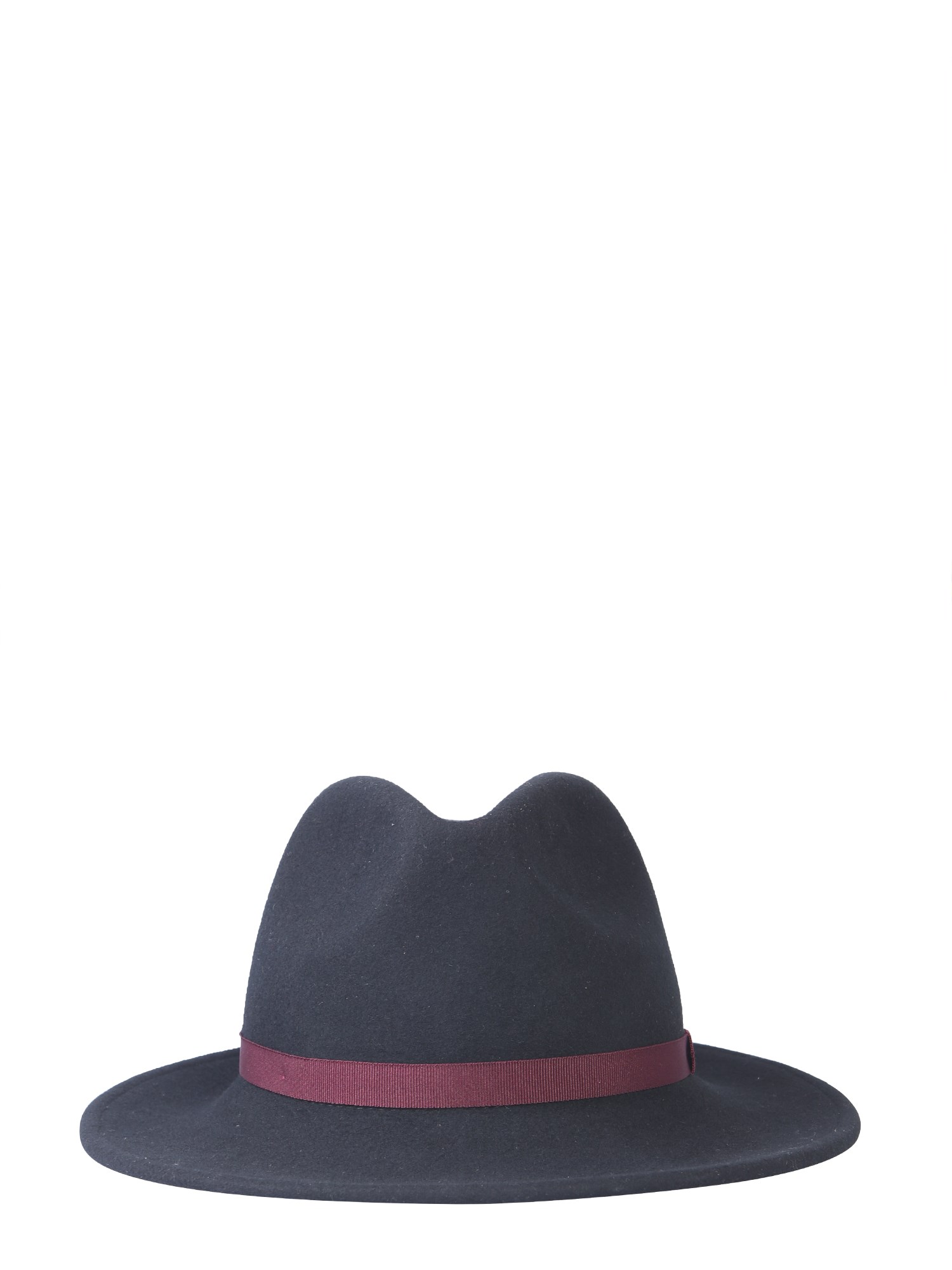 Don a stylish beach look with this large brim hat from Paul Smith. It is made of fine quality wool fabric for a luxurious appeal. The contrasting band gives it a cool and casual appeal. The wide brim will save you from the scorching heat and enhance your style quotient as well.