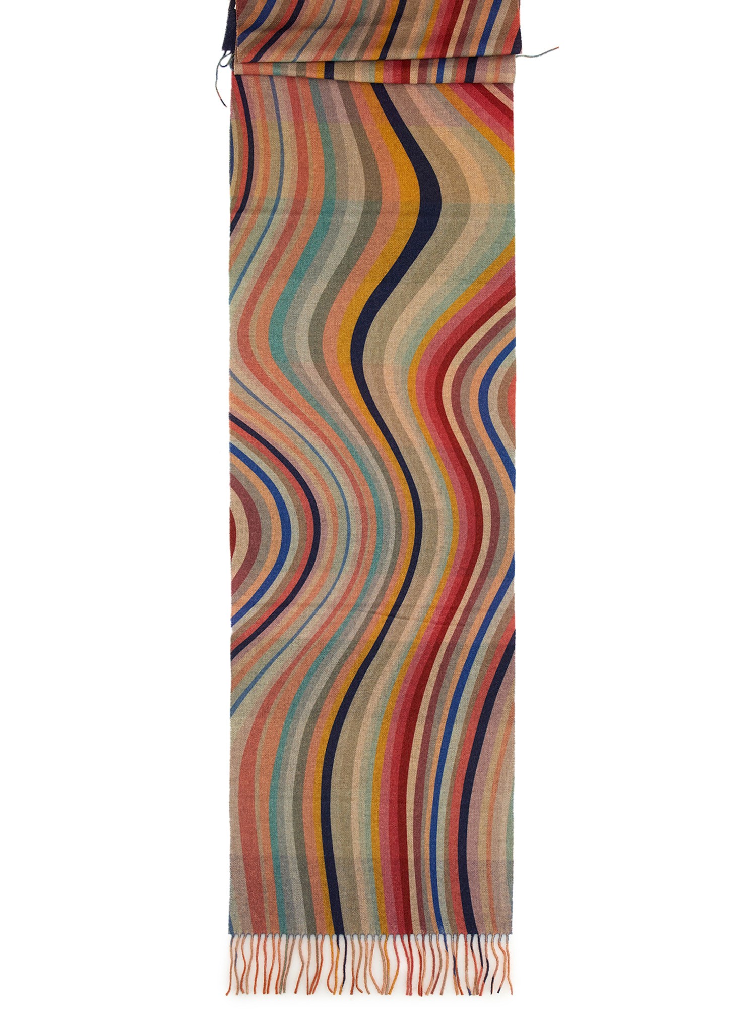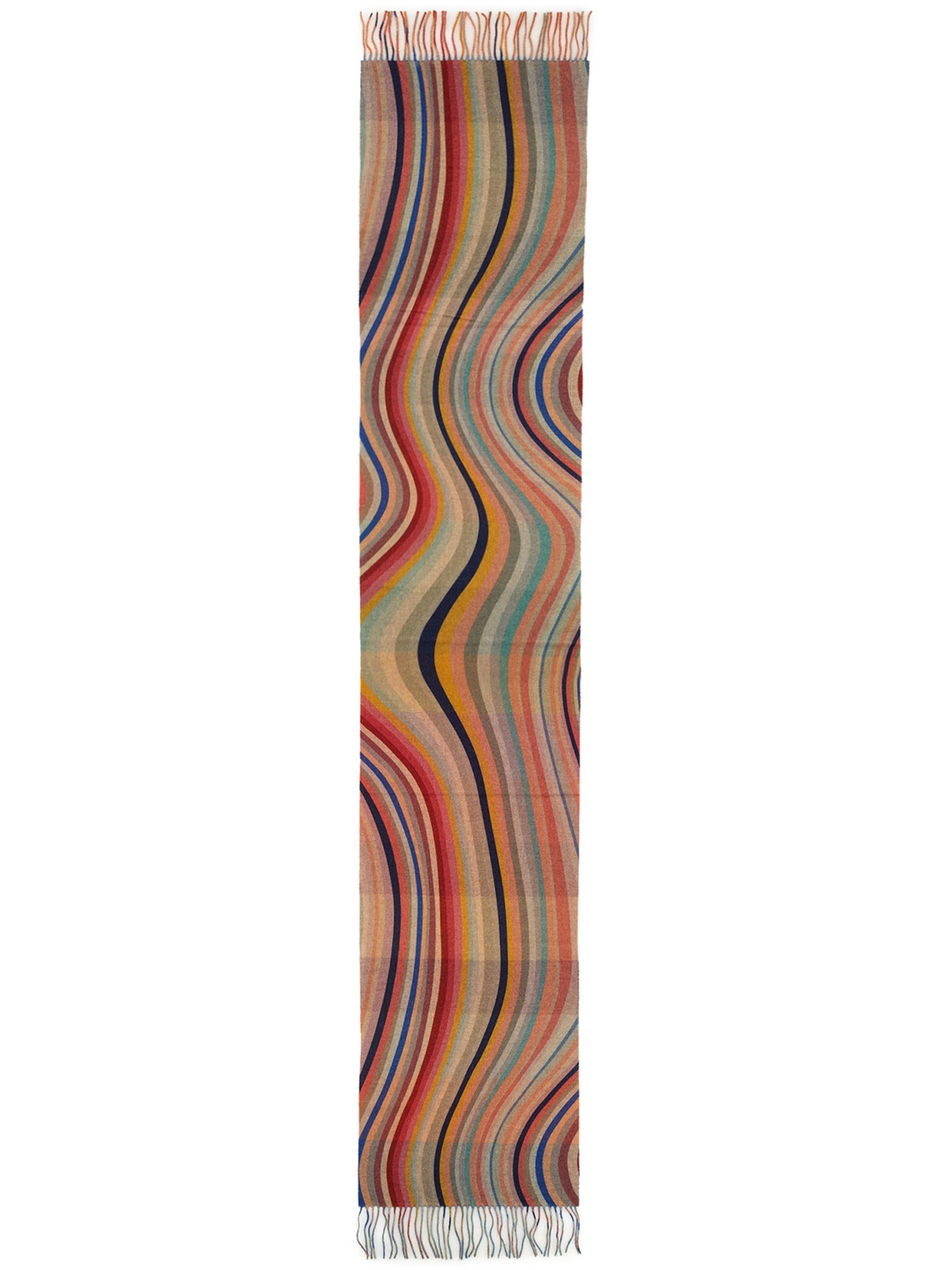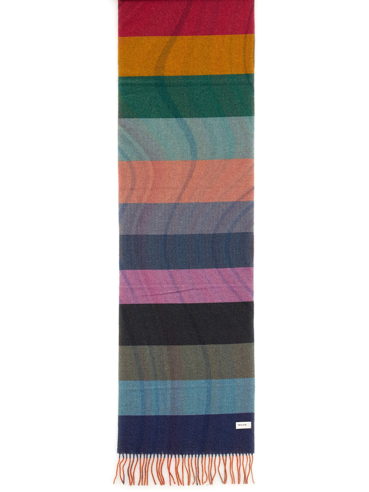 Give your casual ensemble a quirky twist with this swirl striped scarf from Paul Smith. It is made of a mix of wool and cashmere that can be worn for long hours without any irritation. Its classy design is finished with a multicolour-striped design which is topped with fringe detail at the ends.
