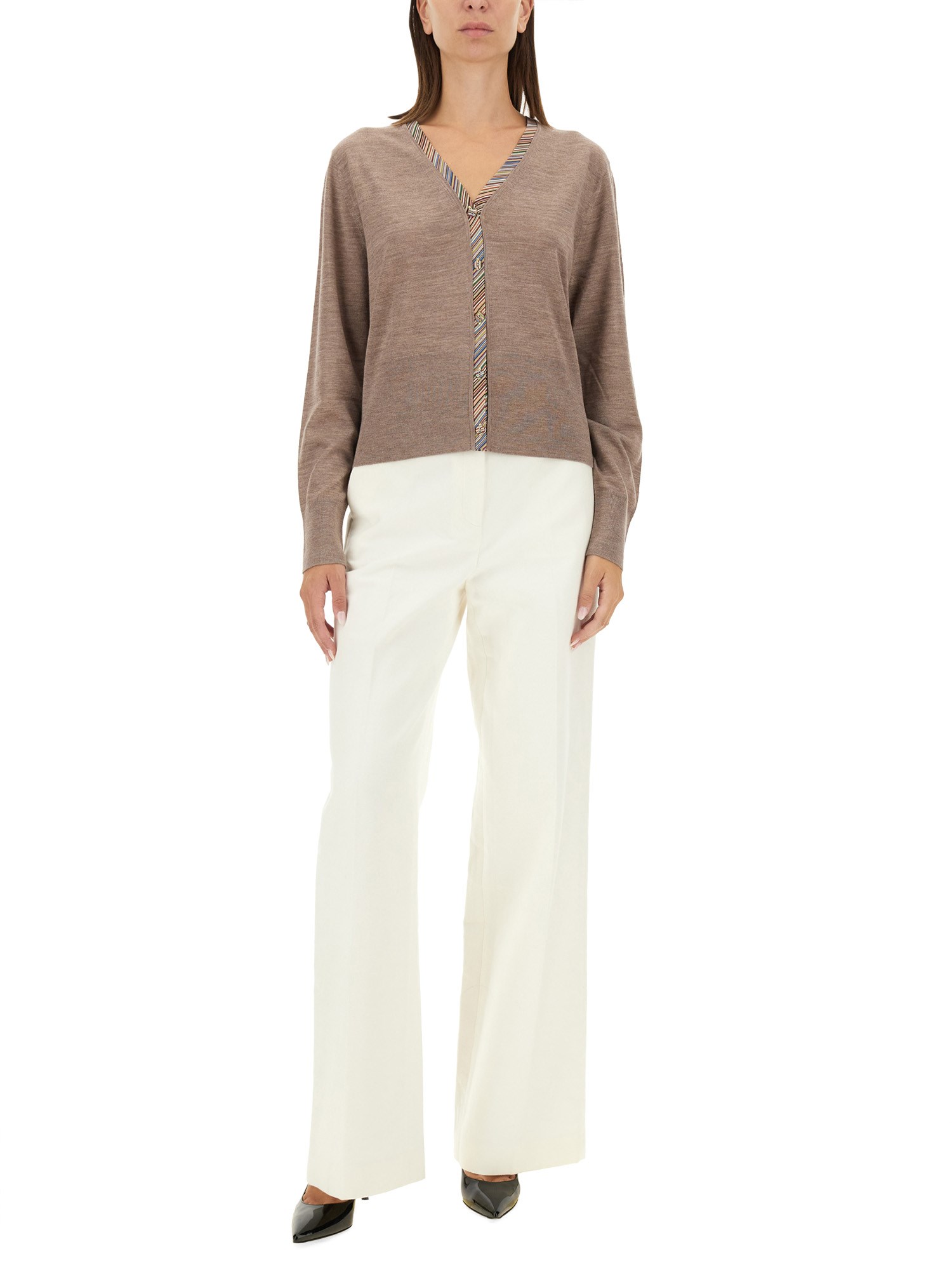 The V-neck cardigan from Paul Smith exemplifies sophisticated style and comfort, crafted from high-quality materials to ensure durability and a luxurious feel. Its classic design features a flattering V-neckline and a button-down front, making it a versatile addition to any wardrobe. Ideal for layering, this cardigan can be effortlessly paired with both casual and formal attire, showcasing the brand's commitment to timeless elegance and contemporary fashion.