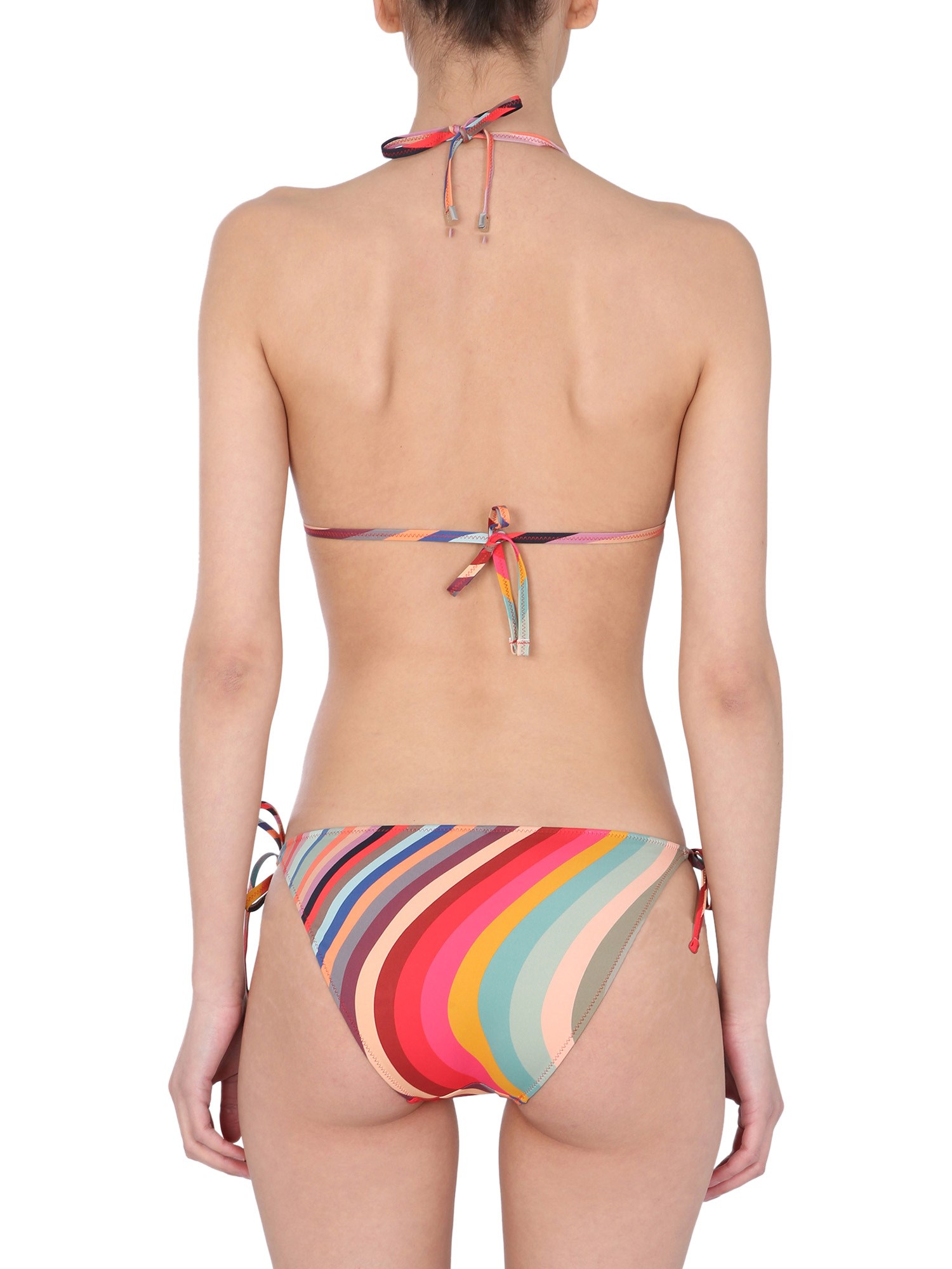 Fusing with endless poolside styles wears the bikini briefs from the house of Paul Smith. Crafted 100% from Lycra, the bikini features double side lacing that adds style to the overall look. It is adorned with an all-over multicolour stripes print. Slay poolside in the chic and comfy bikini and make an impression.