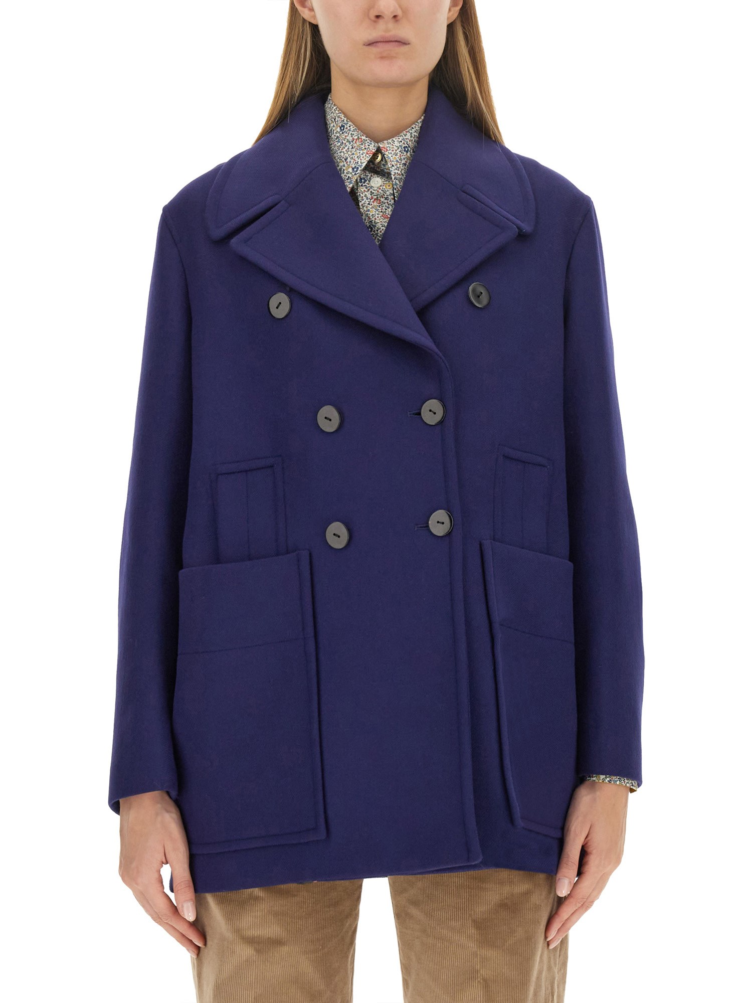DOUBLE-BREASTED WOOL SHORT COAT