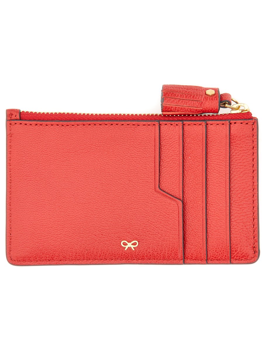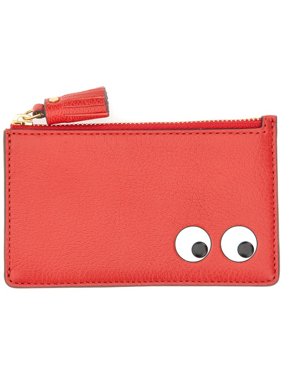 This red leather card holder from Anya Hindmarch is a must-have accessory for any fashion-forward individual. Featuring a playful eye print, it's perfect for adding a pop of personality to your everyday look. With enough space for your essential cards, it's both practical and stylish.
