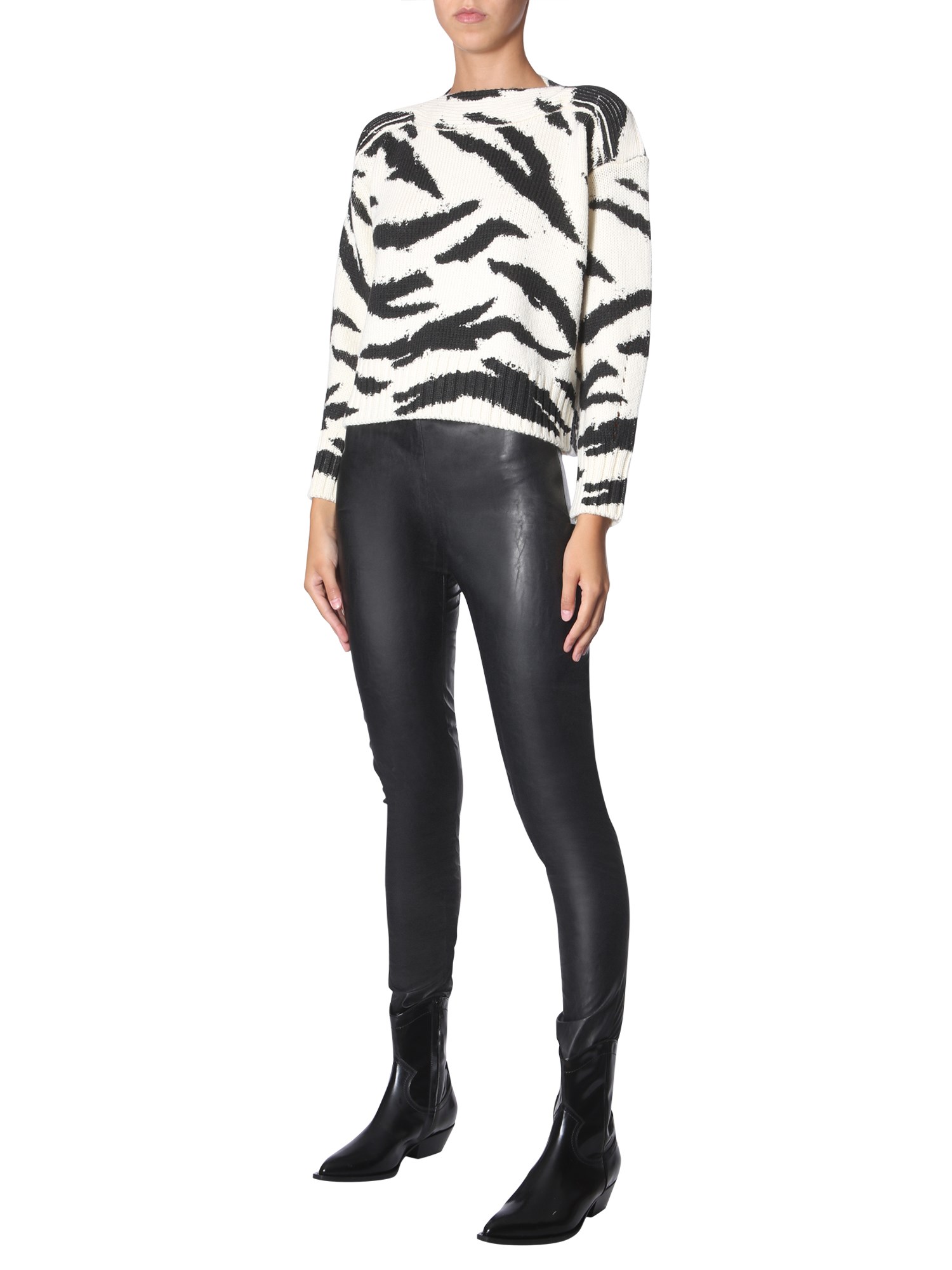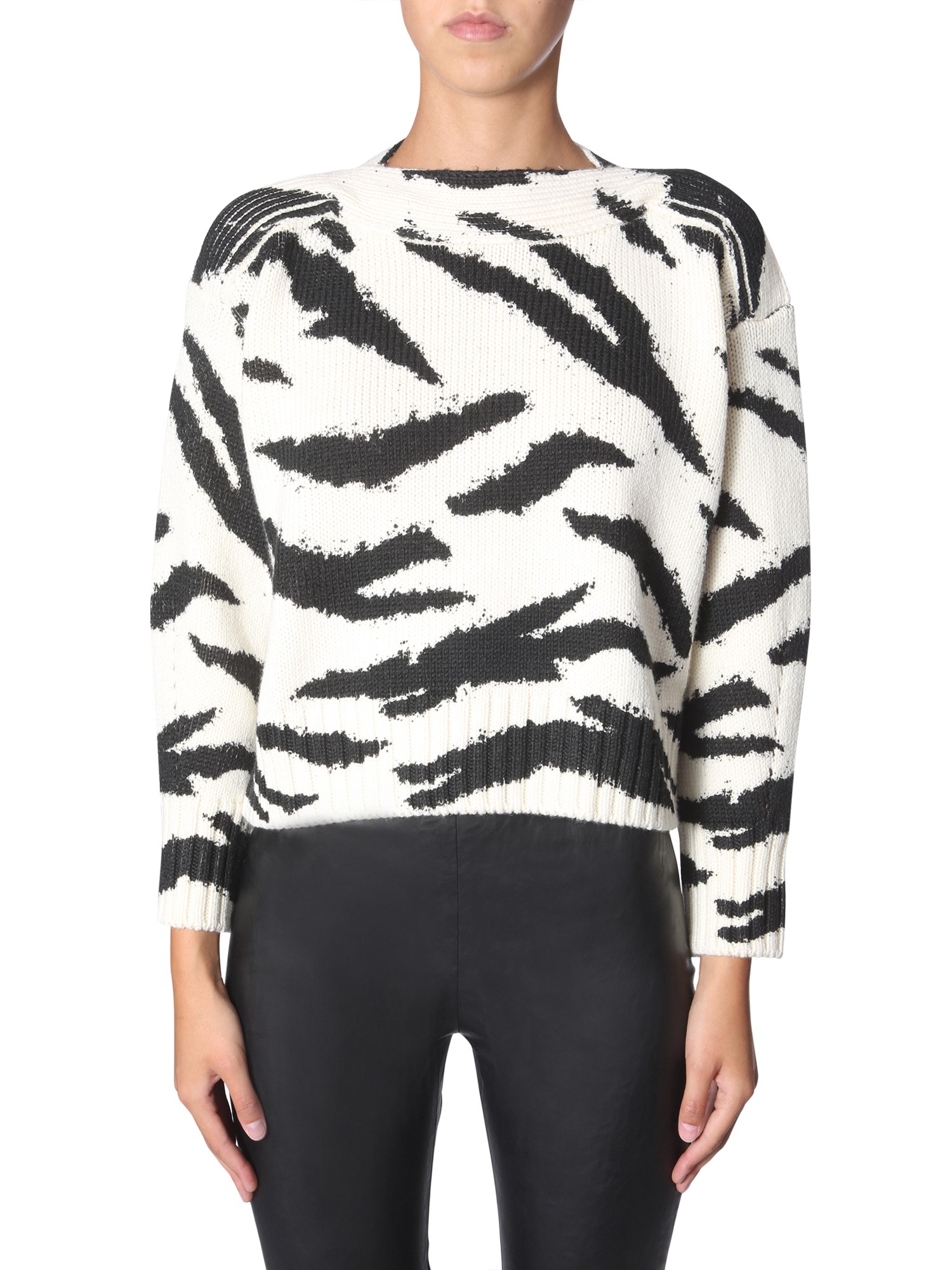 Bring out the holiday vibe with the tiger print shirt from Philosophy Di Lorenzo Serafini. This all-over printed sweater with crew neck is comfortable and breathable as it is made of pure wool. It is durable and can retain enough heat to keep you warm. The regular-fit sweater is apt for casual as well as formal occasions.