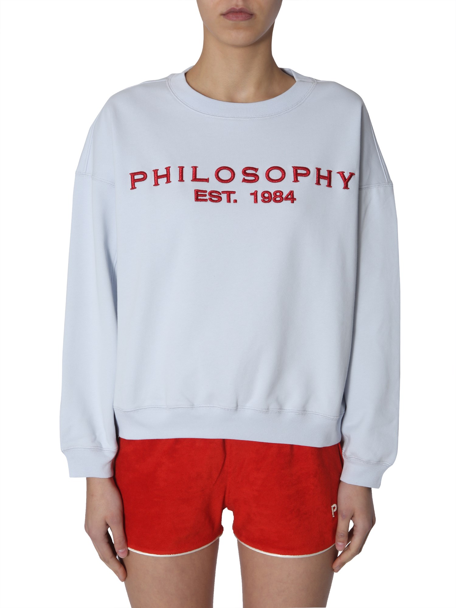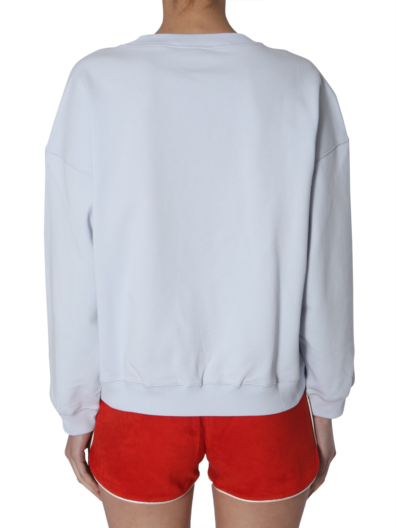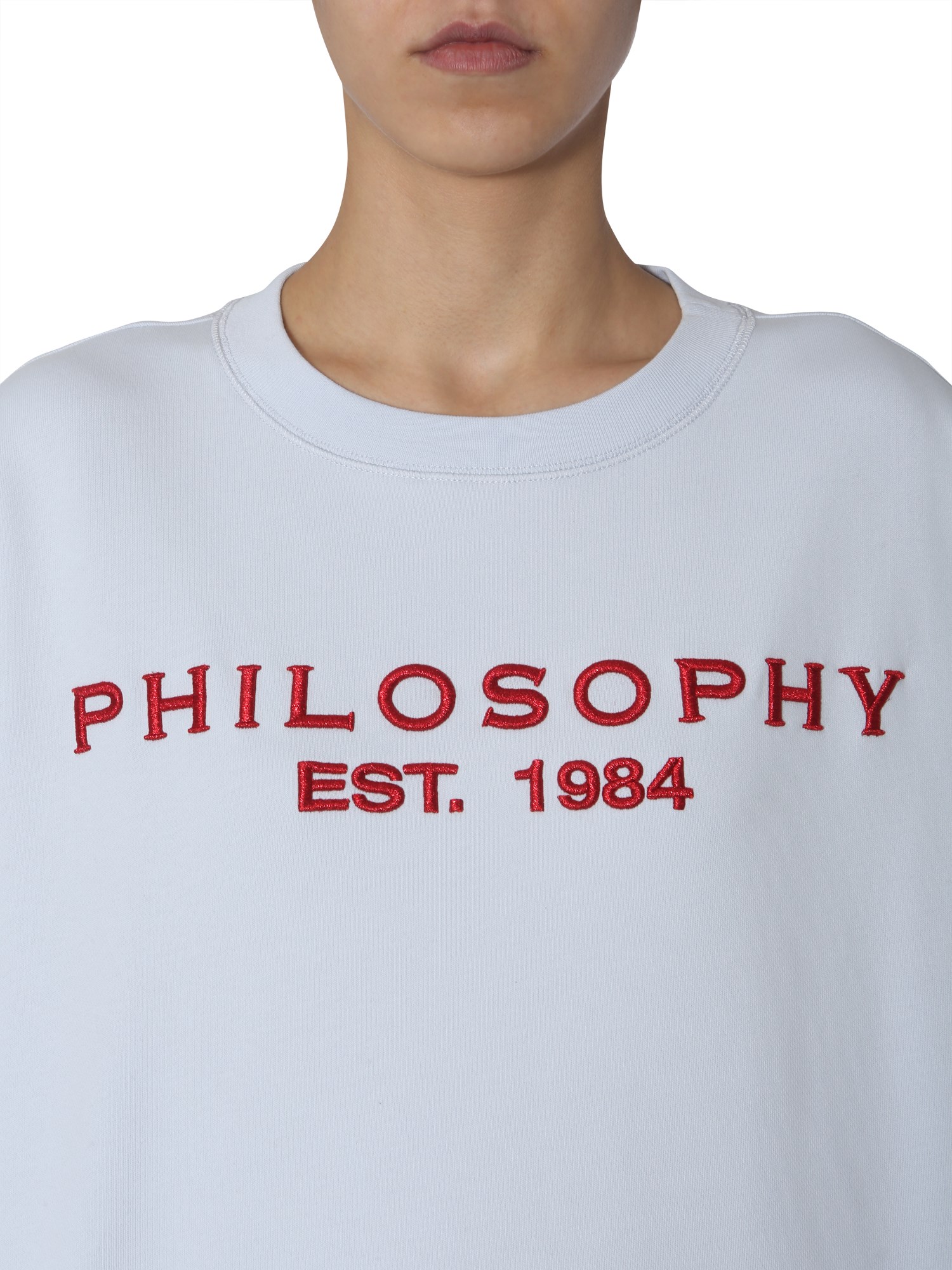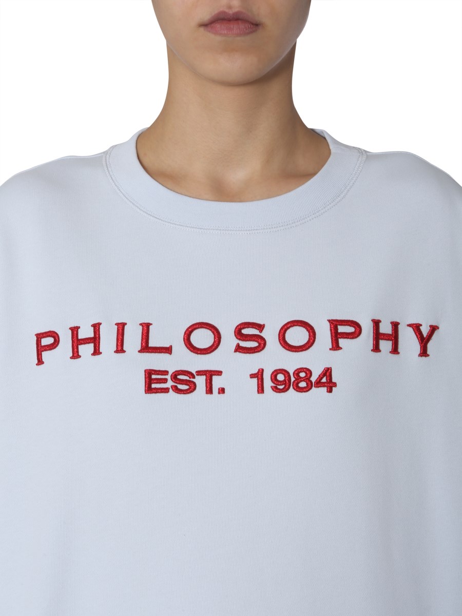 Complete your outfit by layering up this crew neck sweatshirt in white. It has ribbed neck, wrists and hem to ensure that you get the perfect fit. This oversize fit sweatshirt is made of 100% cotton and has a red printed logo on its front.