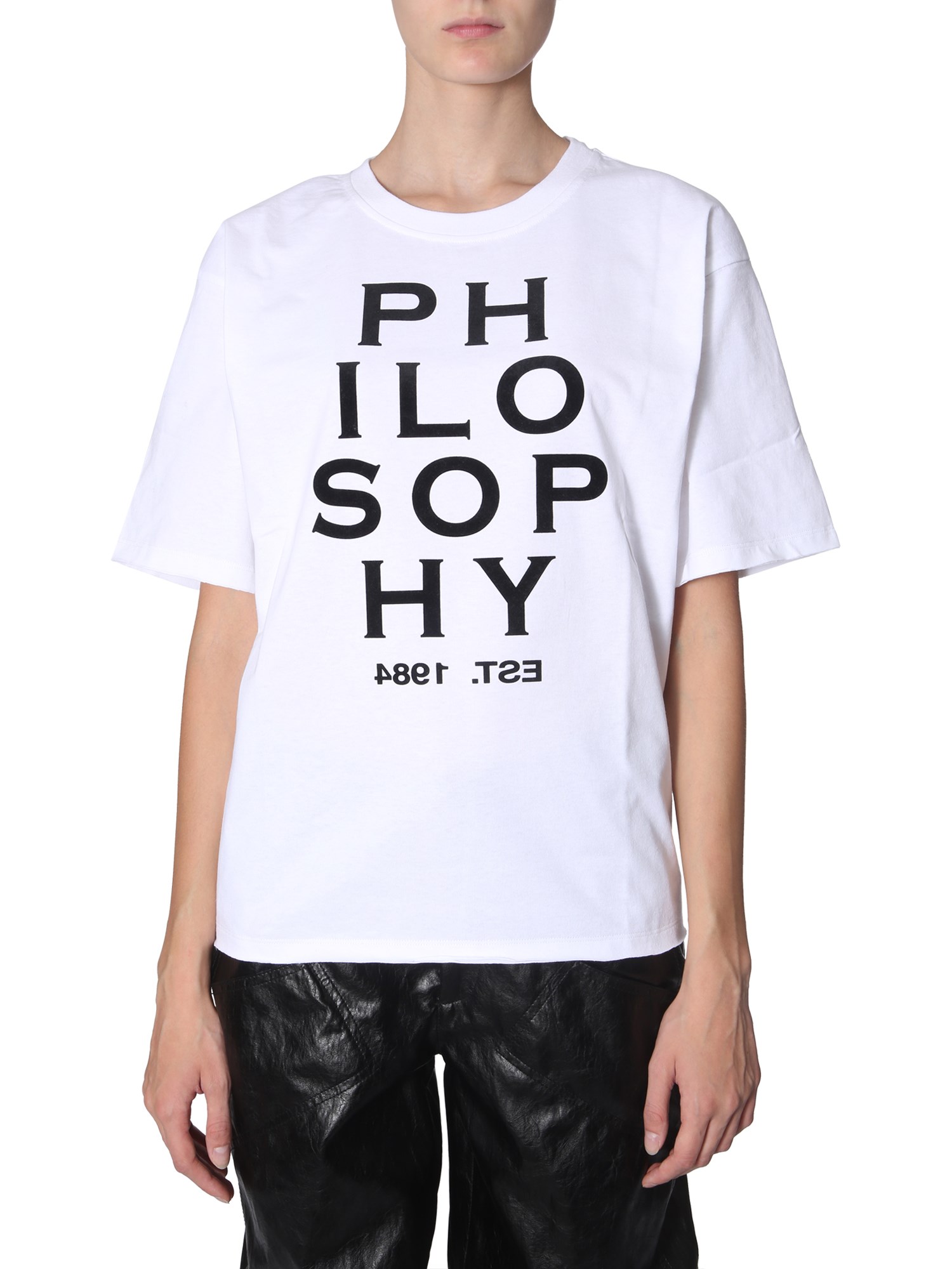 The round neck t-shirt from Philosophy Di Lorenzo Serafini is designed for those who love to look cool and stay comfortable. This basic T-shirt has a crew neck and attractive logo which makes it suitable to pair with any type of jeans or joggers. Made of 100% cotton, this apparel is breathable and feels soft on the skin.