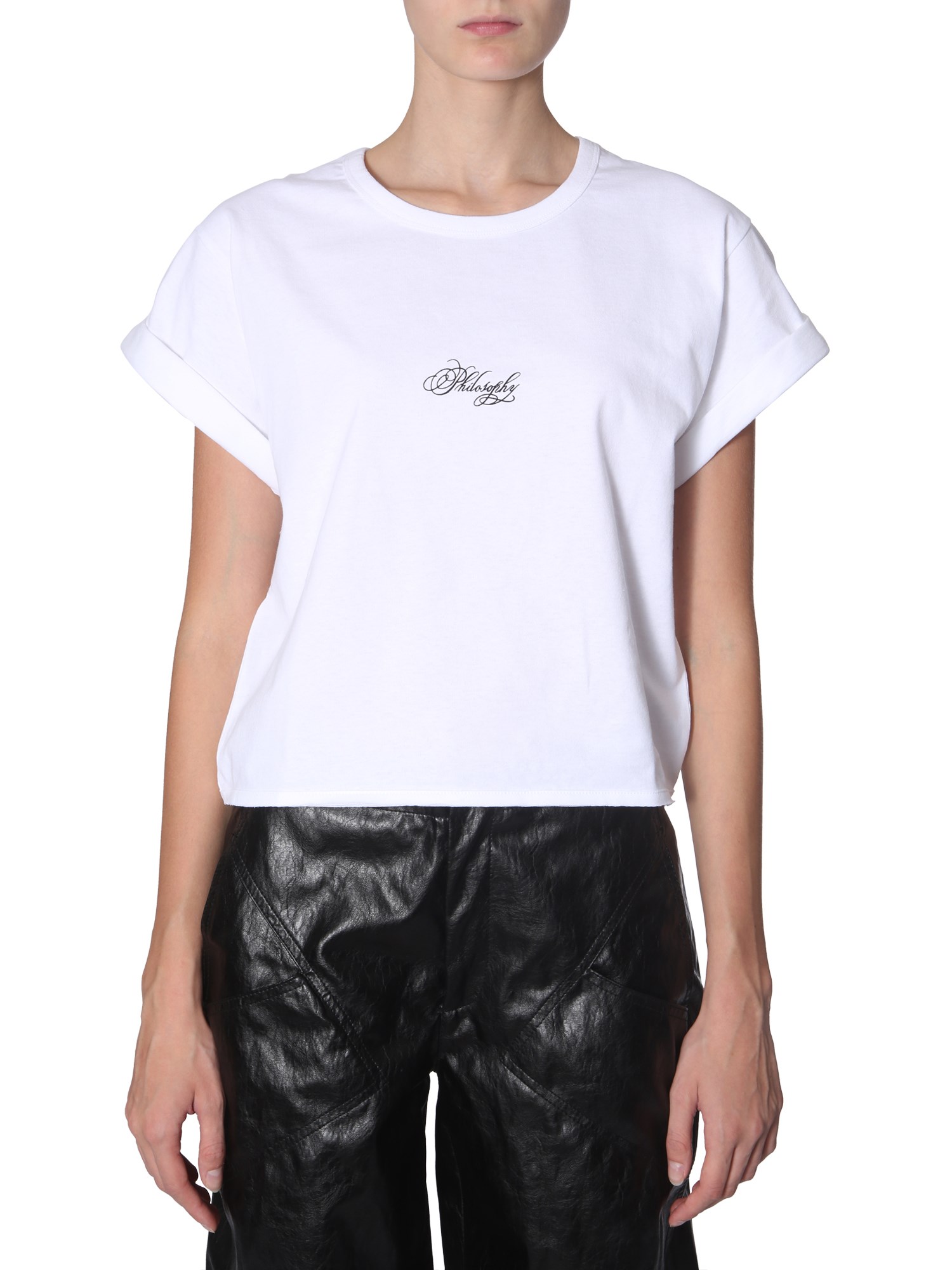 The cotton T-shirt by Philosophy Di Lorenzo Serafini is a great fit when you want to go out for a casual diner with your friends or family. Made of pure cotton, this regular fit tee is comfortable to wear throughout the day. This simple T-shirt with “philosophy” logo looks cool and can be matched with any pair of jeans and sneakers.