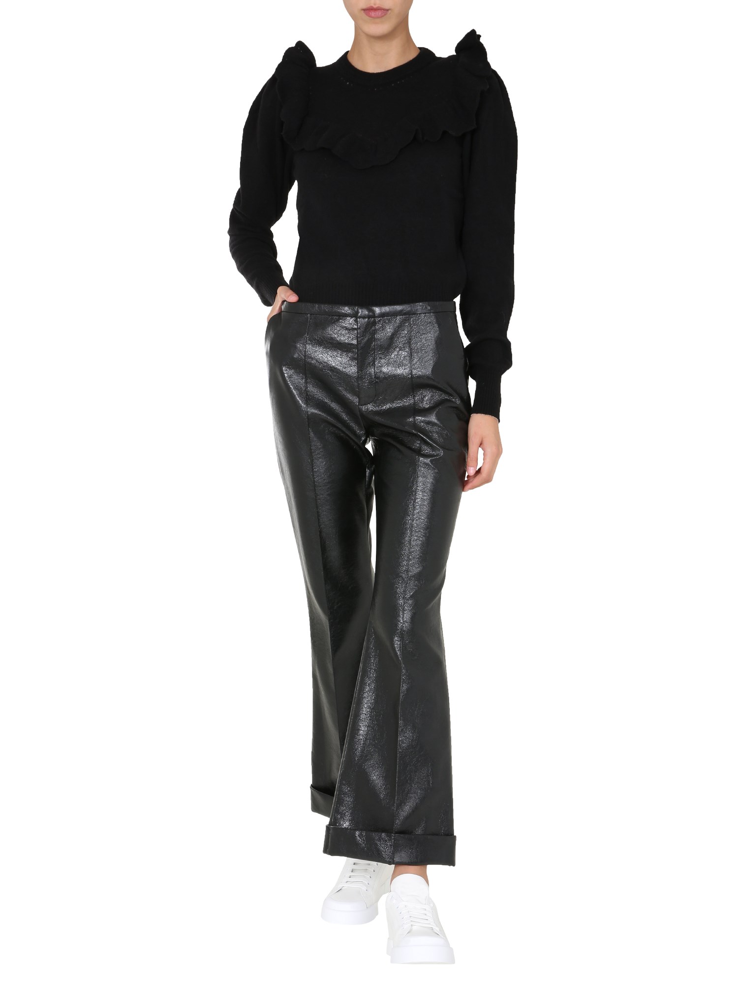 The Faux Leather Pants by Philosophy Di Lorenzo Serafini is made using high-quality polyester and polyurethane. These stylish pants feature two side pockets. For a comfortable & relaxed fit, these pants come with a zip and hook closure. It also has a bottom with a cuff.