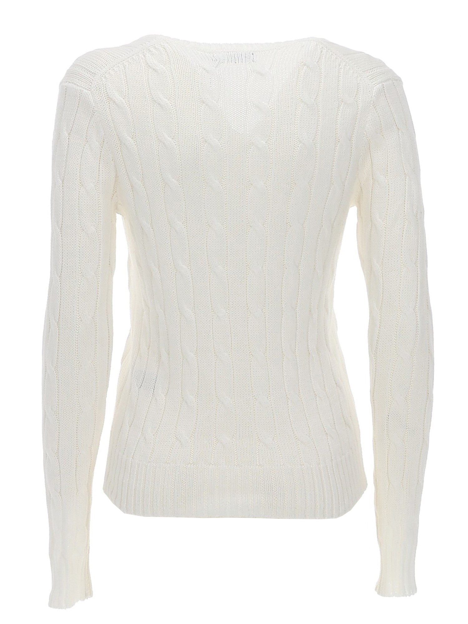COTTON CABLE KNIT SWEATER WITH LOGO AND V-NECKLINE