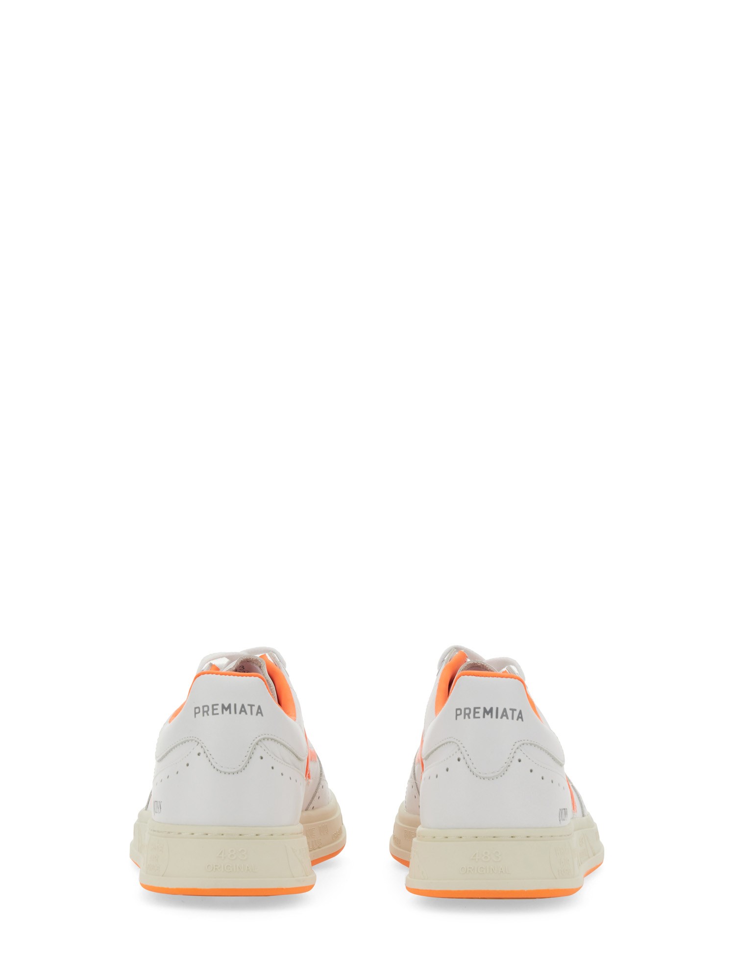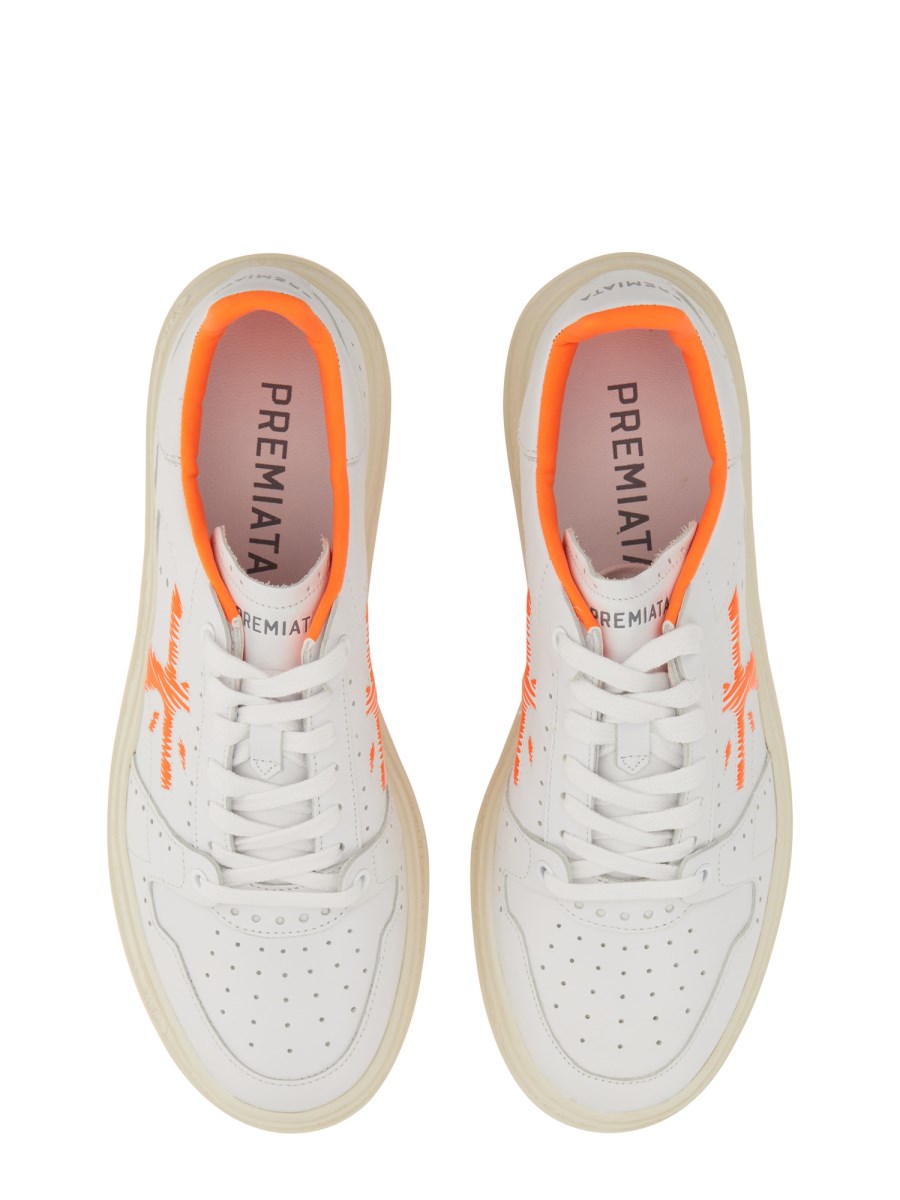 The white sneakers from Premiata are a great option for those who are looking for a clean and stylish option for the upcoming winter season. The lace up closure gives a great look to the shoe, while the rubber sole provides a sturdy and durable option for those who need to walk on the snowy sidewalks.