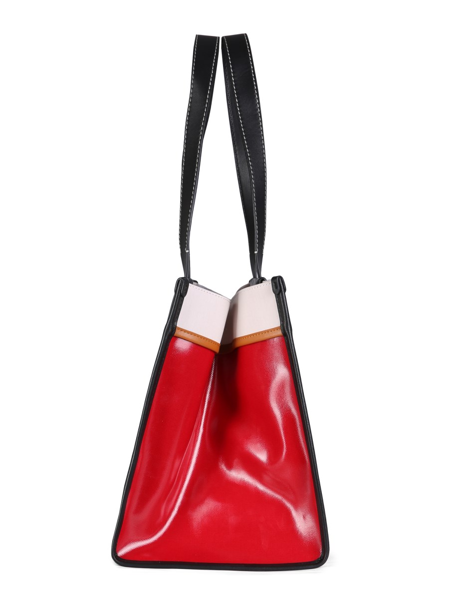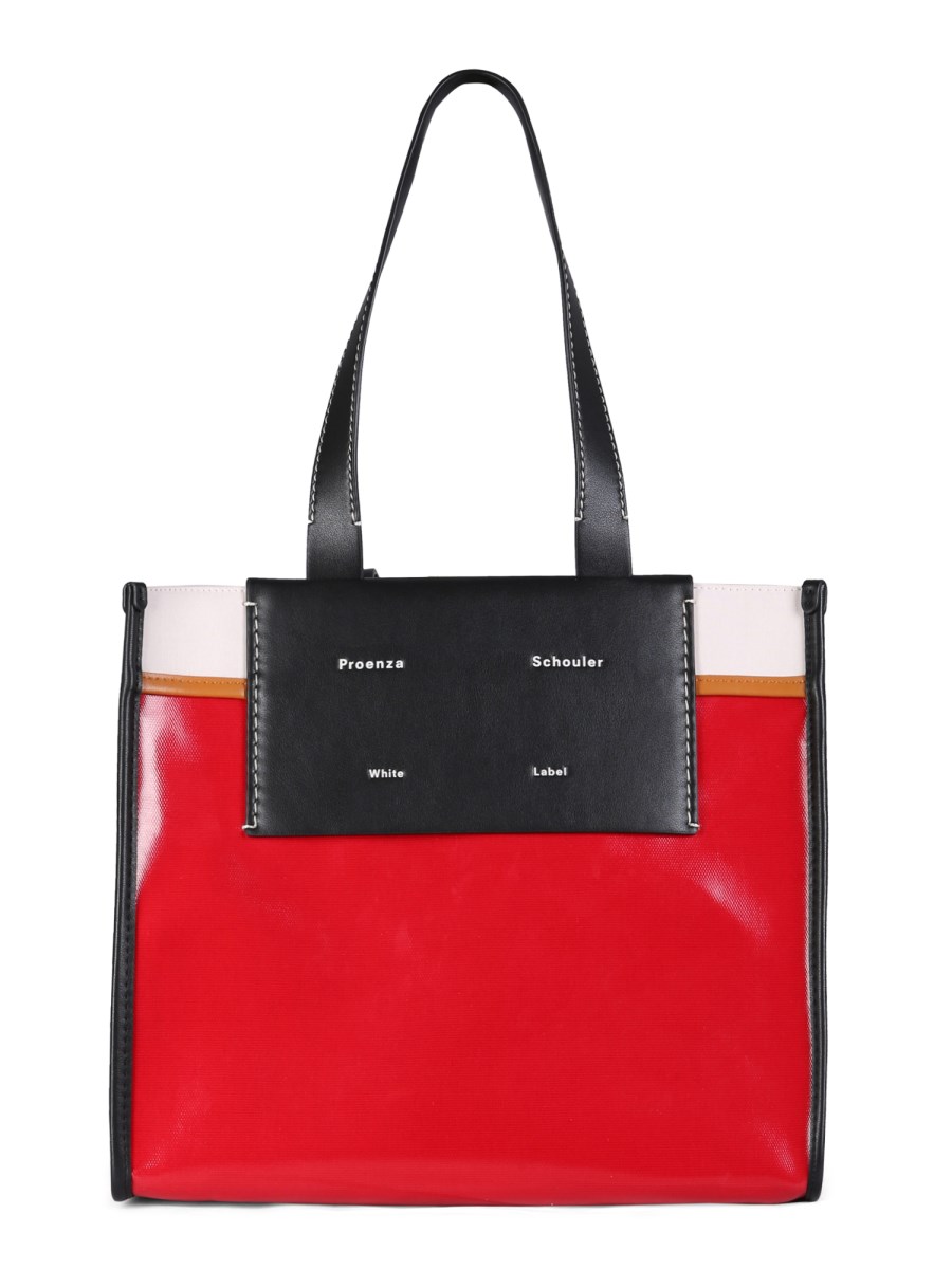 The Morris coated canvas tote bag from Proenza Schoulder White Label is a great everyday bag. It is the perfect size for carrying groceries, books, or a lunch to work. It has a short strap and a top handle so you can easily carry it to and from your car. The tote has a zipper closure so you can keep everything secure and safe inside.