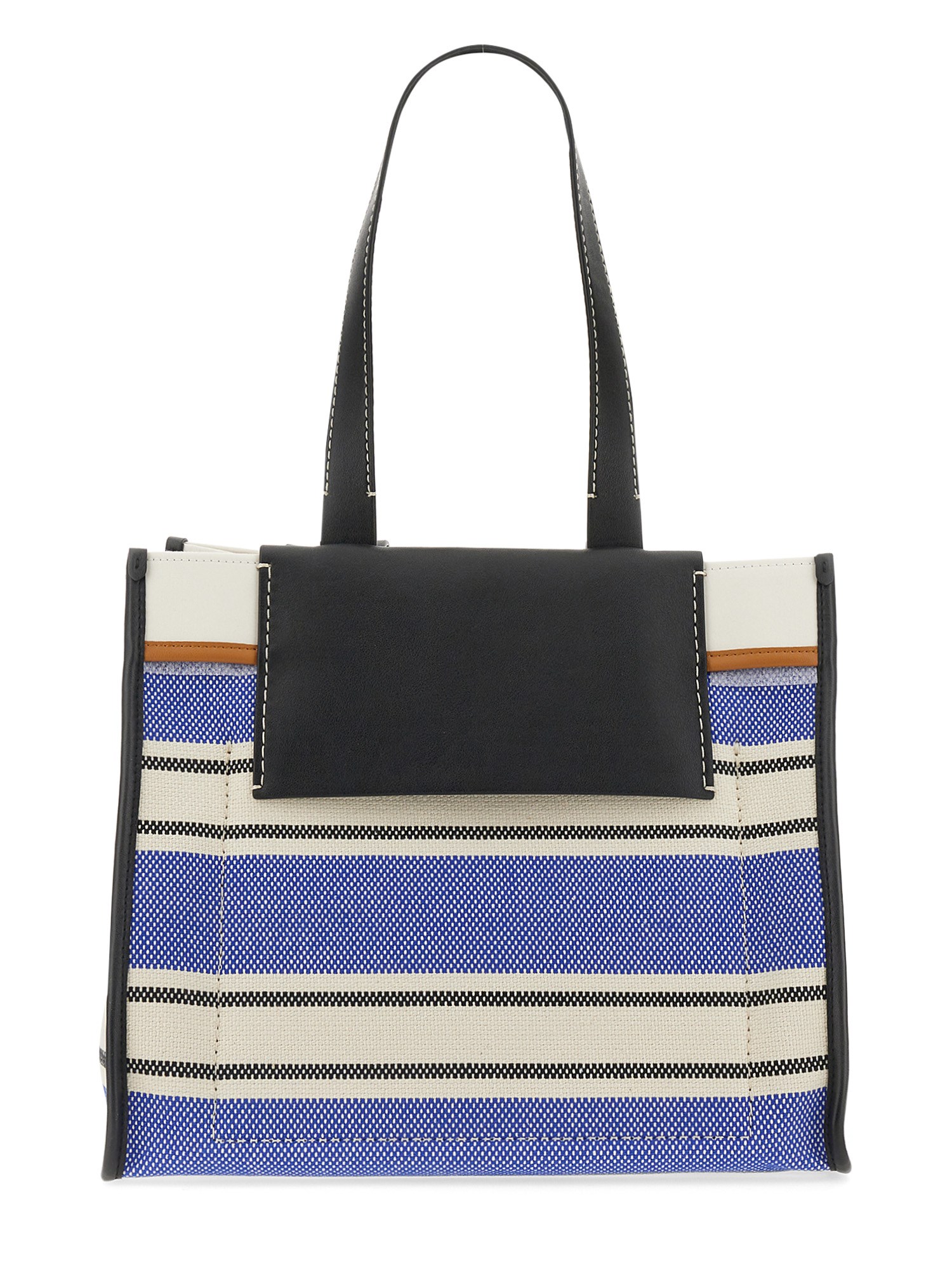 - UNLINED INTERIOR WITH ONE ZIPPER POCKET AND ONE FLAT POCKET