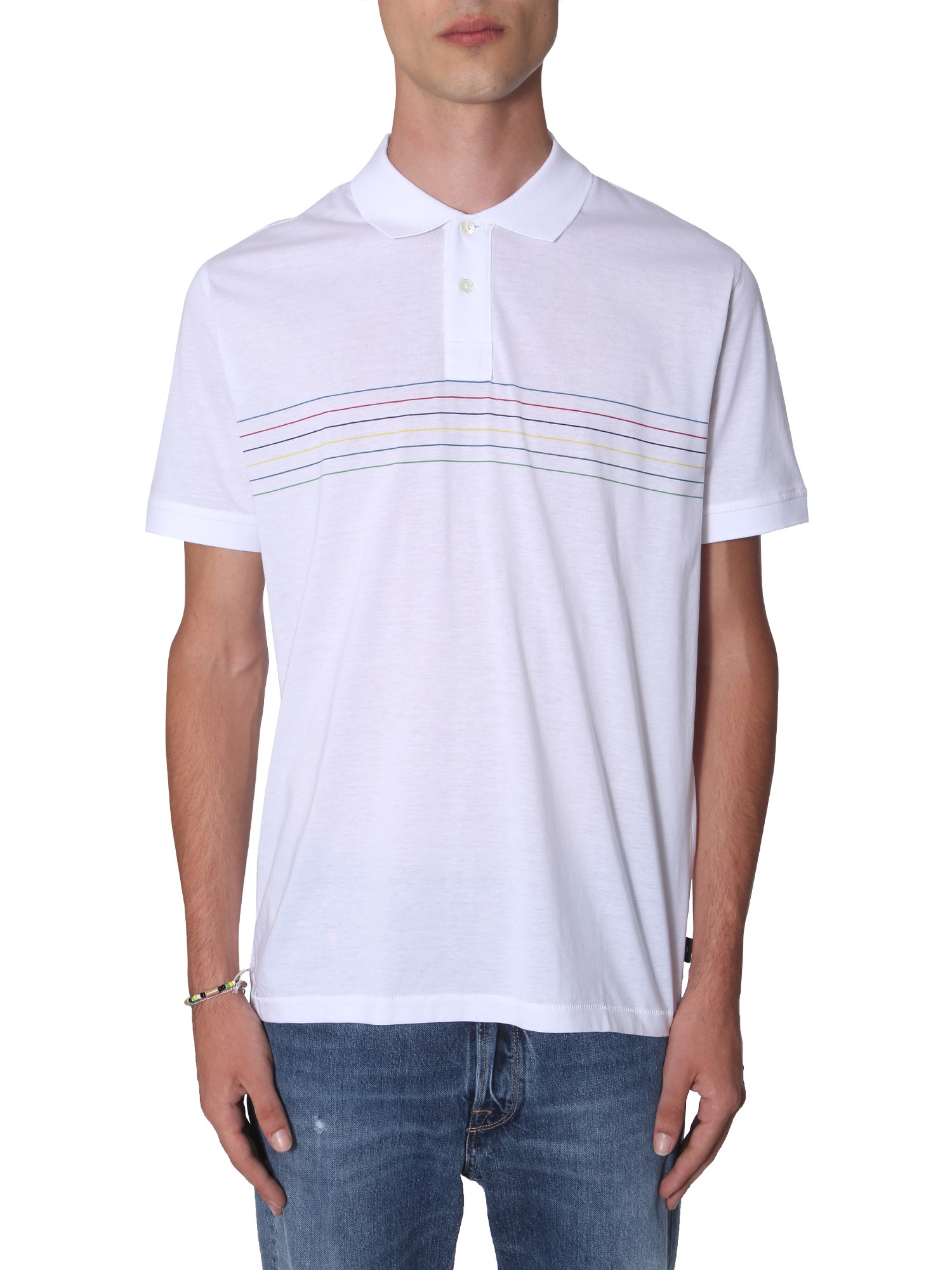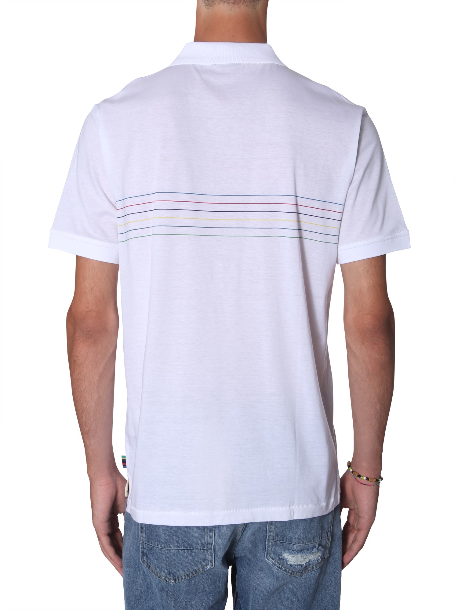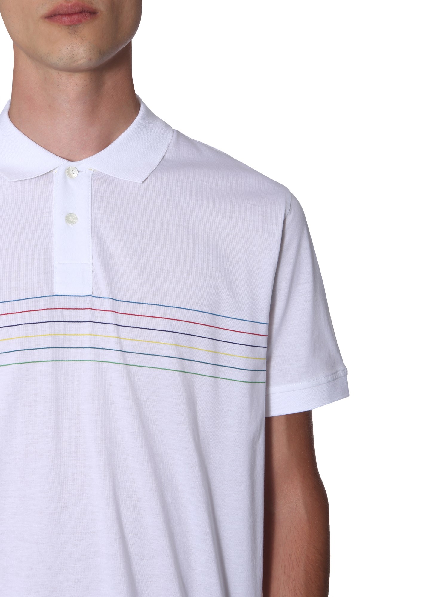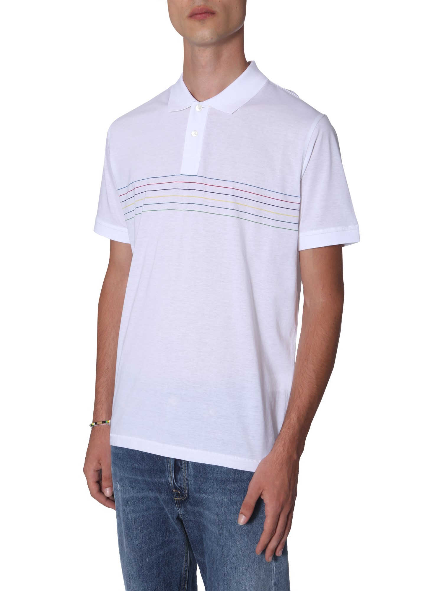 Whether you’re getting ready for a golf game or just meeting your friends, this cotton jersey polo shirt from PS by Paul Smith will be perfect for both occasions. It is made with a classic collar and two buttons opening. The multicolour stripe detailing on the front perfectly matches with its light colour scheme. You can wear it with a pair of non-formal pants and sneakers.