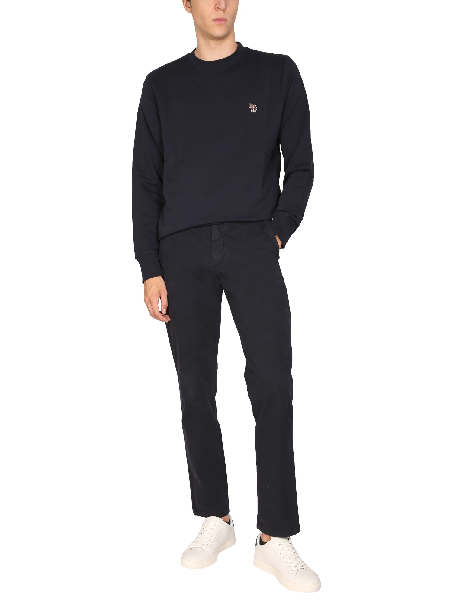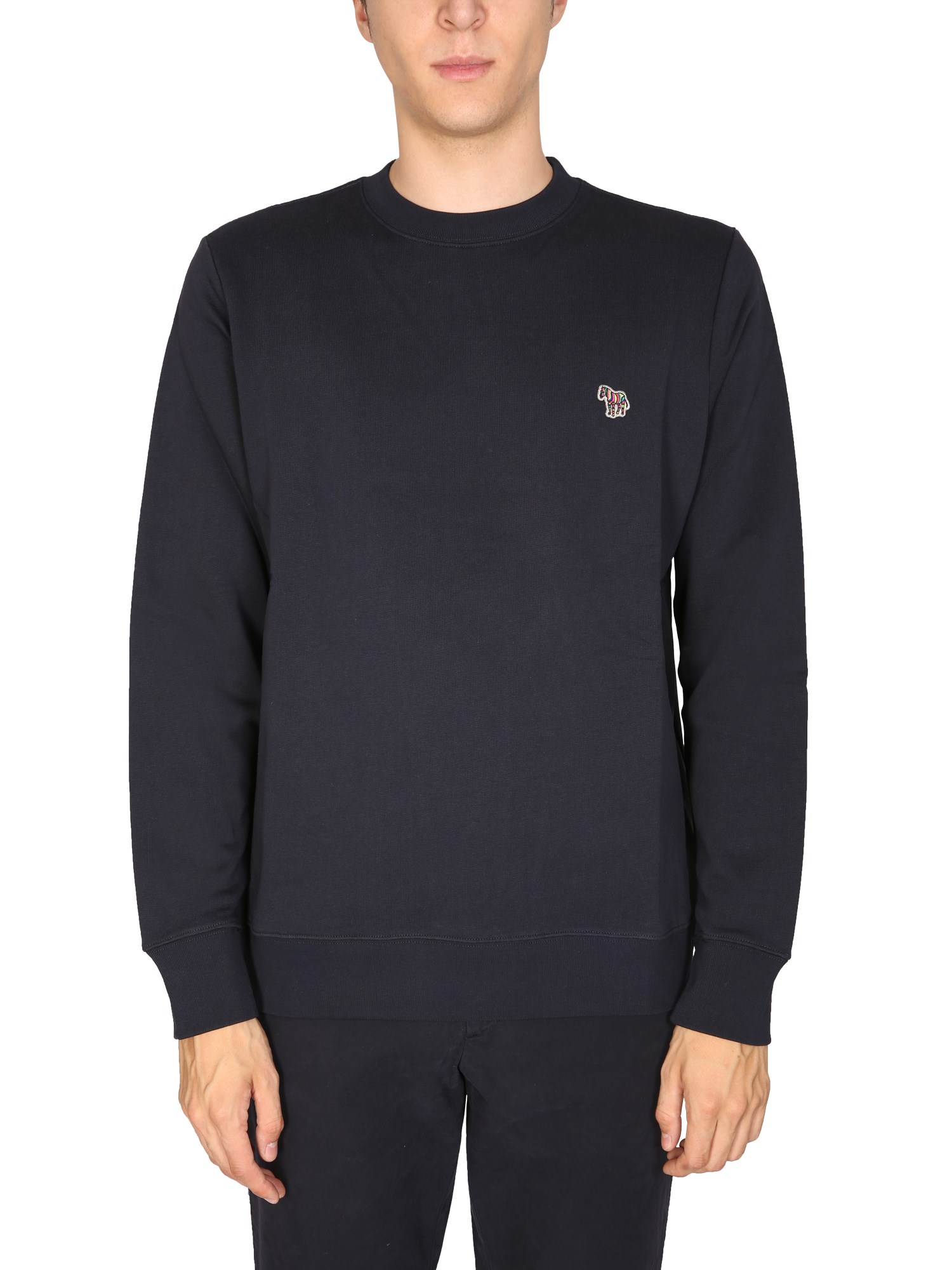 A thick cotton sweatshirt from PS by Paul Smith that's light and soft to the touch. It has a zebra chest patch on the front, which makes it stand out. The sweatshirt is made of a cotton material that is soft and comfortable. The zebra chest patch is on the front of the sweatshirt, making it a unique and fashionable piece.