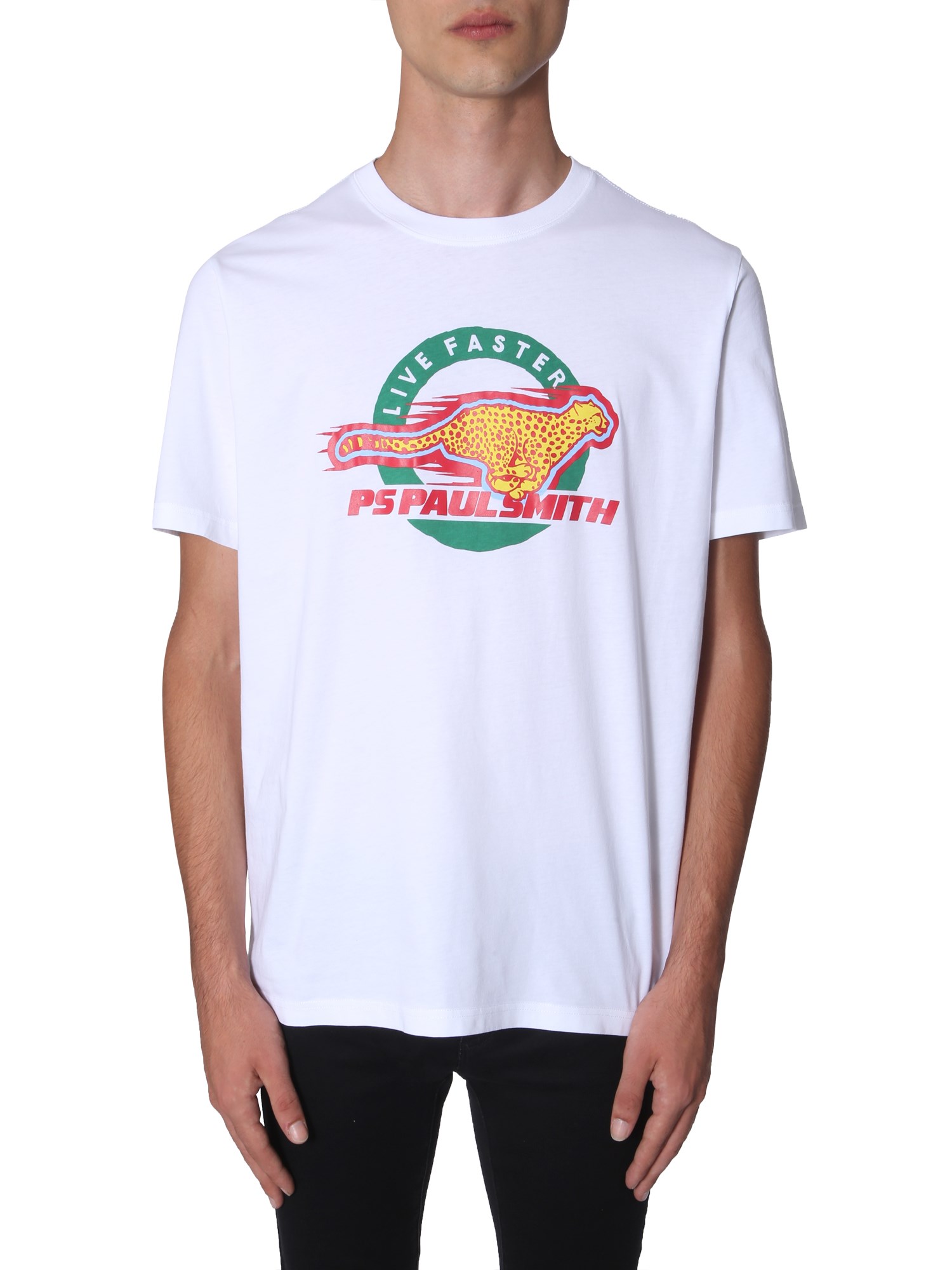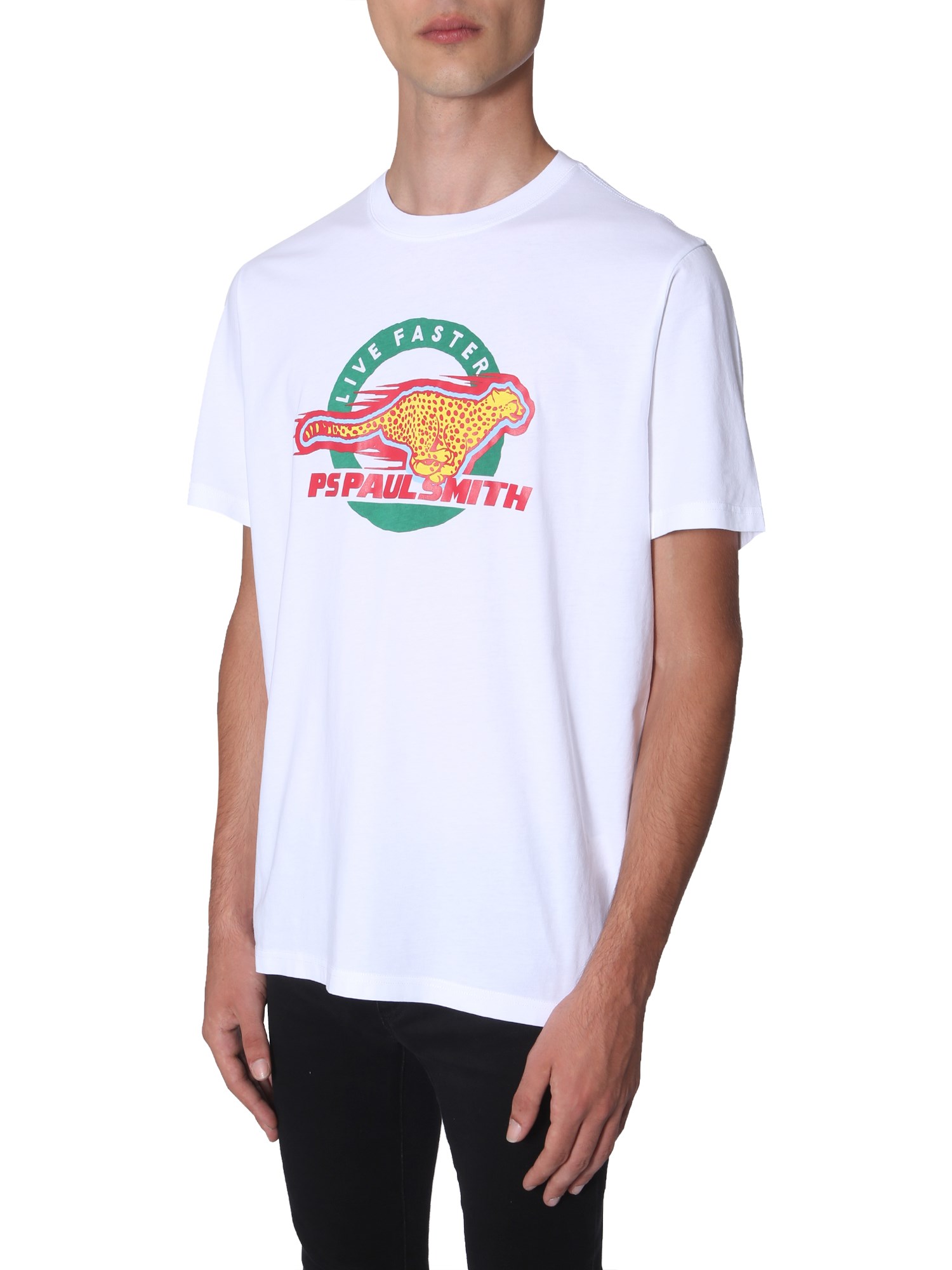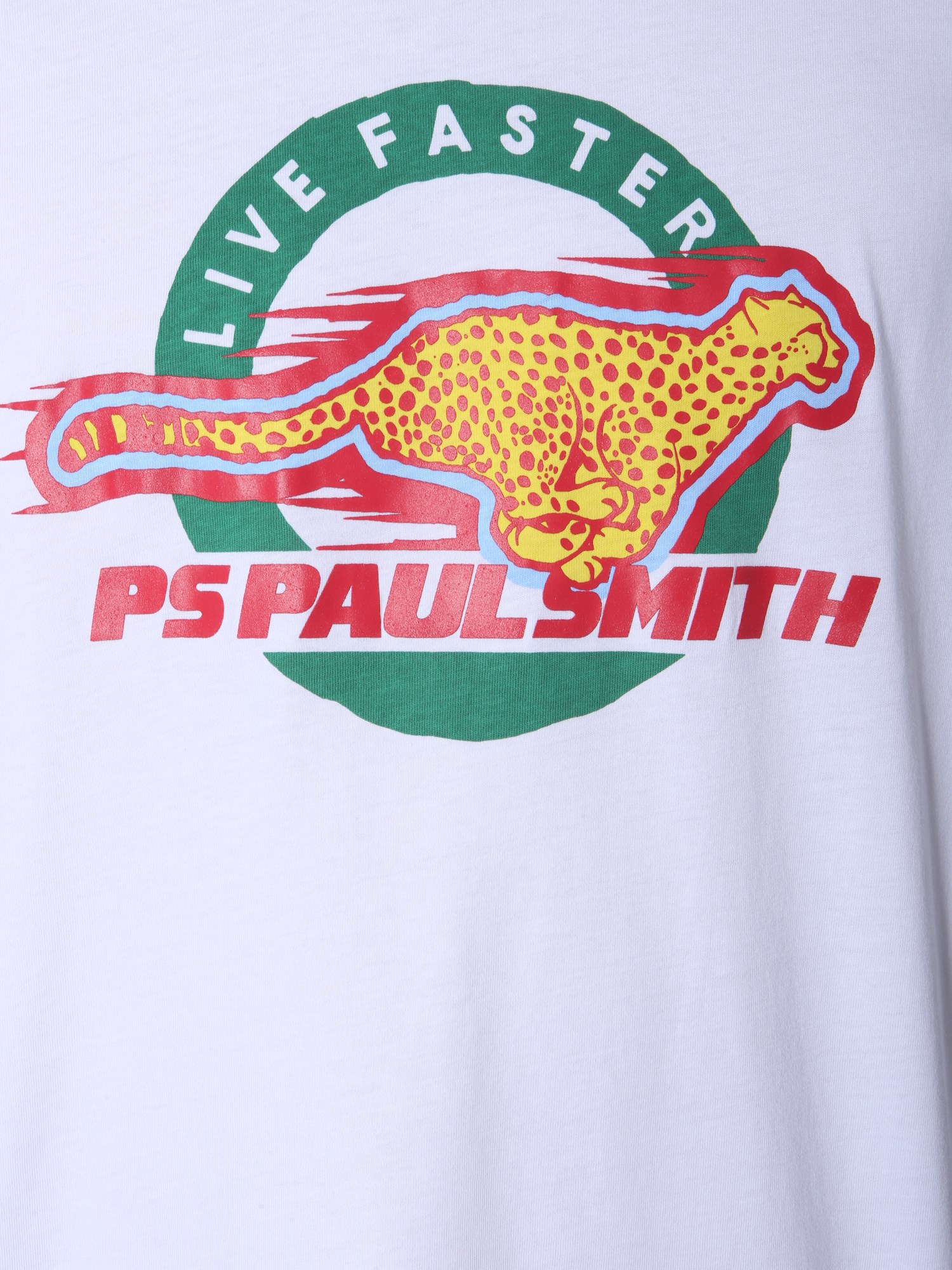 Look good in summer season when you add this regular fit T-shirt from PS by Paul Smith to your wardrobe. The T-shirt is made using 100% cotton and feels soft against your skin. The light colour scheme of this shirt lets you layer it under a denim jacket in winter. You can pair it with white sneakers and cargo pants.