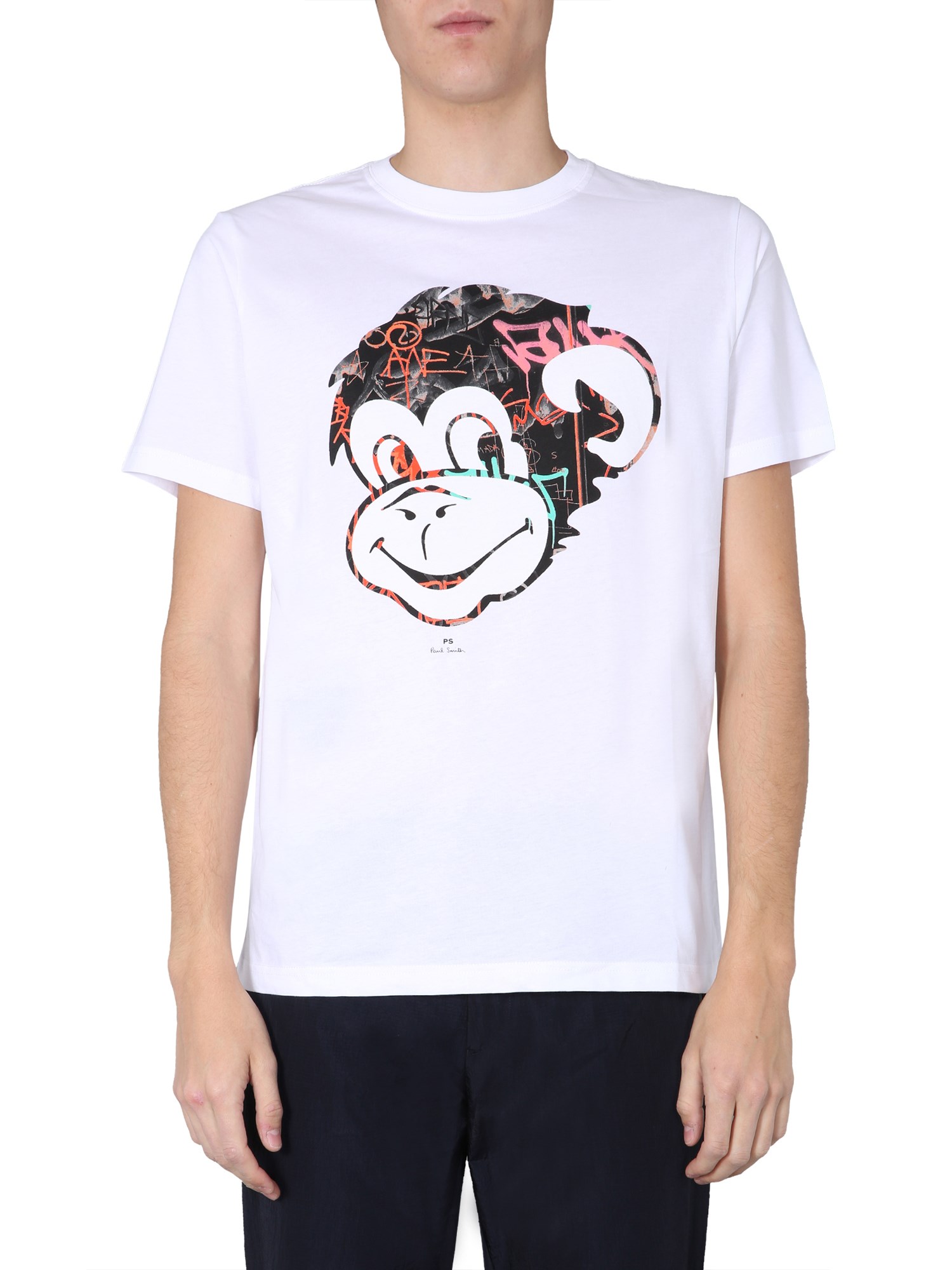 Stay casual yet stylish wearing this cotton T-shirt with a monkey print designed by PS by Paul Smith. It has a round neck, short sleeves, straight hemline and a regular form for a comfortable fit all day long. You can pair up this T-shirt with any type of lower and shoes.