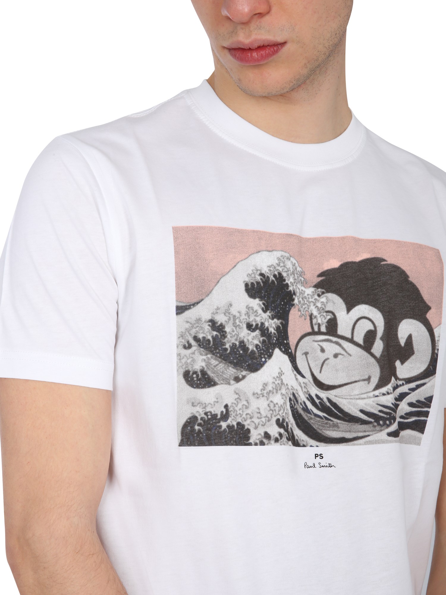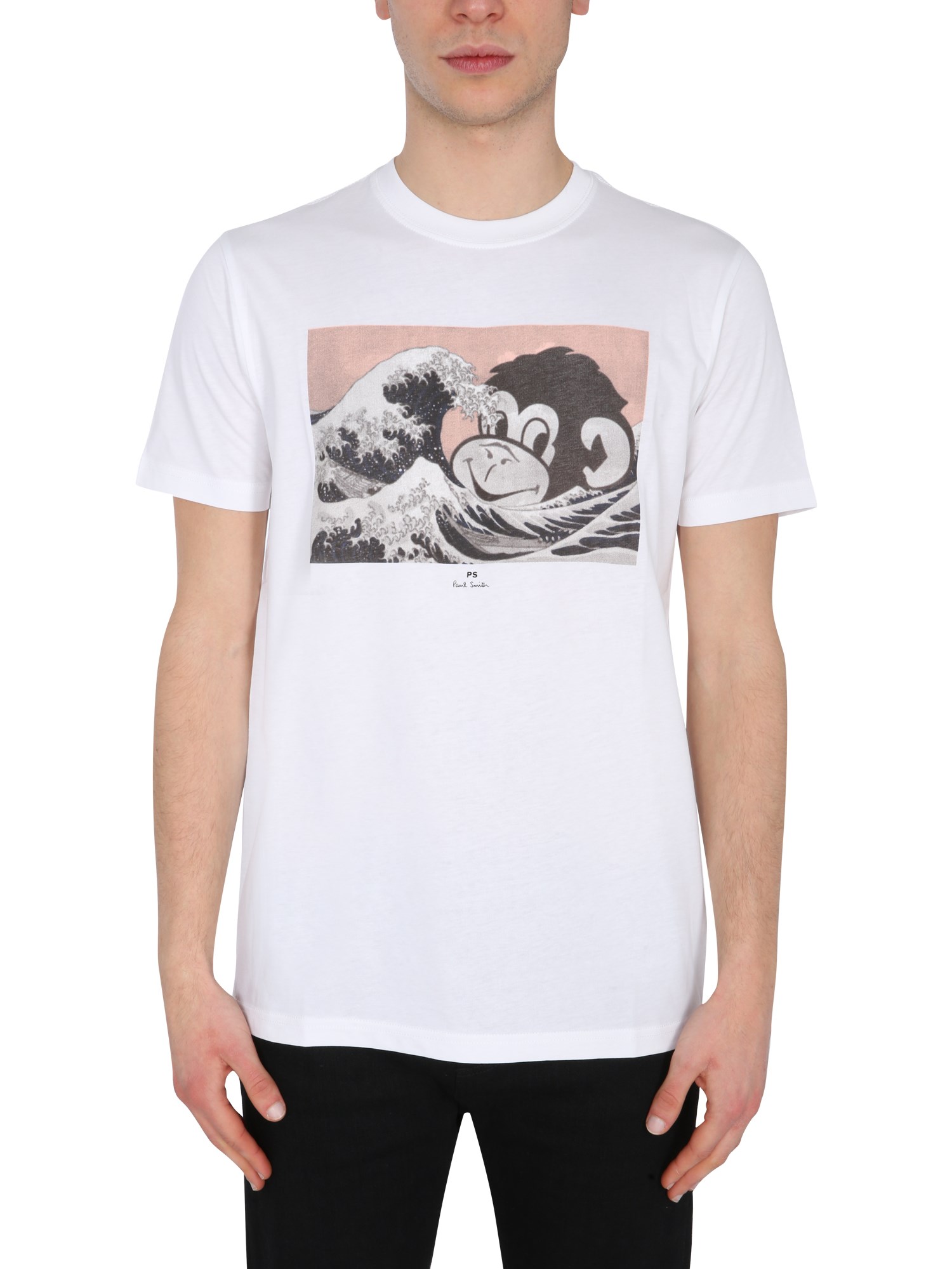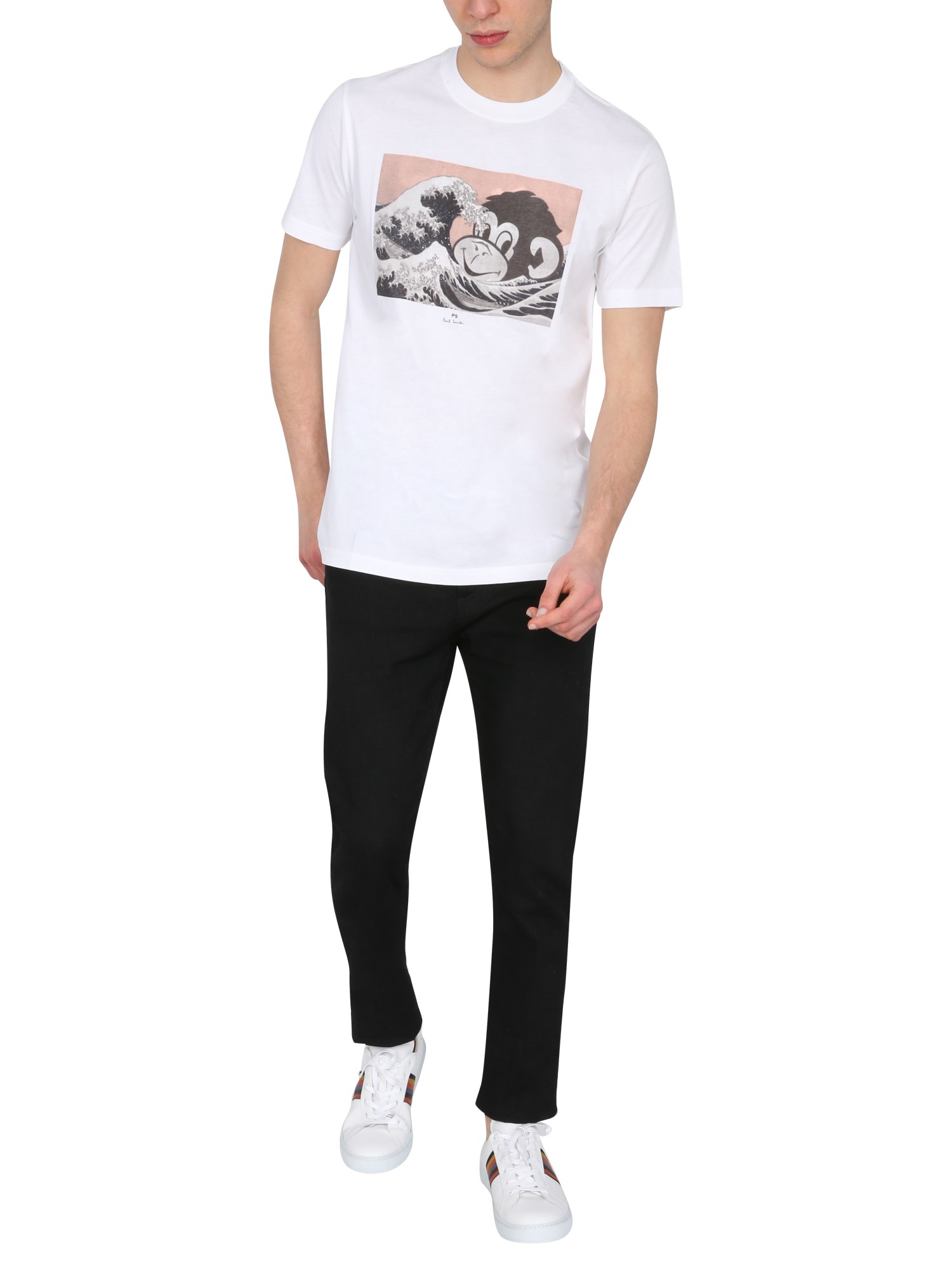 Soft and comfortable, the T-Shirt from PS by Paul Smith is one you'll live in all season long. Layer it under your favourite button-down shirt or jacket. It features a crew neck design, short sleeves, and a straight hem. Crafted from a durable cotton-blend fabric, this T-shirt has a slim fit and a printed front.