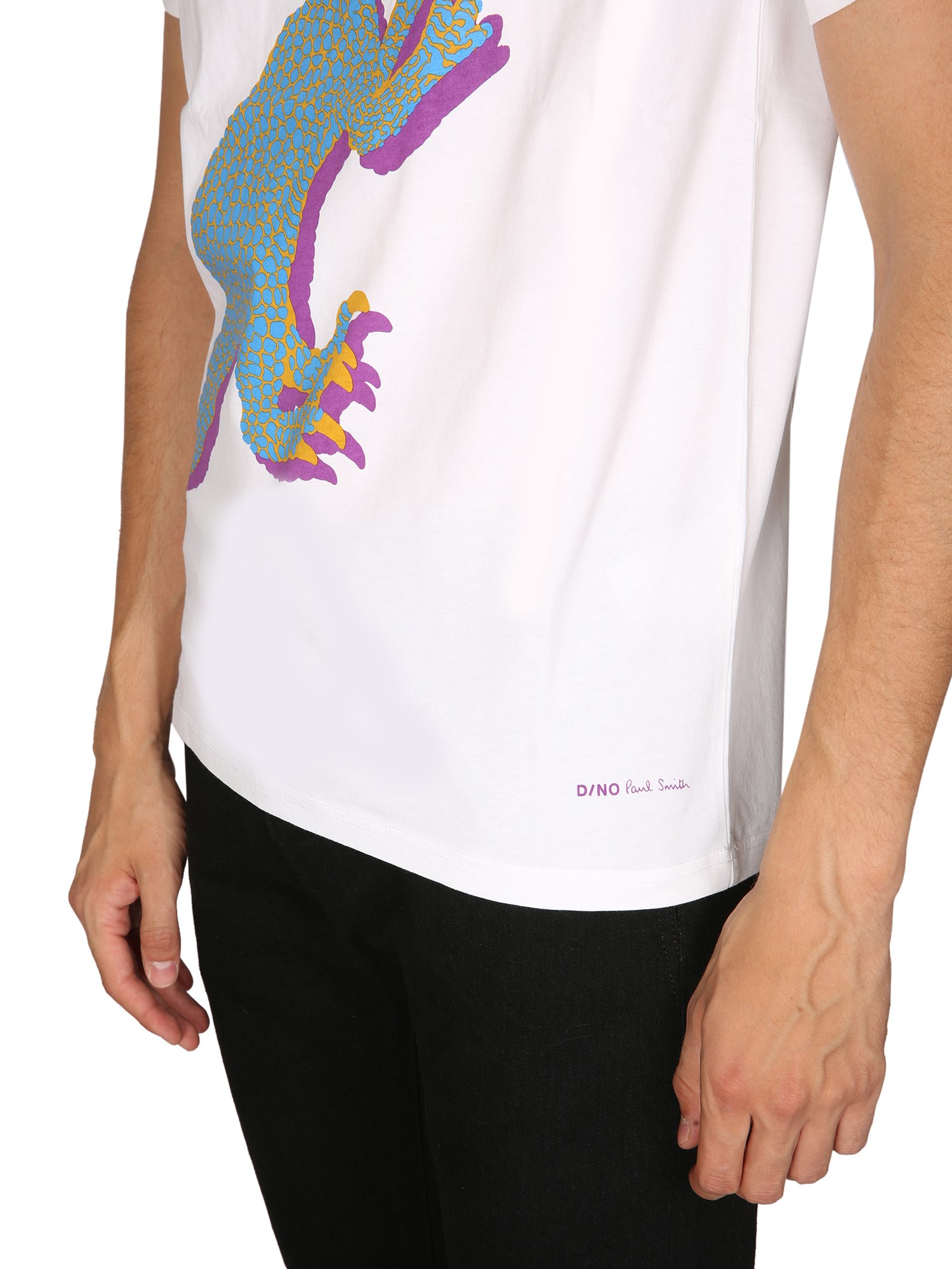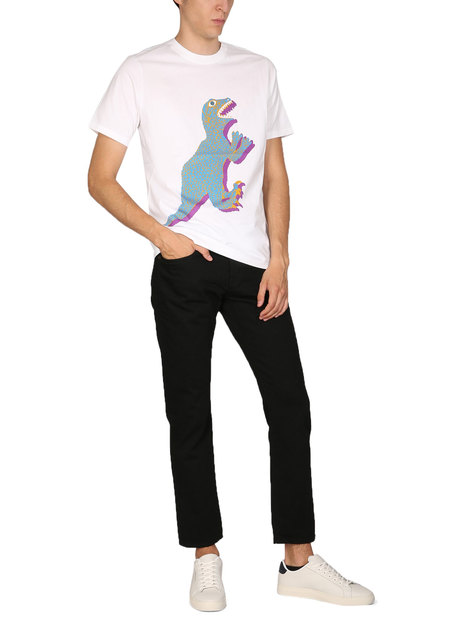 The “Dino” T-shirt from PS by Paul Smith, a true cotton jersey, is an effortless style and comfort in one. The tee has a crew neckline, short sleeves, and a straight hem. It has a regular fit that hugs the body, is made of 100% cotton, is machine-washable, and is a wardrobe essential.