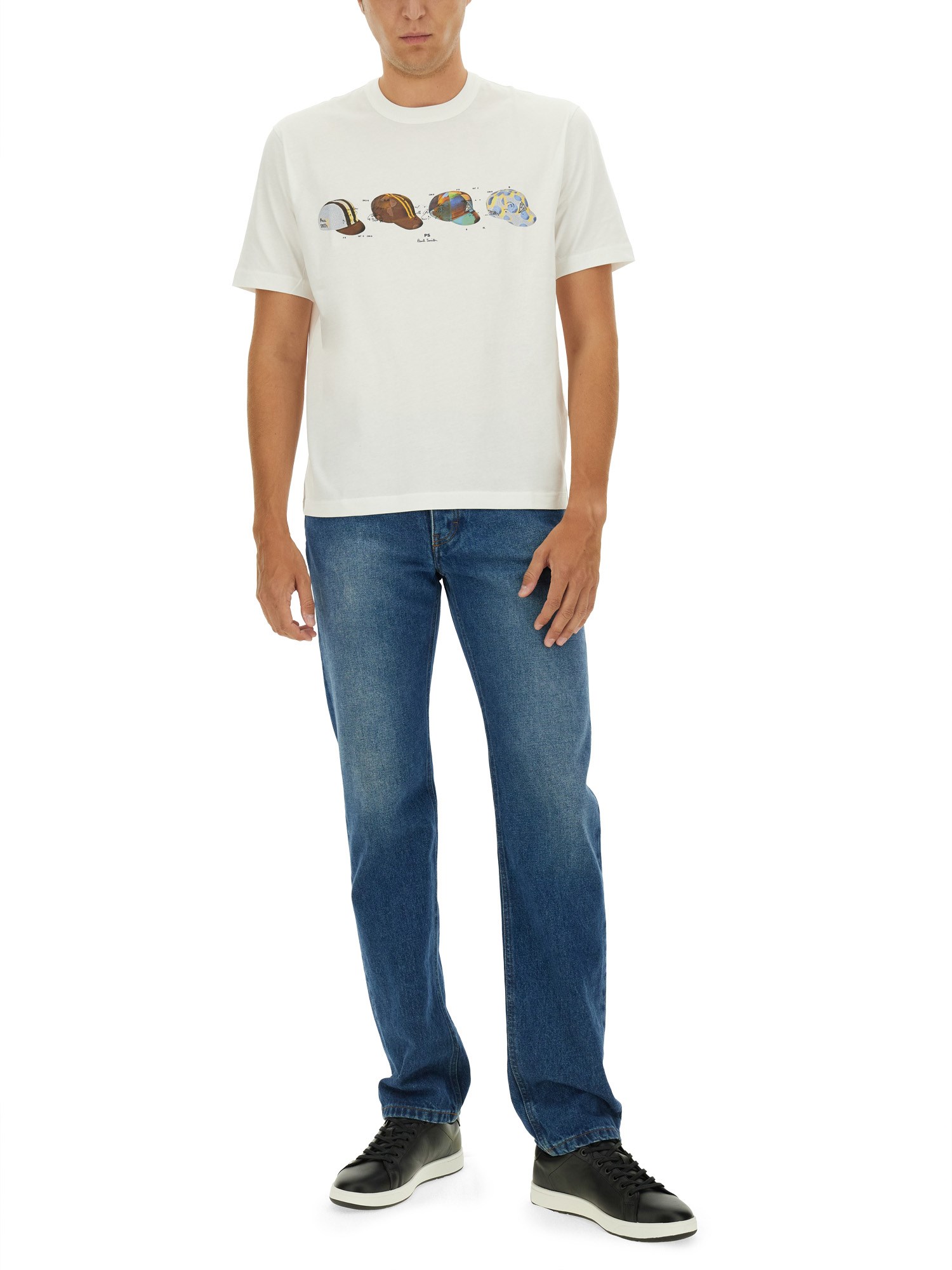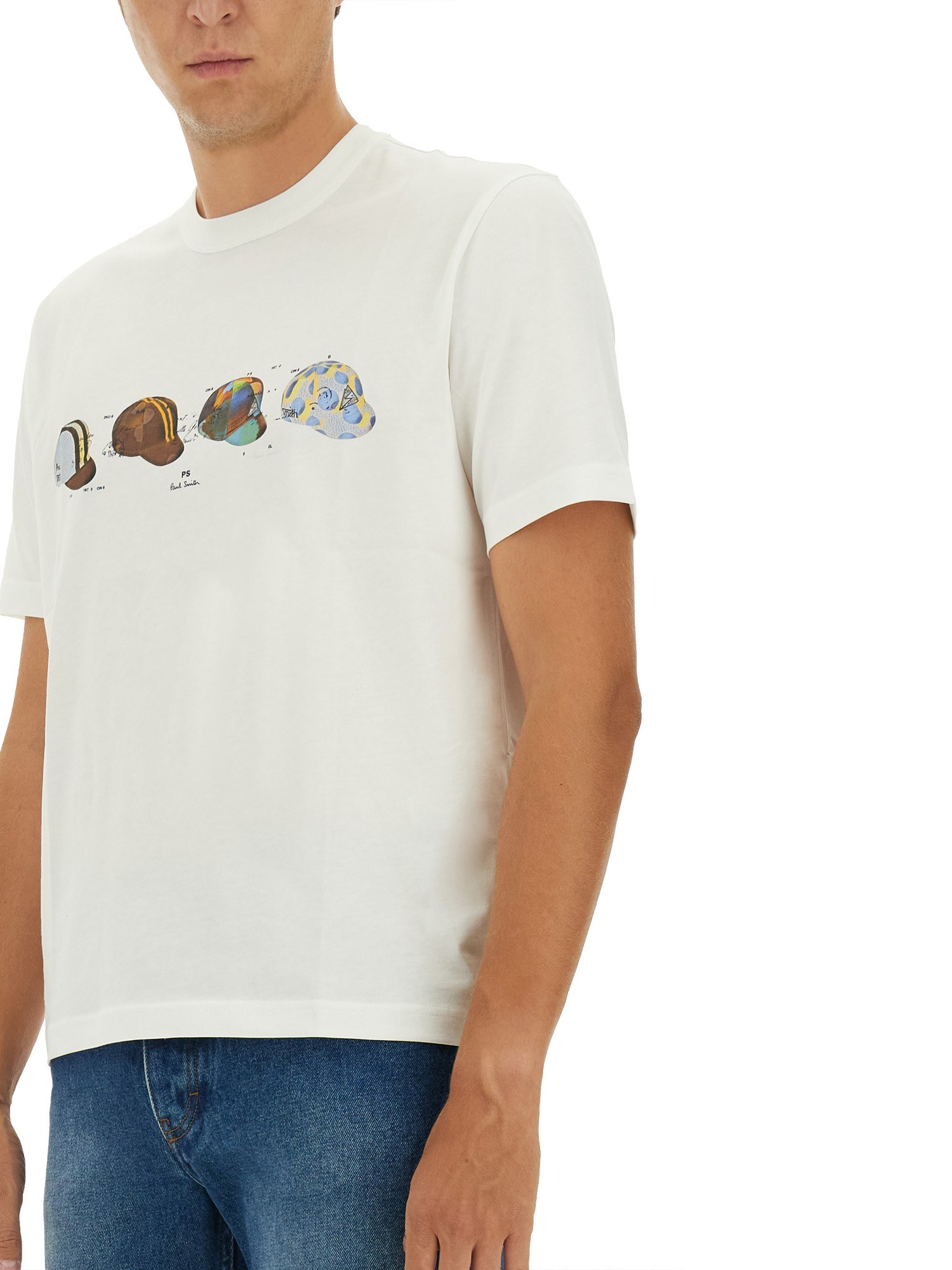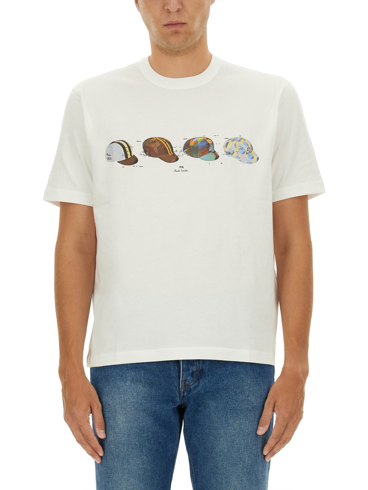 Stay cool and stylish on your bike rides with the PS by Paul Smith Cycling Caps T-shirt. Made from lightweight cotton, this crew neckline shirt features short sleeves and a straight hem for a comfortable fit. Whether you're hitting the trails or cruising through the city, this T-shirt is the perfect addition to your cycling wardrobe.