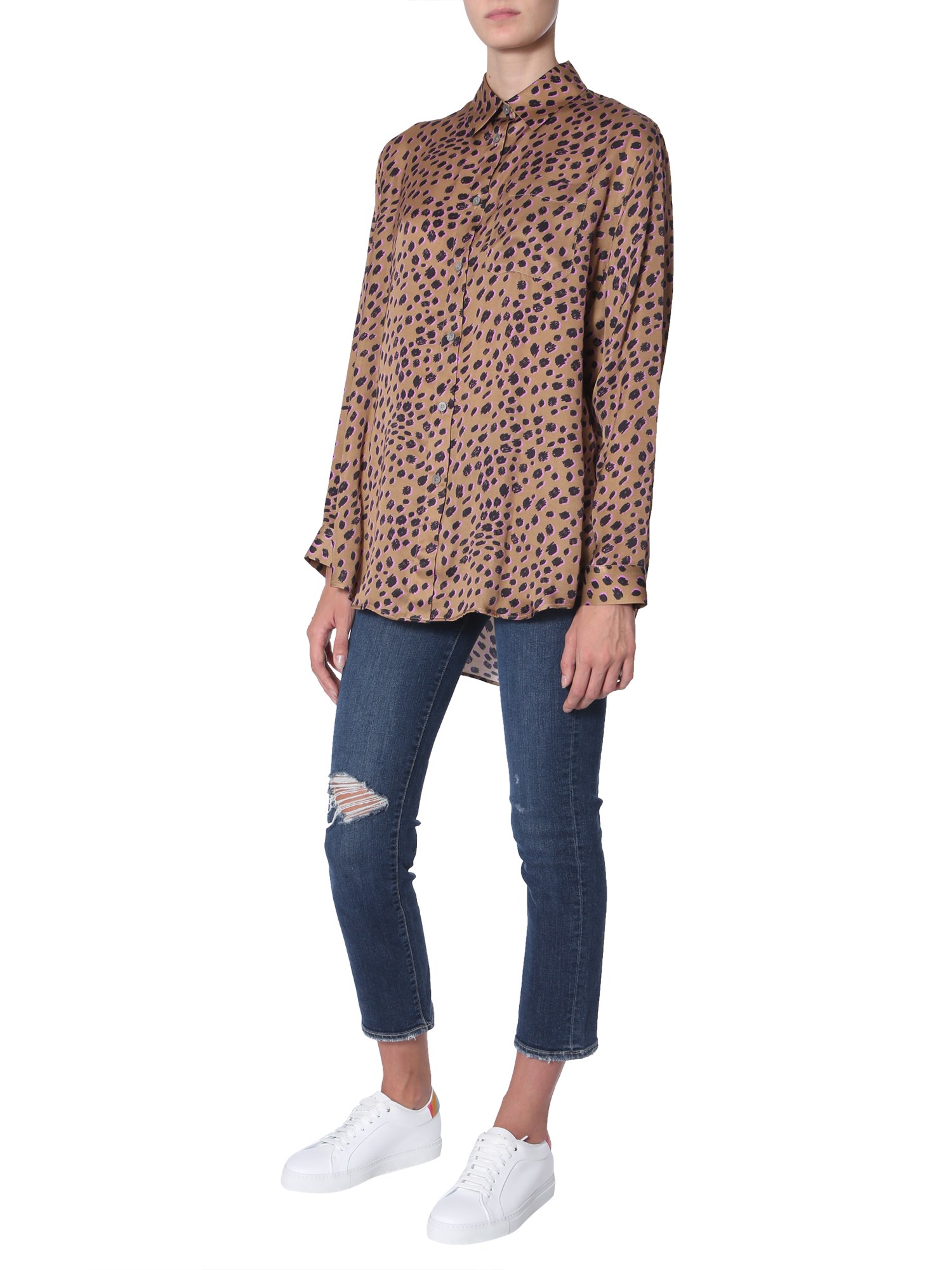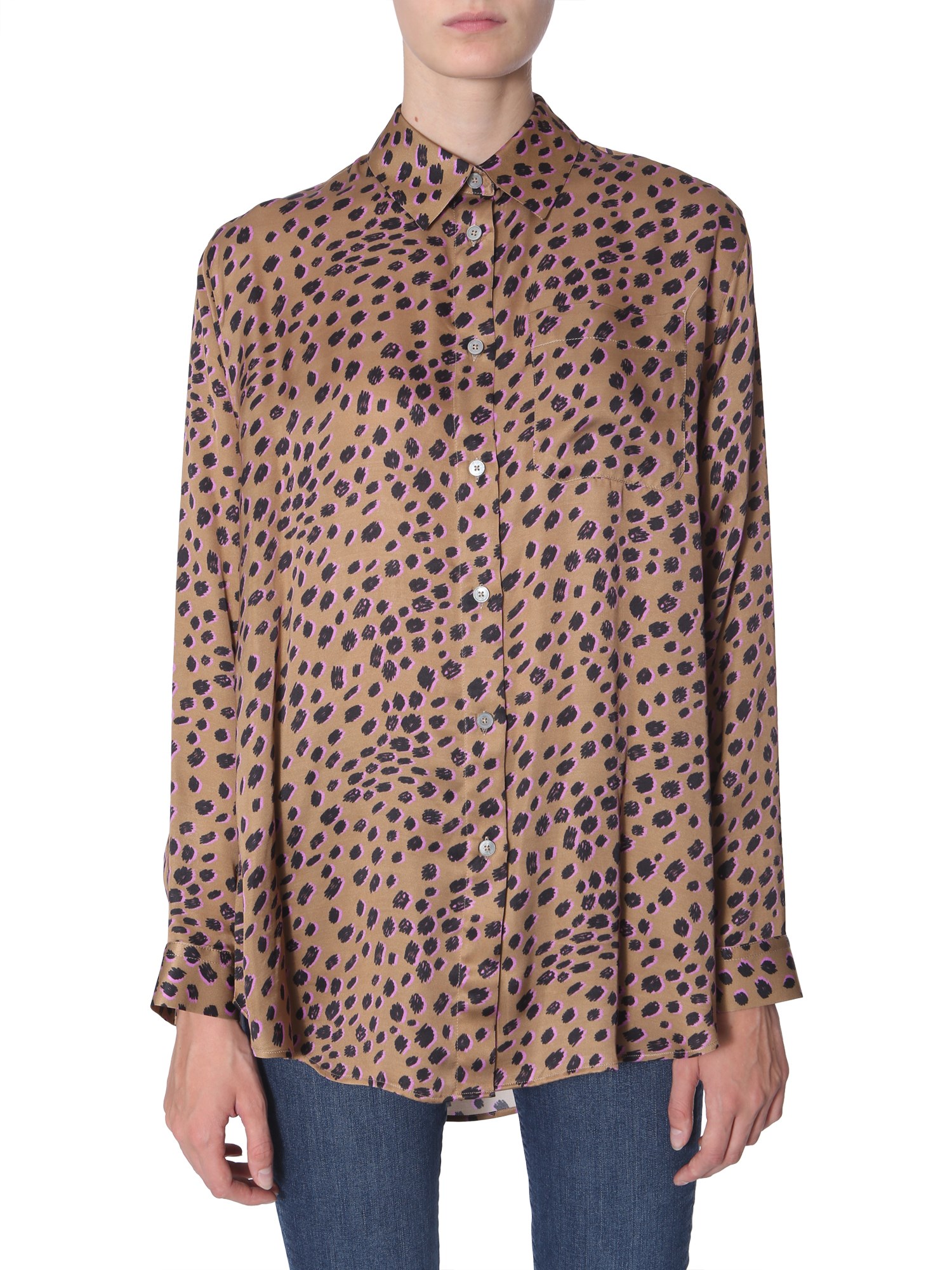 Pep up your boring wardrobe with this shirt with animal print from PS by Paul Smith. Made from 100% viscose, this shirt id durable and easy-to-maintain. This oversize fit shirt will help to get a cool and trendy ensemble. Rock your casual look by pairing it with blue jeans and sneakers for a complete look.
