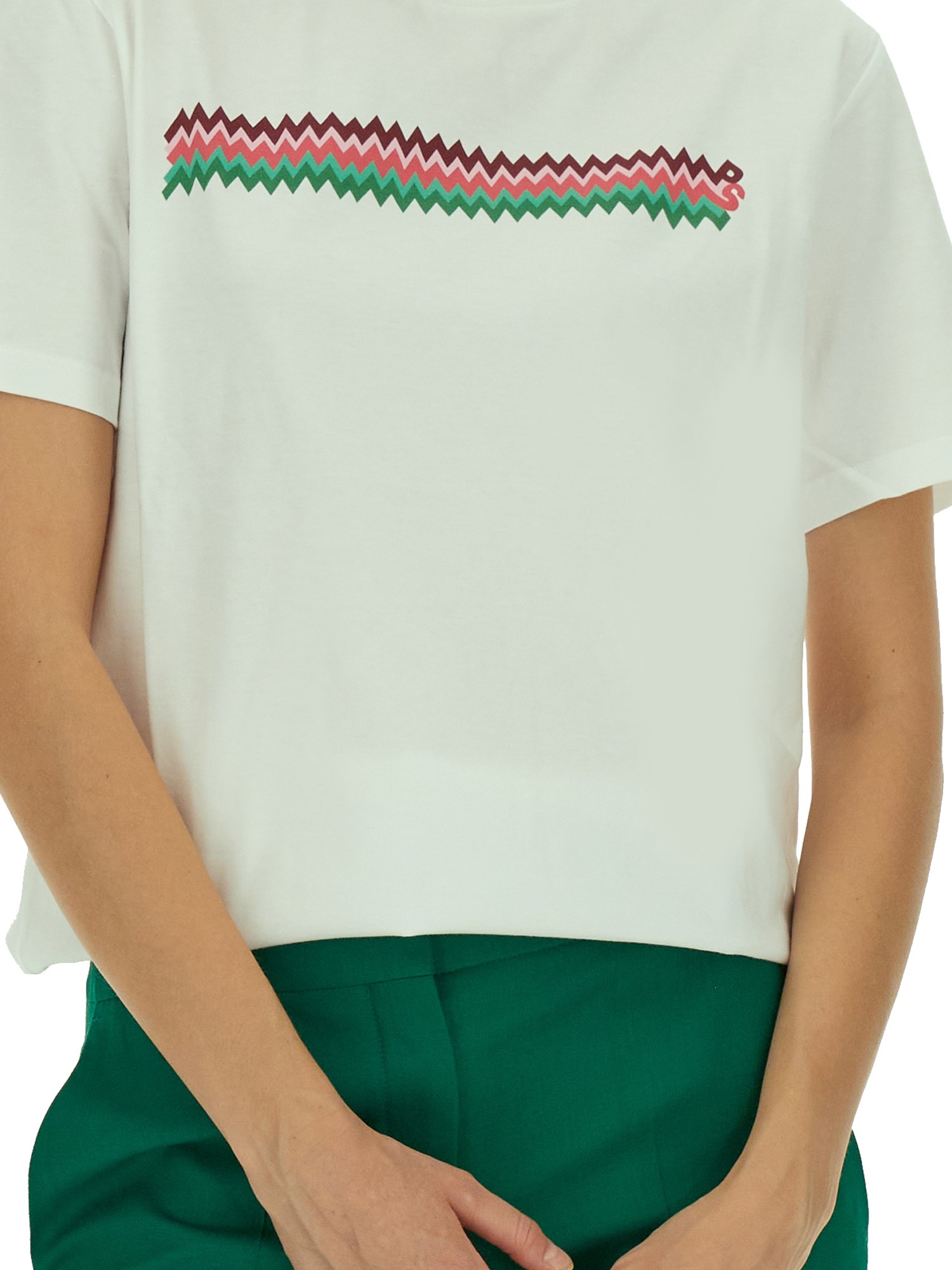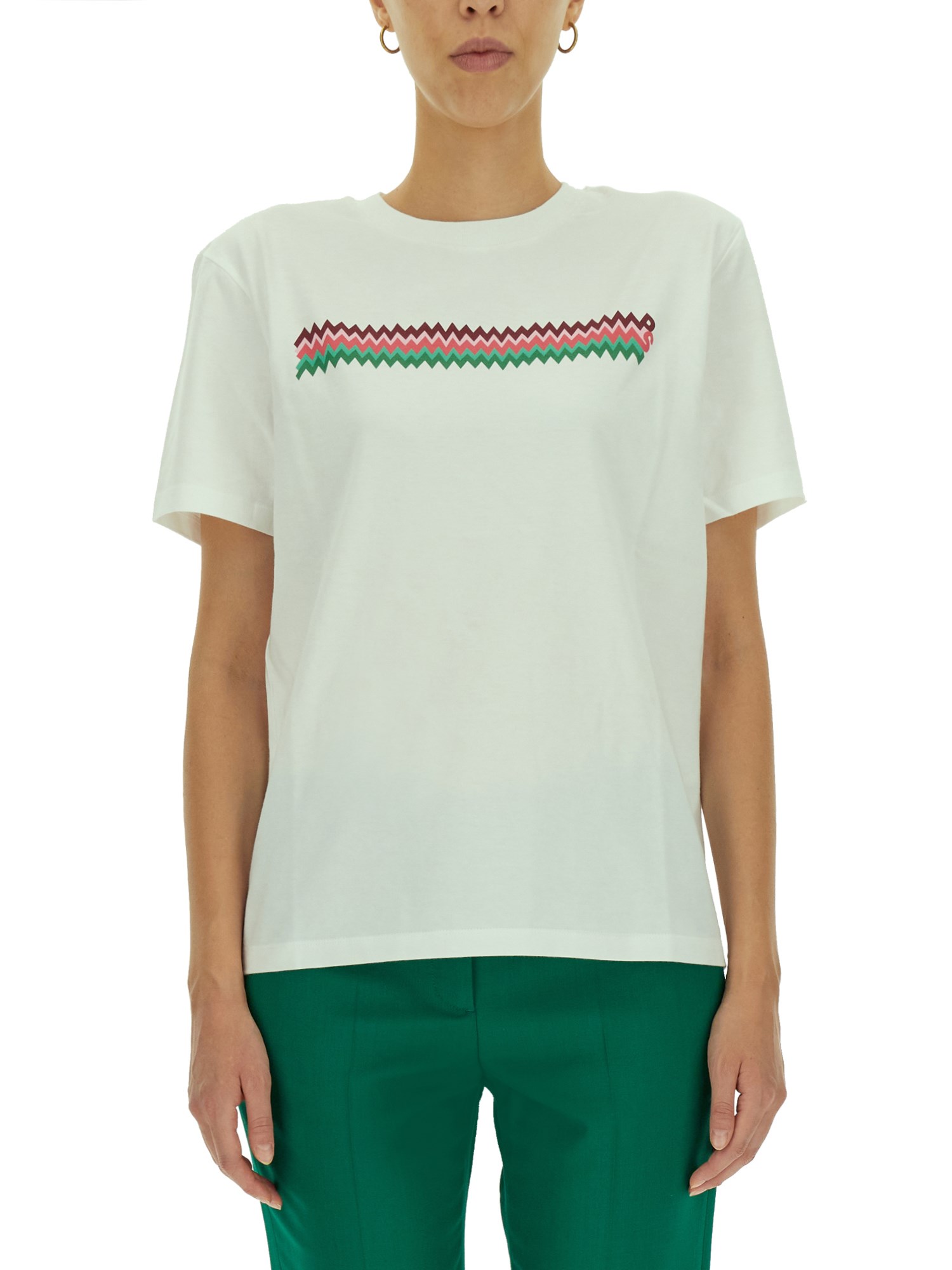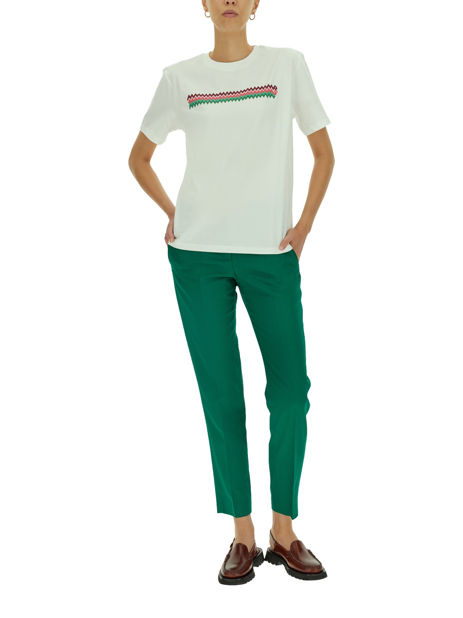 The "swirl zigzag" T-shirt from PS by Paul Smith is made of 100% organic cotton and is a relaxed fit. The shirt is both comfortable and attractive. This shirt is perfect for people who want to wear a shirt that is good for the environment.